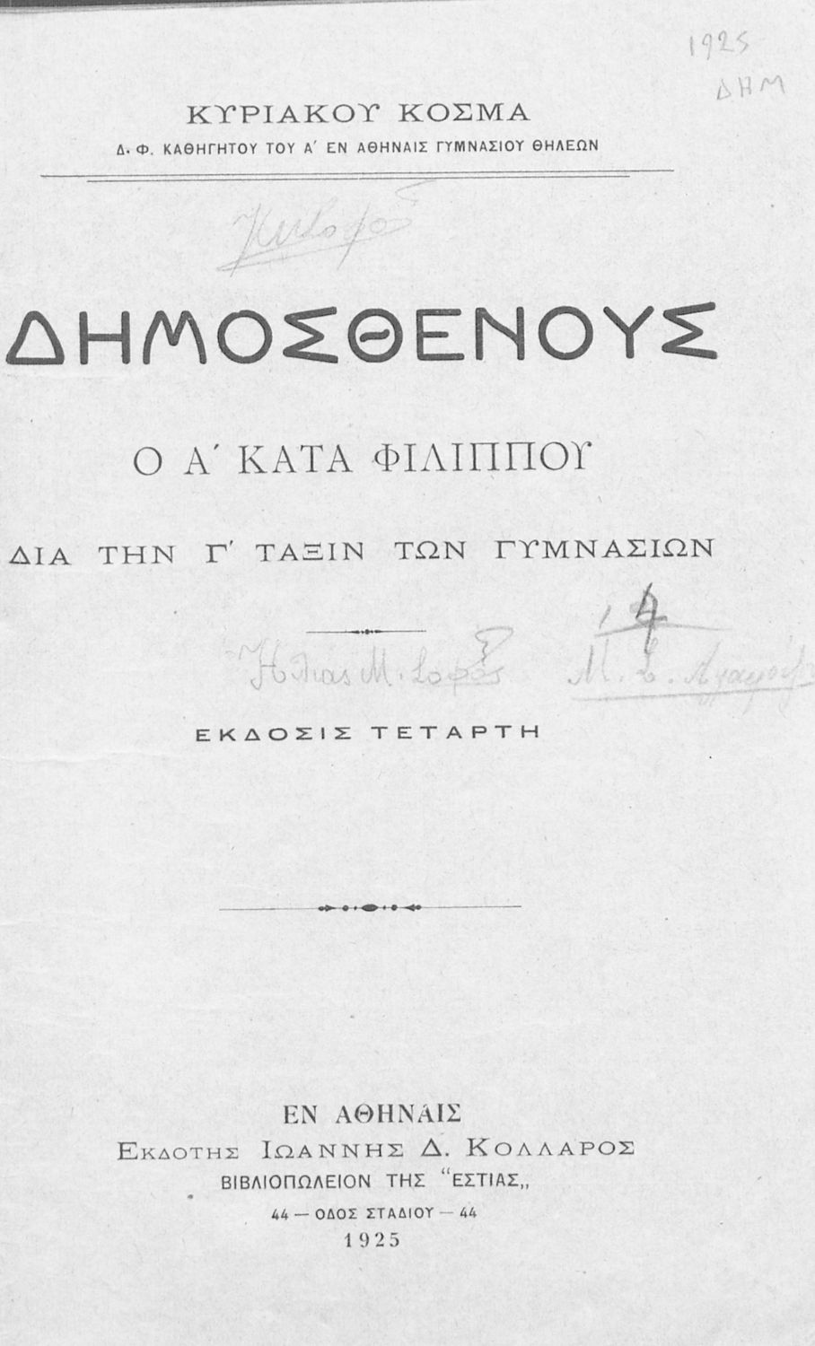 Εντοπισμός πρωτοτύπου: Ελληνικό Λογοτεχνικό και Ιστορικό Αρχείο Κωδικός βιβλιοθήκης: 1925 ΔΗΜ |