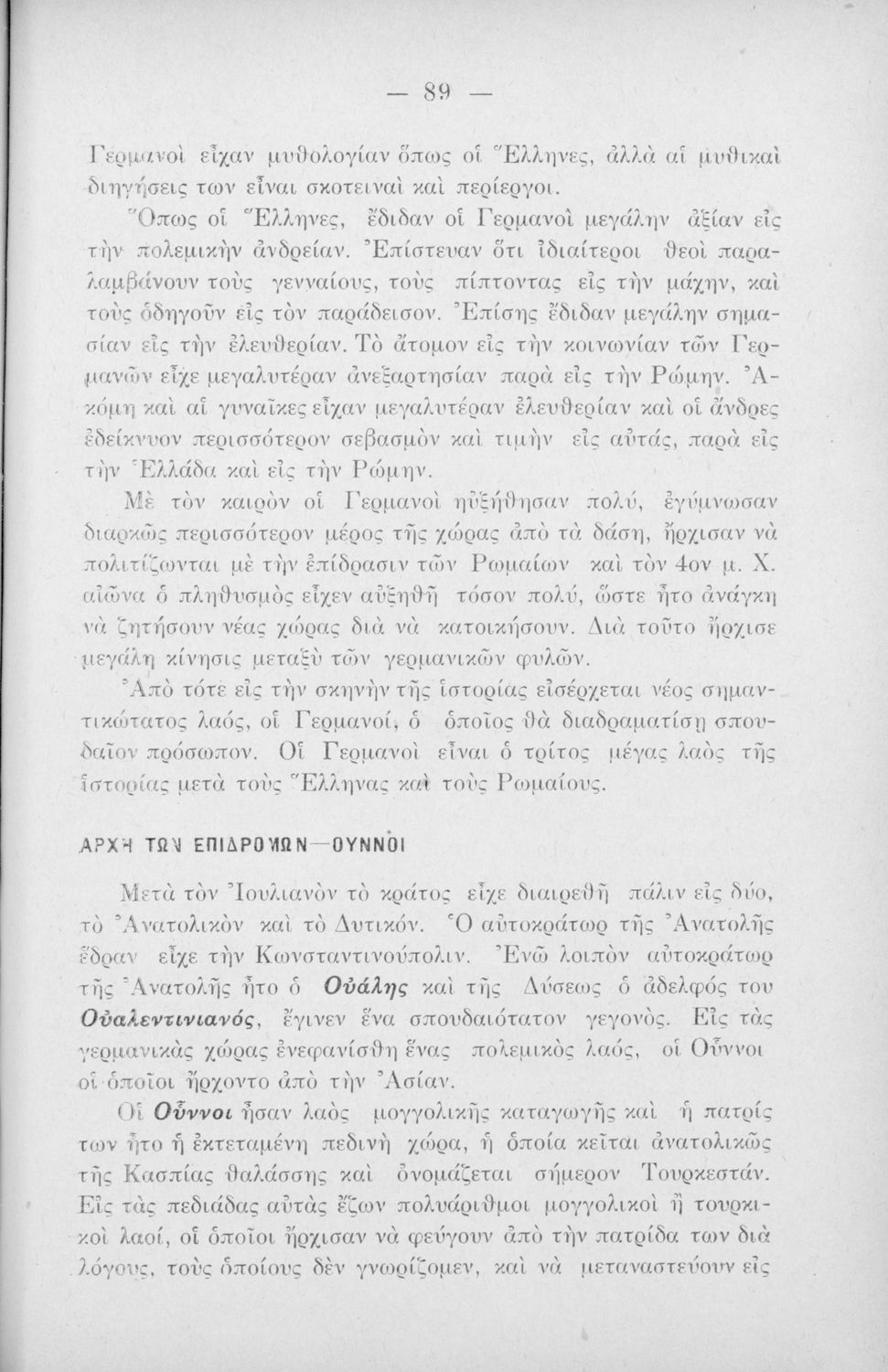 Σχολικό εγχειρίδιο Ιστορίας Α΄ Ελληνικού και Παρθεναγωγείου που καλύπτει την περίοδο από τους μυθικούς και ηρωικούς χρόνους μέχρι την μάχη της Μαντινείας και τον θάνατο του Επαμεινώνδα.