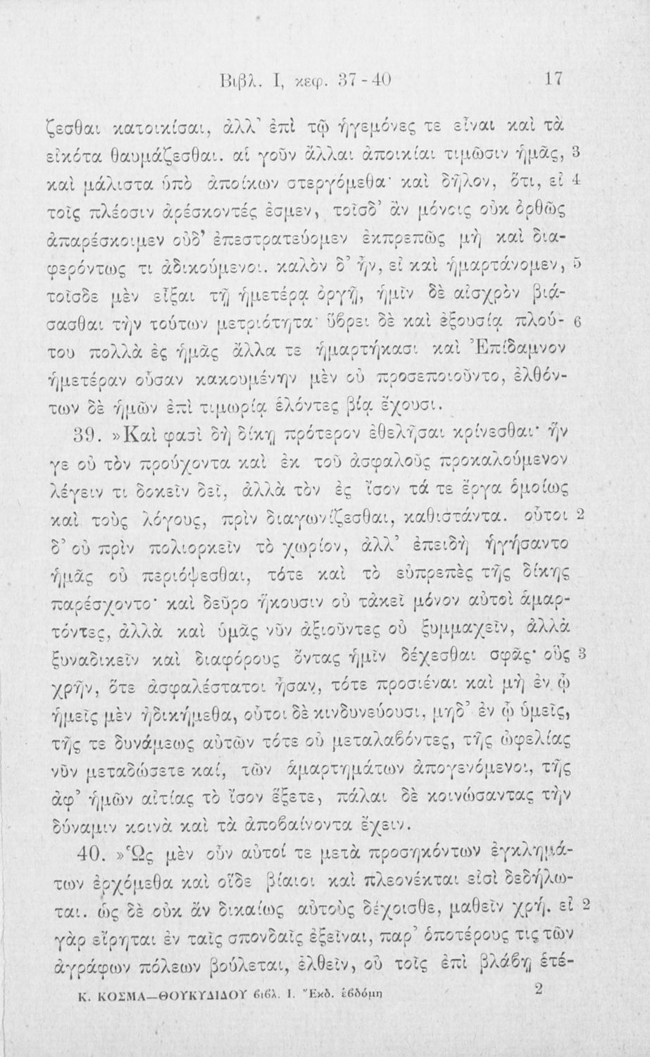 Θουκυδίδου το πρώτον βιβλίον κατ' εκλογήν εκδοθέν διά την Β΄ και Γ΄ τάξιν των Γυμνασίων