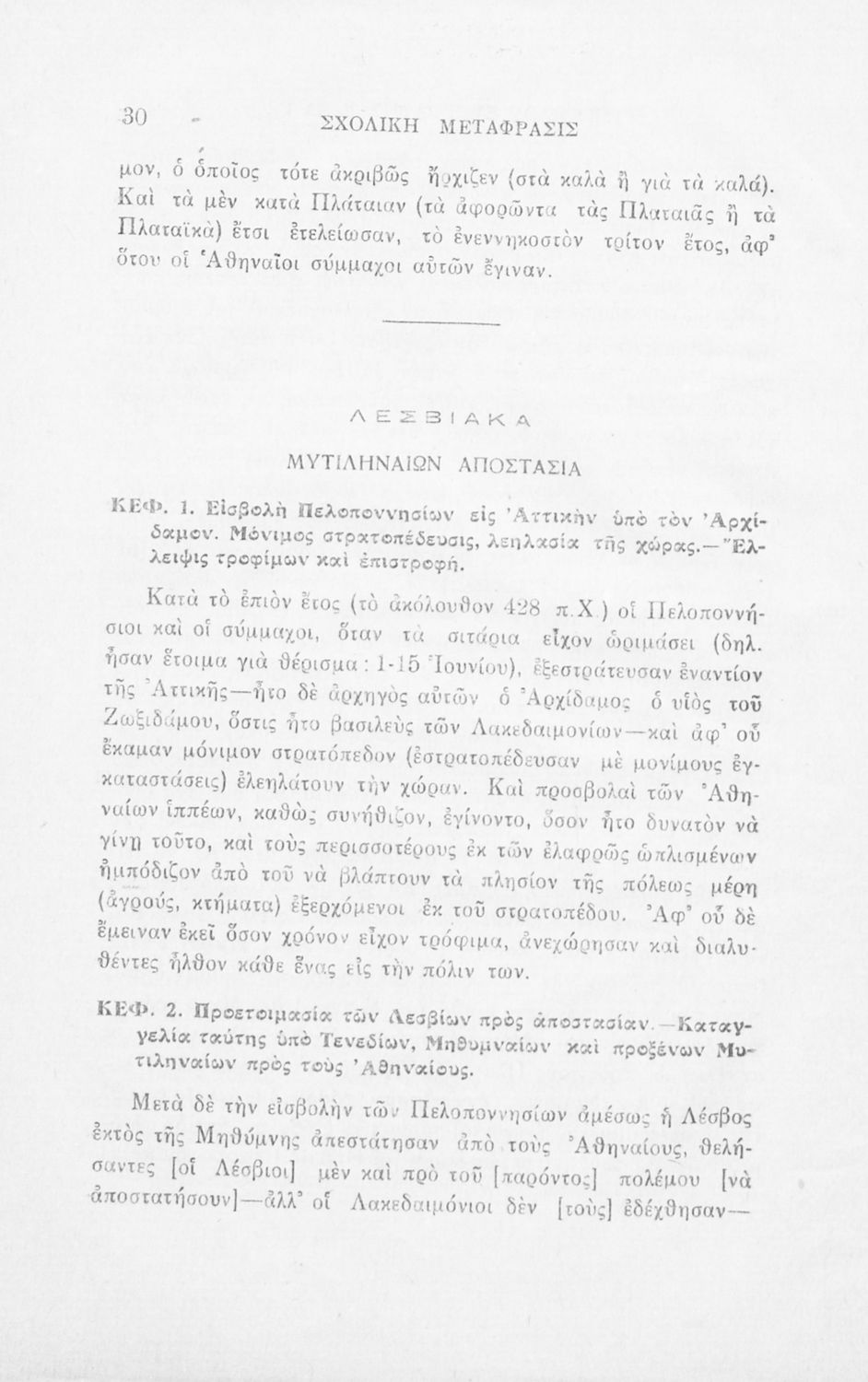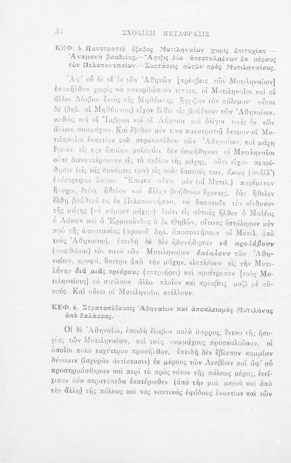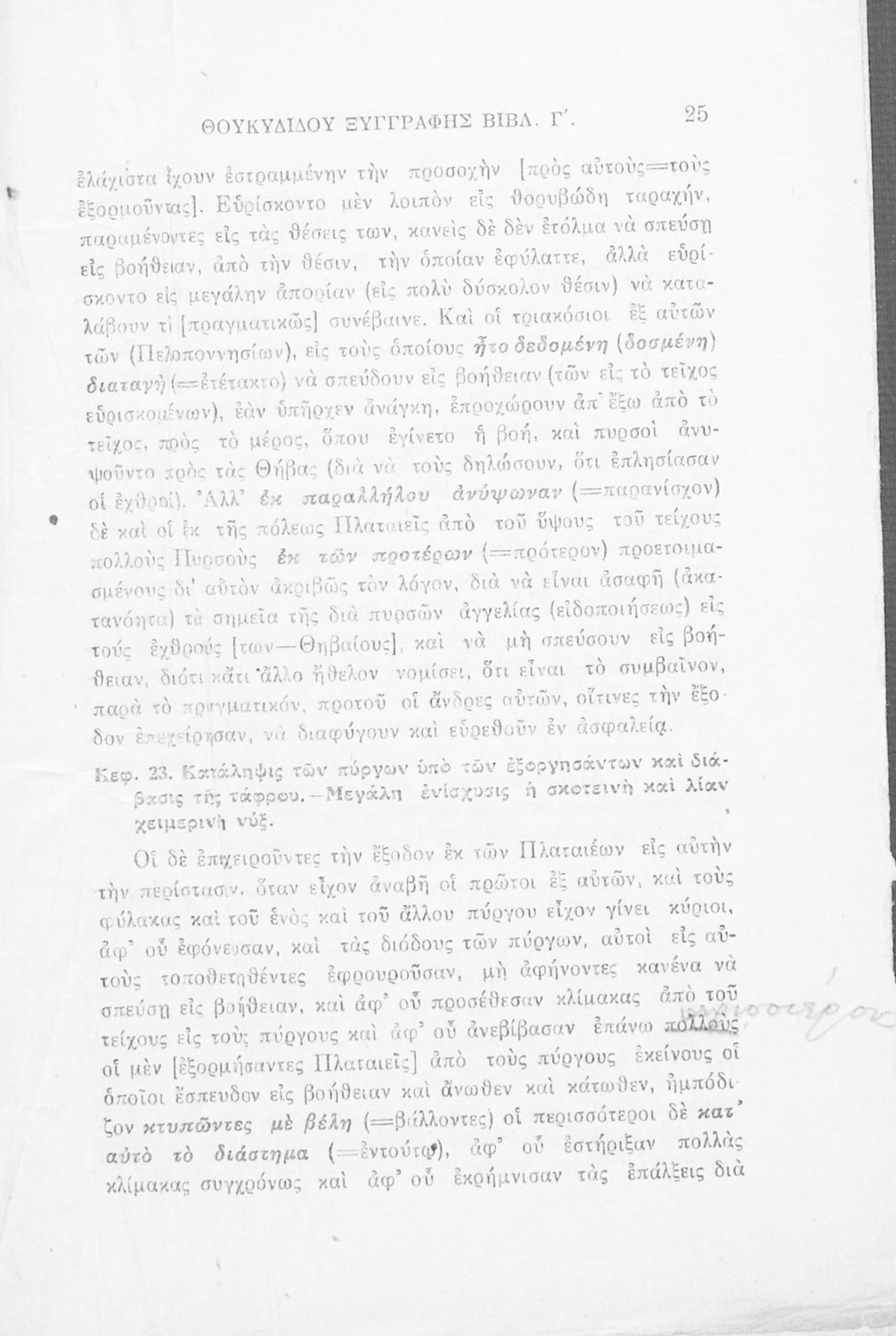 Μαθητικό βοήθημα Αρχαίων Ελληνικών που περιλαμβάνει σχολική μετάφραση του πρώτου βιβλίου της Ιστορίας του Θουκυδίδη.
