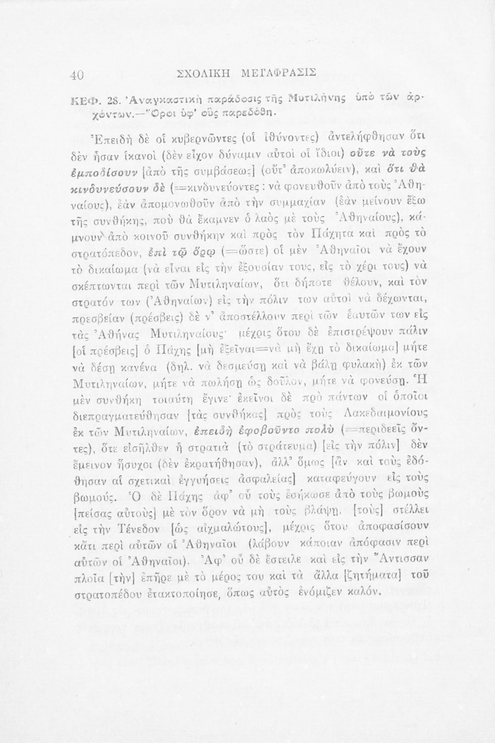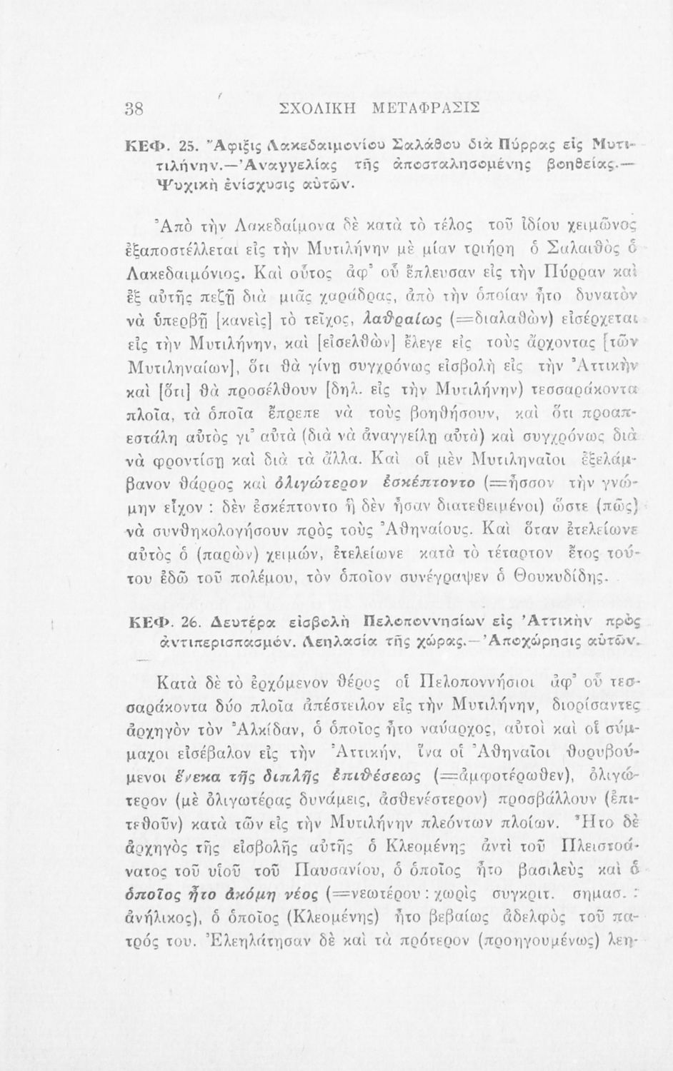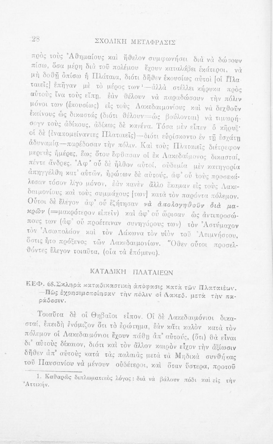 Μαθητικό βοήθημα Αρχαίων Ελληνικών που περιλαμβάνει σχολική μετάφραση του πρώτου βιβλίου της Ιστορίας του Θουκυδίδη.