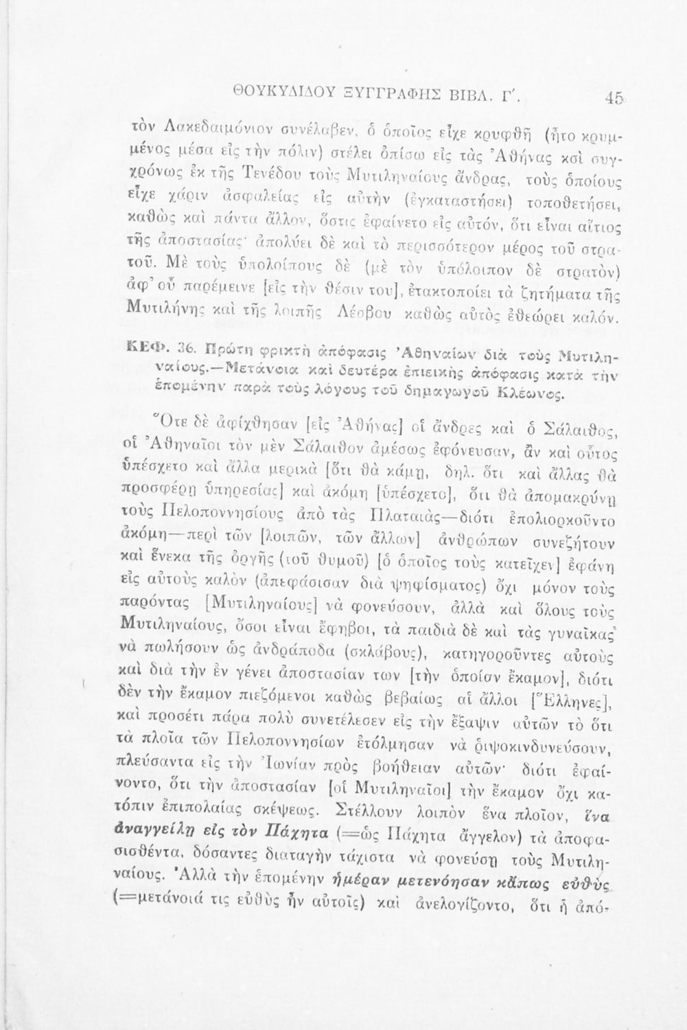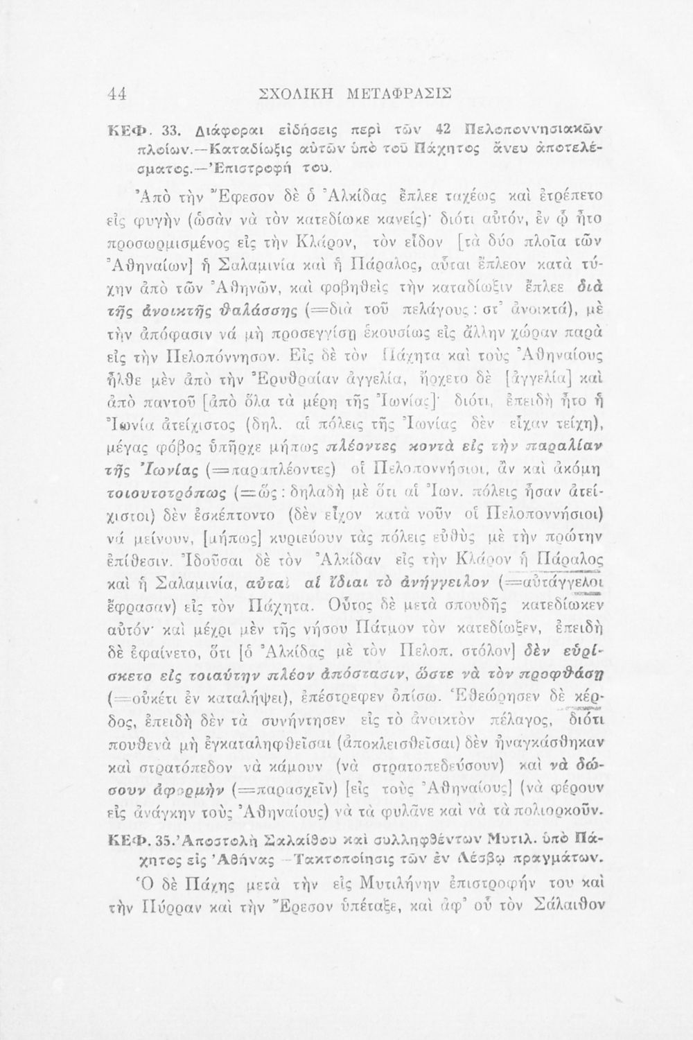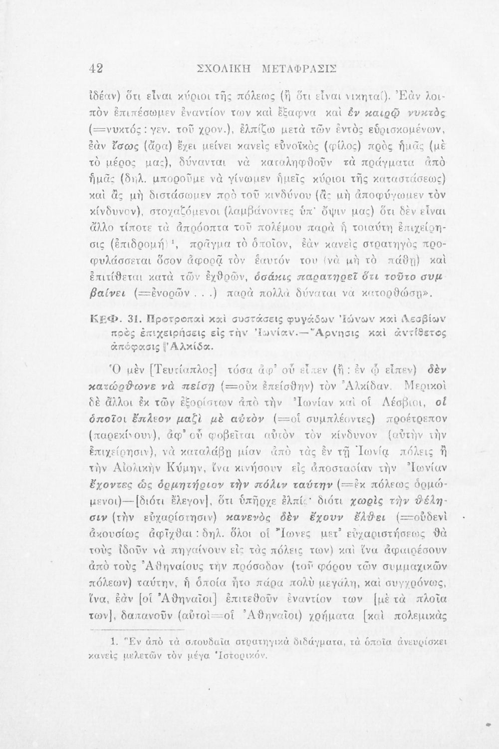 Μαθητικό βοήθημα Αρχαίων Ελληνικών που περιλαμβάνει σχολική μετάφραση του πρώτου βιβλίου της Ιστορίας του Θουκυδίδη.