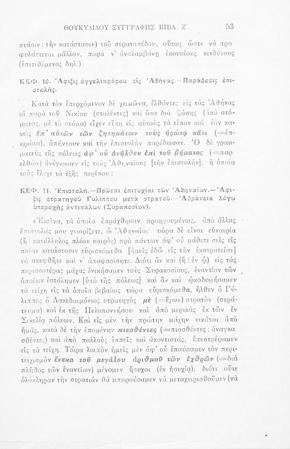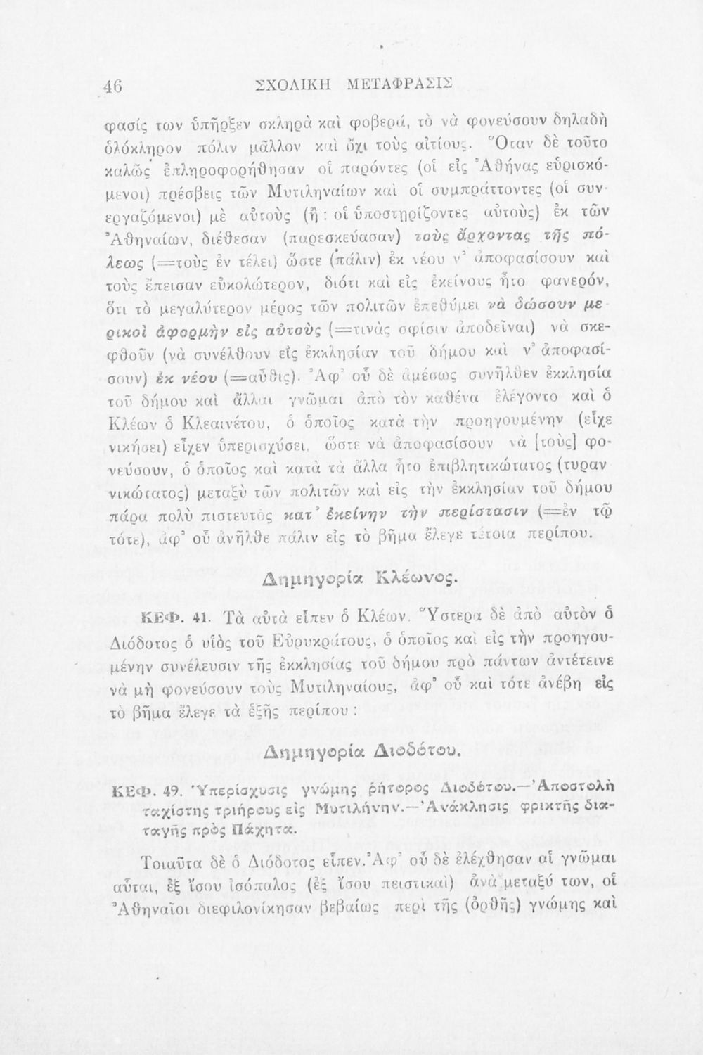 Μαθητικό βοήθημα Αρχαίων Ελληνικών για την Γ΄ τάξη των τετρατάξιων Γυμνασίων το οποίο περιέχει τις Δημηγορίες του Θουκυδίδη σε μετάφραση.