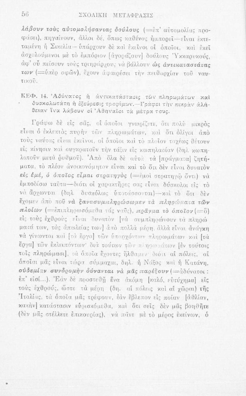Μαθητικό βοήθημα Αρχαίων Ελληνικών της τρίτης τάξης των τετρατάξιων Γυμνασίων. Το βιβλίο περιέχει τα έργα του Δημοσθένη, Περί της ειρήνης και Α΄ Φιλιππικός από μετάφραση.