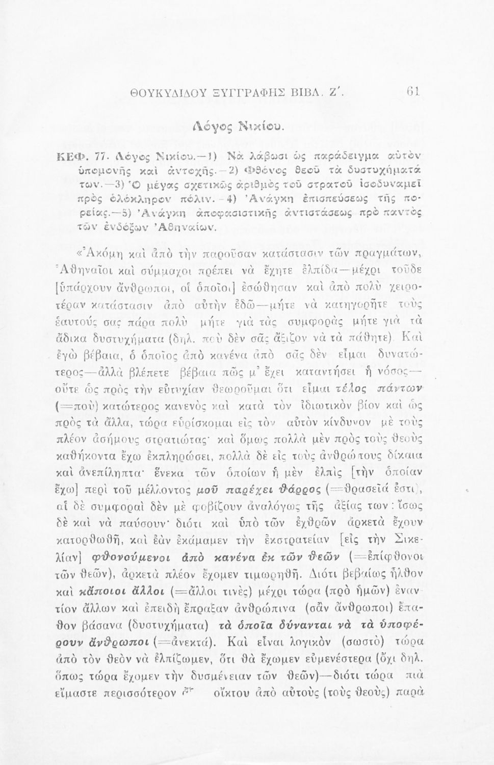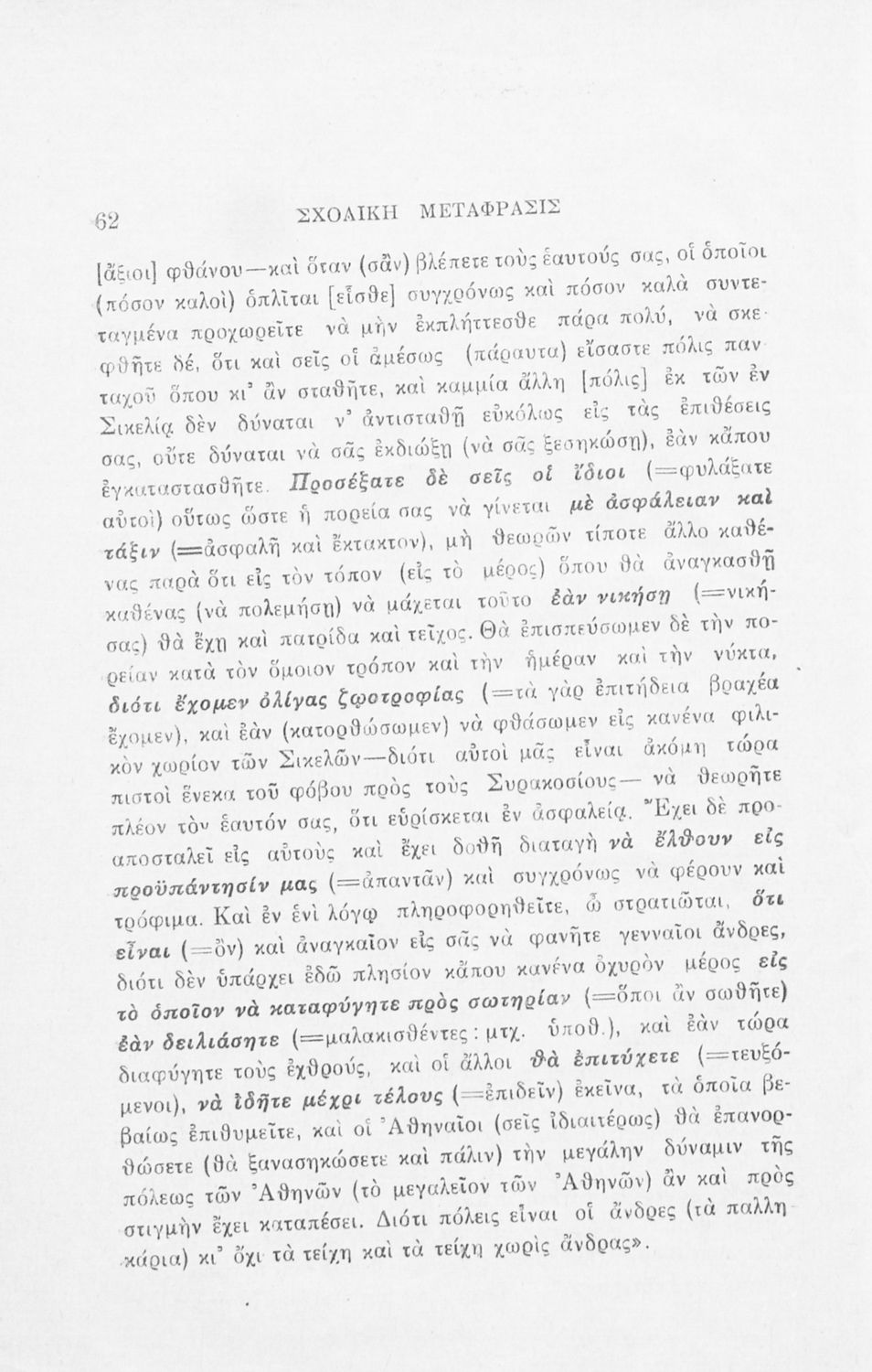 Σχολική μετάφρασις του ιστορικού μέρους Θουκυδίδου ξυγγραφής προς χρήσιν των μαθητών της τετάρτης τάξεως των Εξατάξιων Γυμνασίων και της αντιστοίχου τάξεως των λοιπών σχολείων της Μέσης Εκπαιδεύσεως