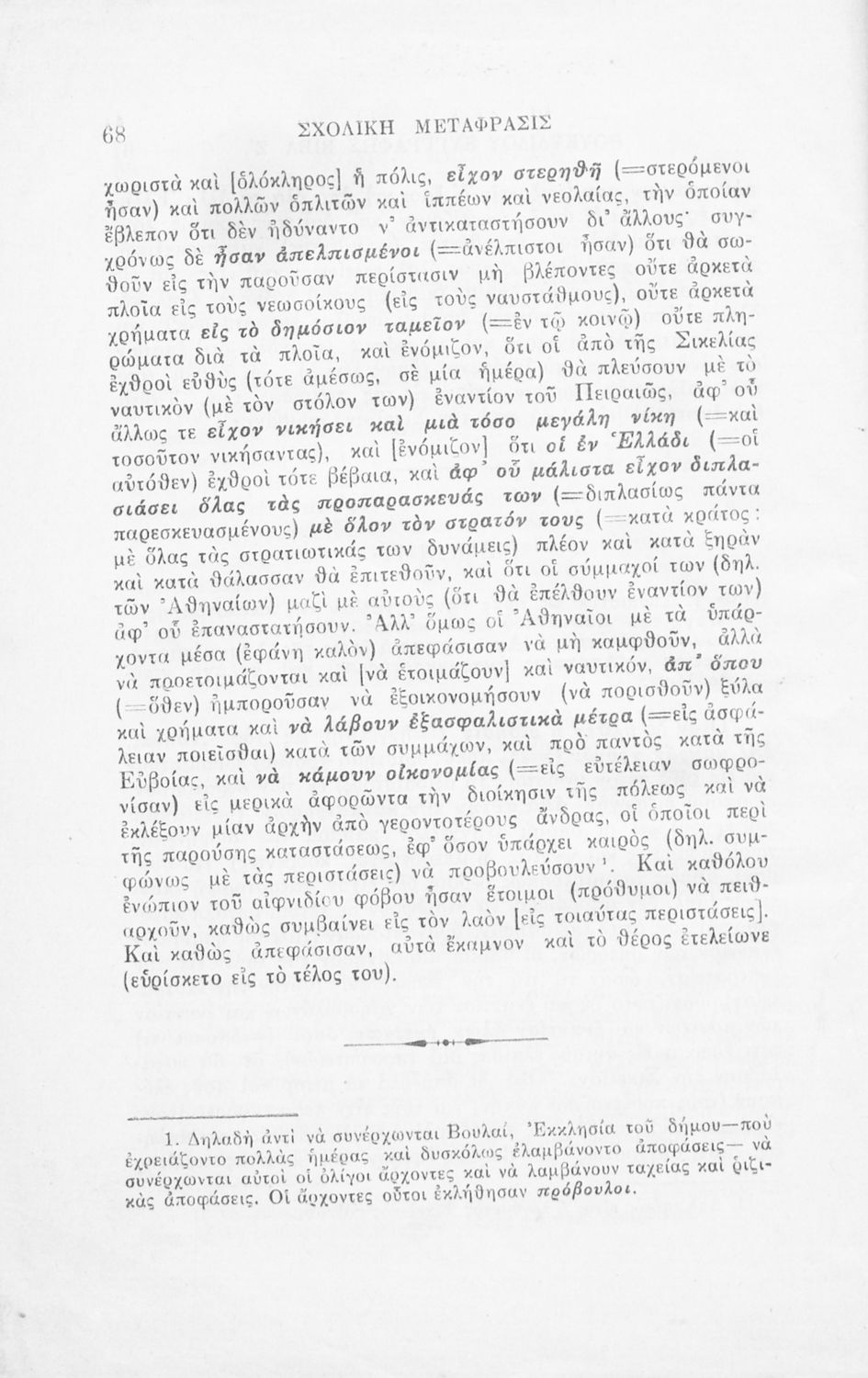 Μαθητικό βοήθημα Αρχαίων Ελληνικών που περιλαμβάνει σχολική μετάφραση του πρώτου βιβλίου της Ιστορίας του Θουκυδίδη.