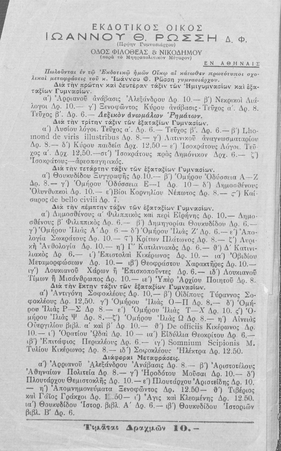 Εκδότης: Ιωάννης Θ. Ρώσσης Έτος έκδοσης: 1925 Τόπος έκδοσης: Αθήνα Έκδοση: 2η |