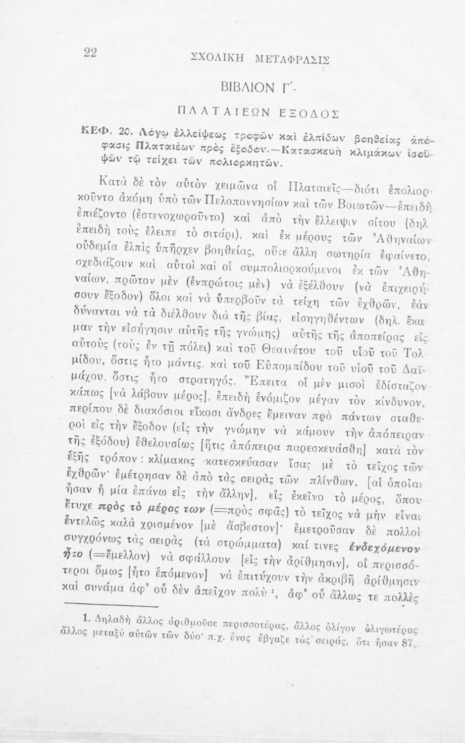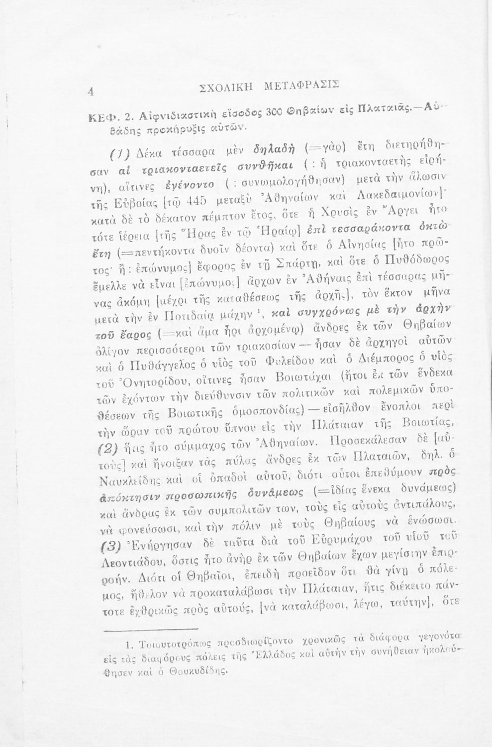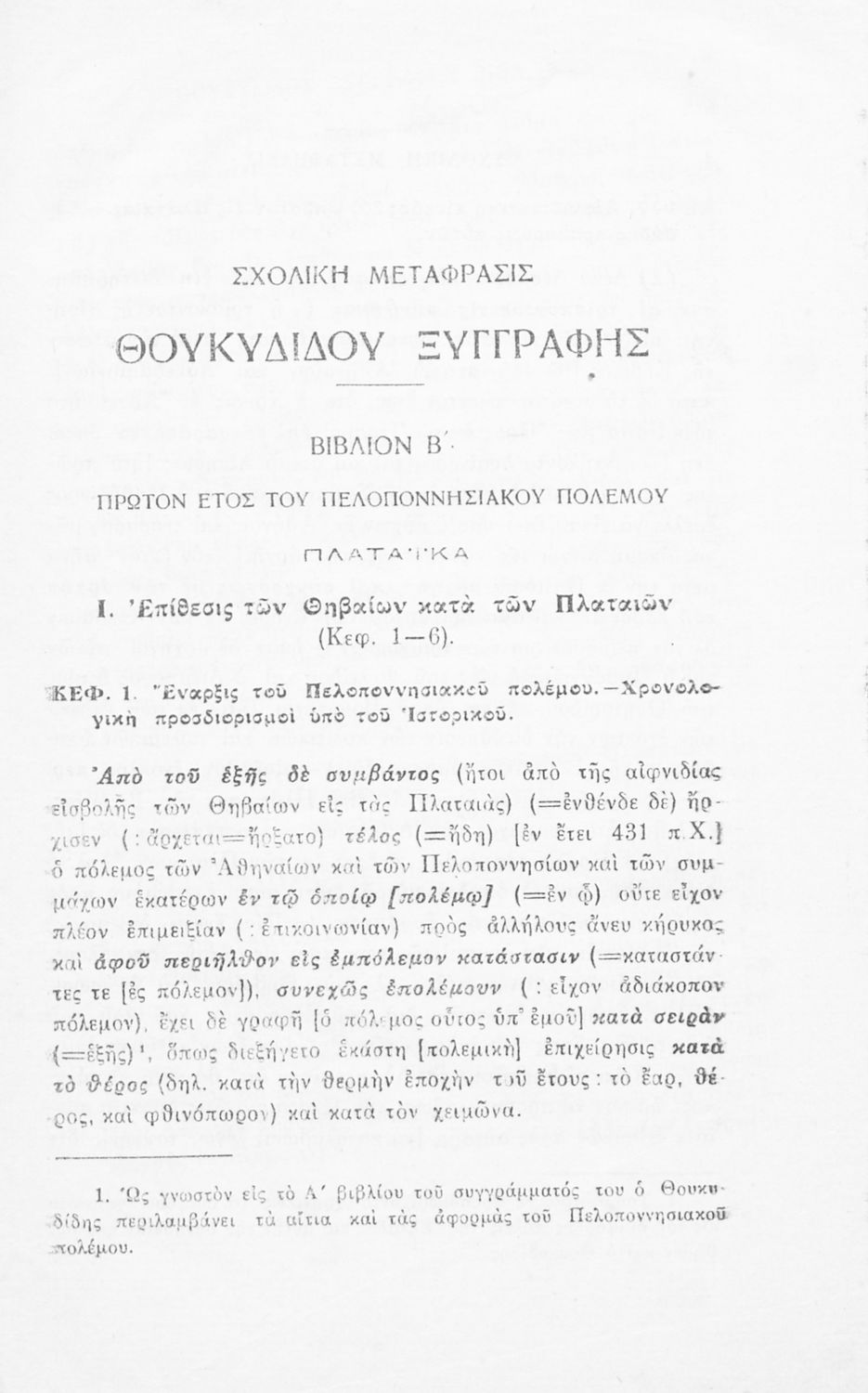 Μαθητικό βοήθημα Αρχαίων Ελληνικών που περιλαμβάνει σχολική μετάφραση του πρώτου βιβλίου της Ιστορίας του Θουκυδίδη.