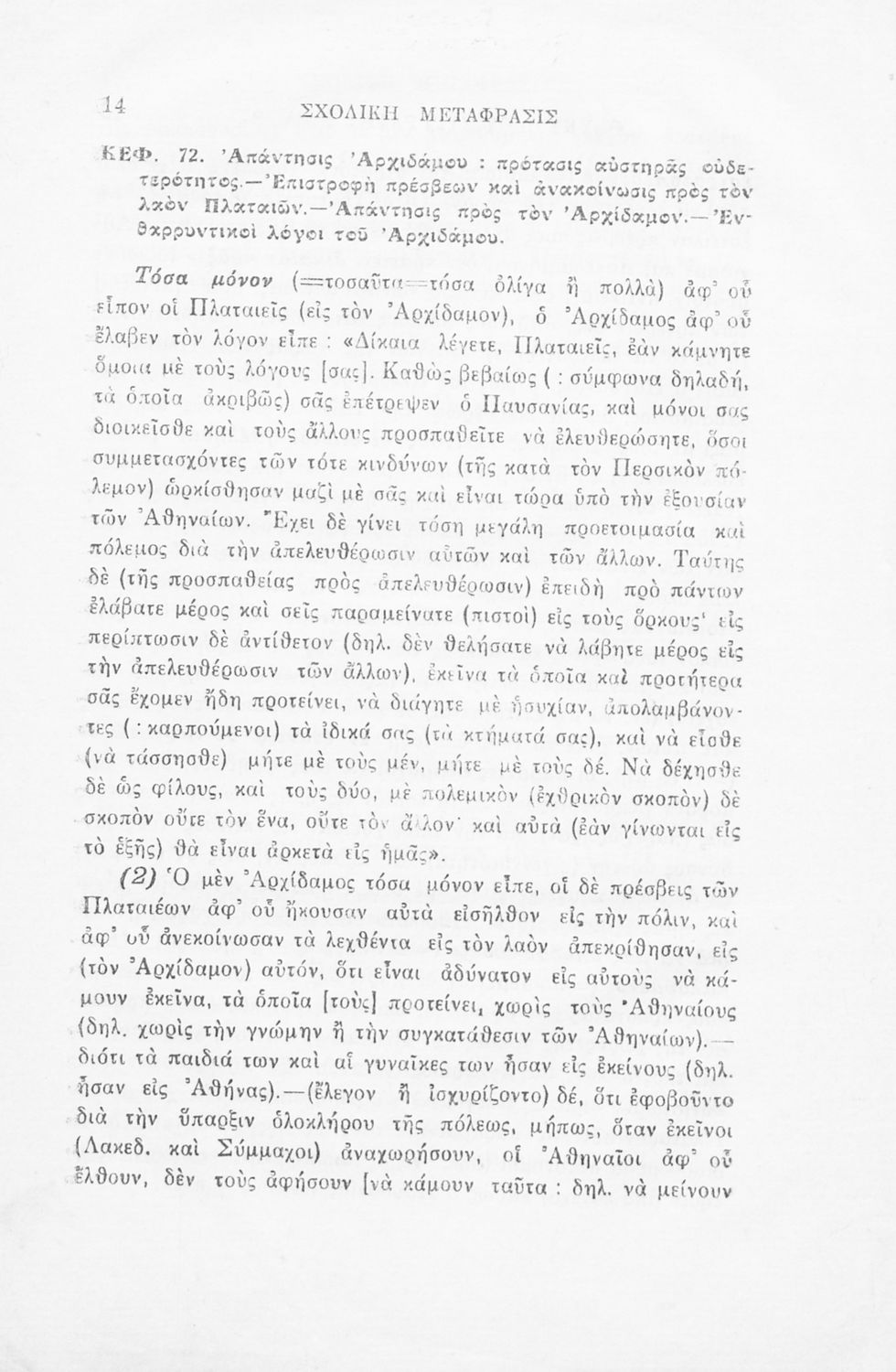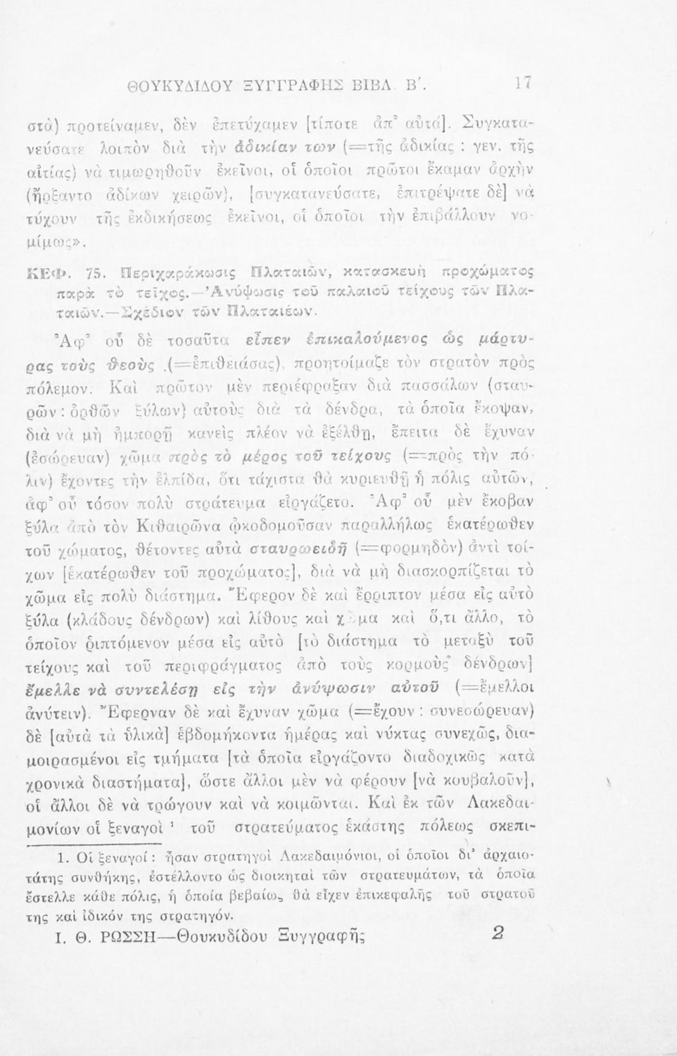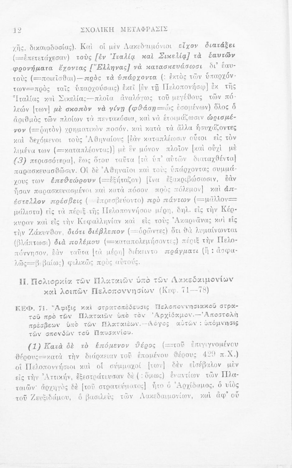 Μαθητικό βοήθημα Αρχαίων Ελληνικών που περιλαμβάνει σχολική μετάφραση του πρώτου βιβλίου της Ιστορίας του Θουκυδίδη.