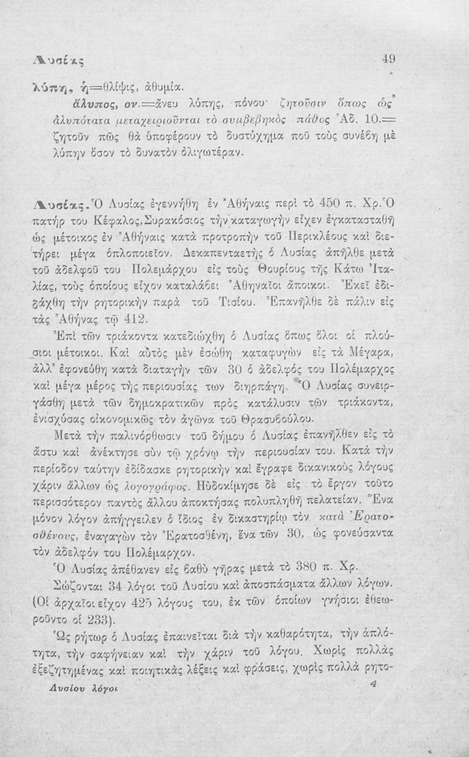 Λυσίου Λόγοι ερμηνευόμενοι δια μεθοδικού λεξικού εγκεκριμένοι δια τους μαθητάς της Α΄ τάξεως των Τετραταξίων Γυμνασίων και των αντιστοίχων τάξεων των λοιπών σχολείων της Μέσης Εκπαιδεύσεως