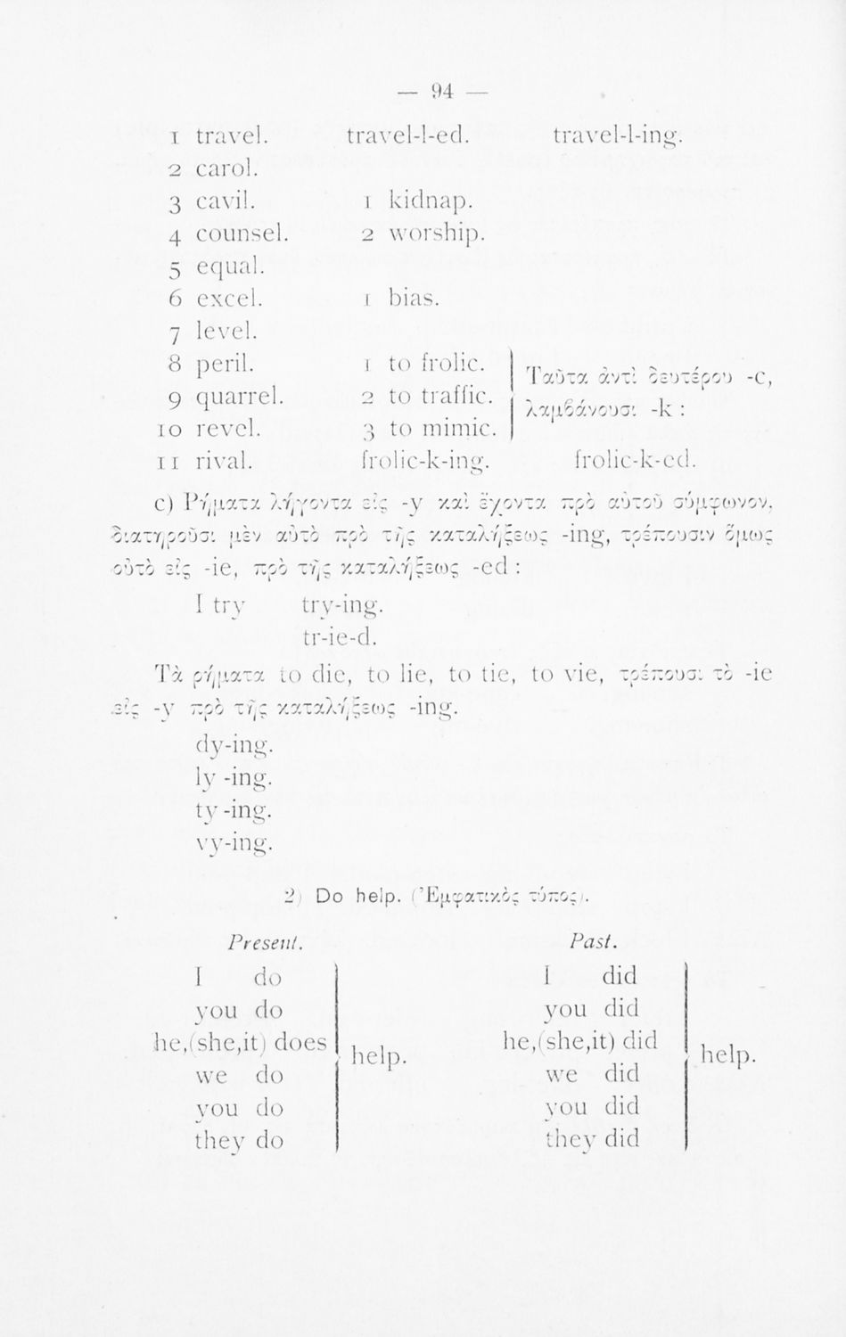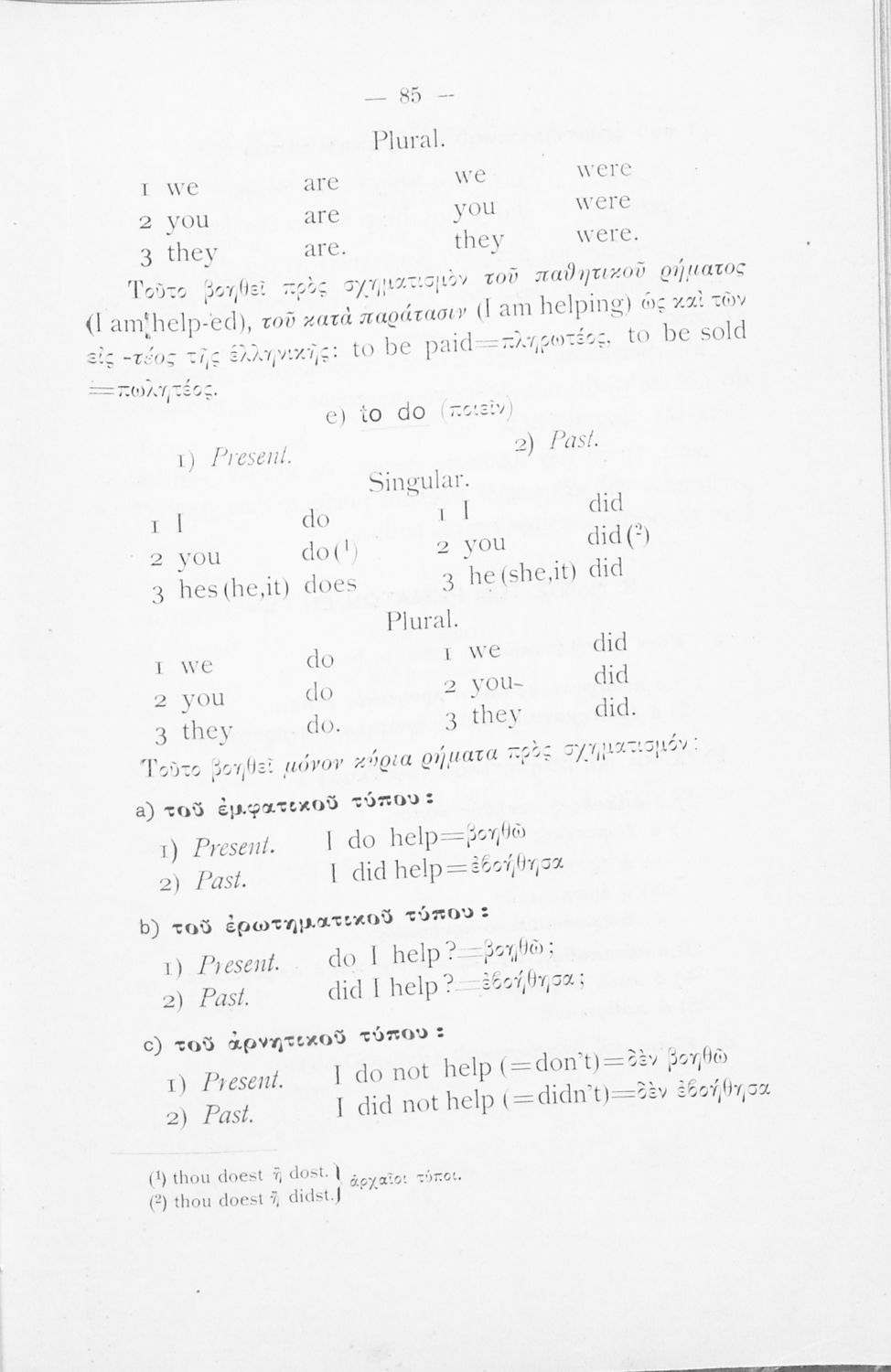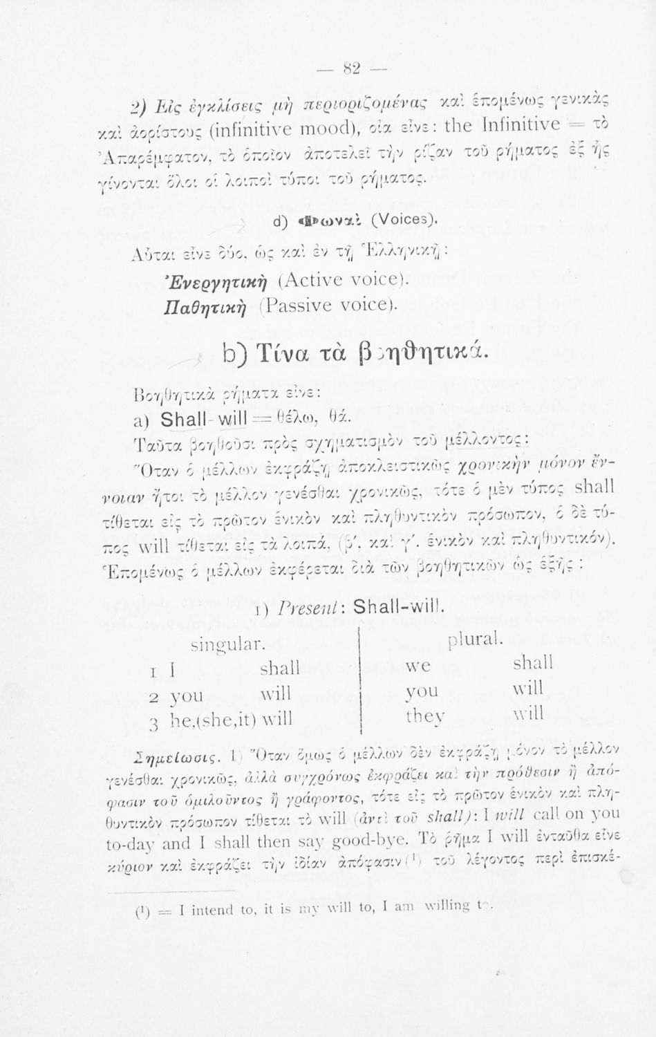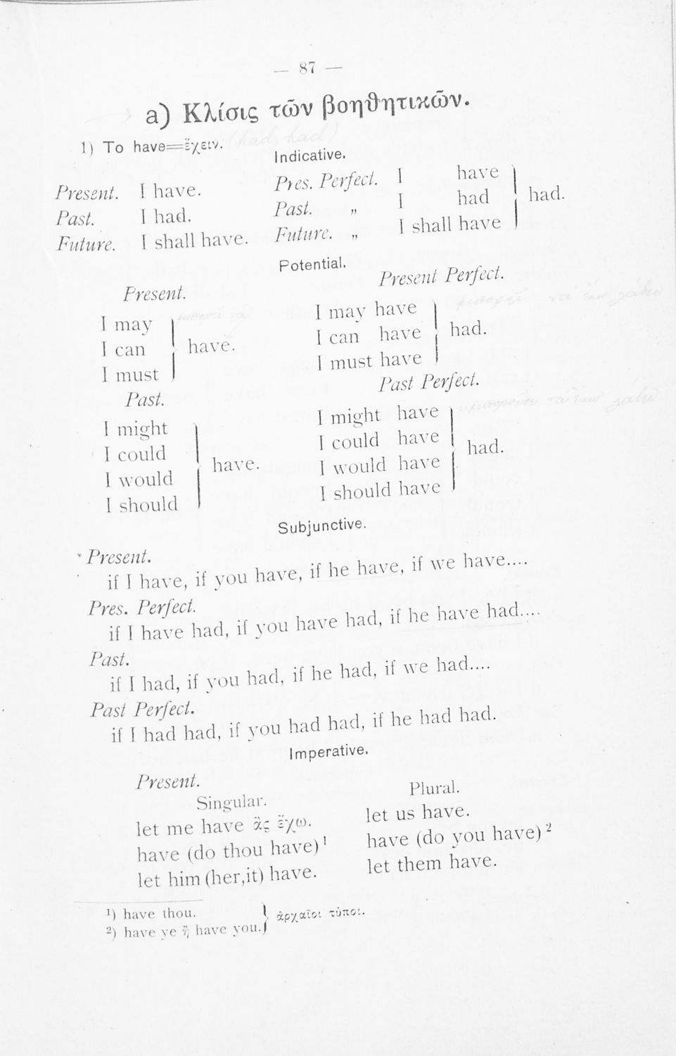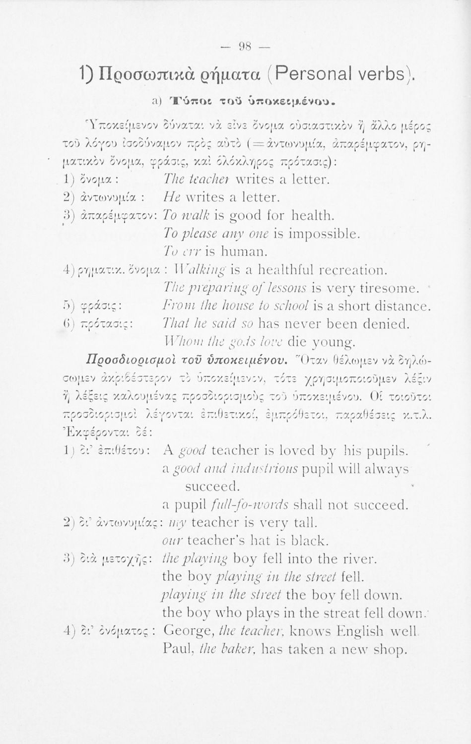 Μαθητικό βοήθημα Αρχαίων Ελληνικών για τα Ελληνικά Σχολεία, Παρθεναγωγεία και Γυμνάσια που περιλαμβάνει γραμματική της αρχαίας ελληνικής και κατάλογο ανωμάλων ρημάτων.