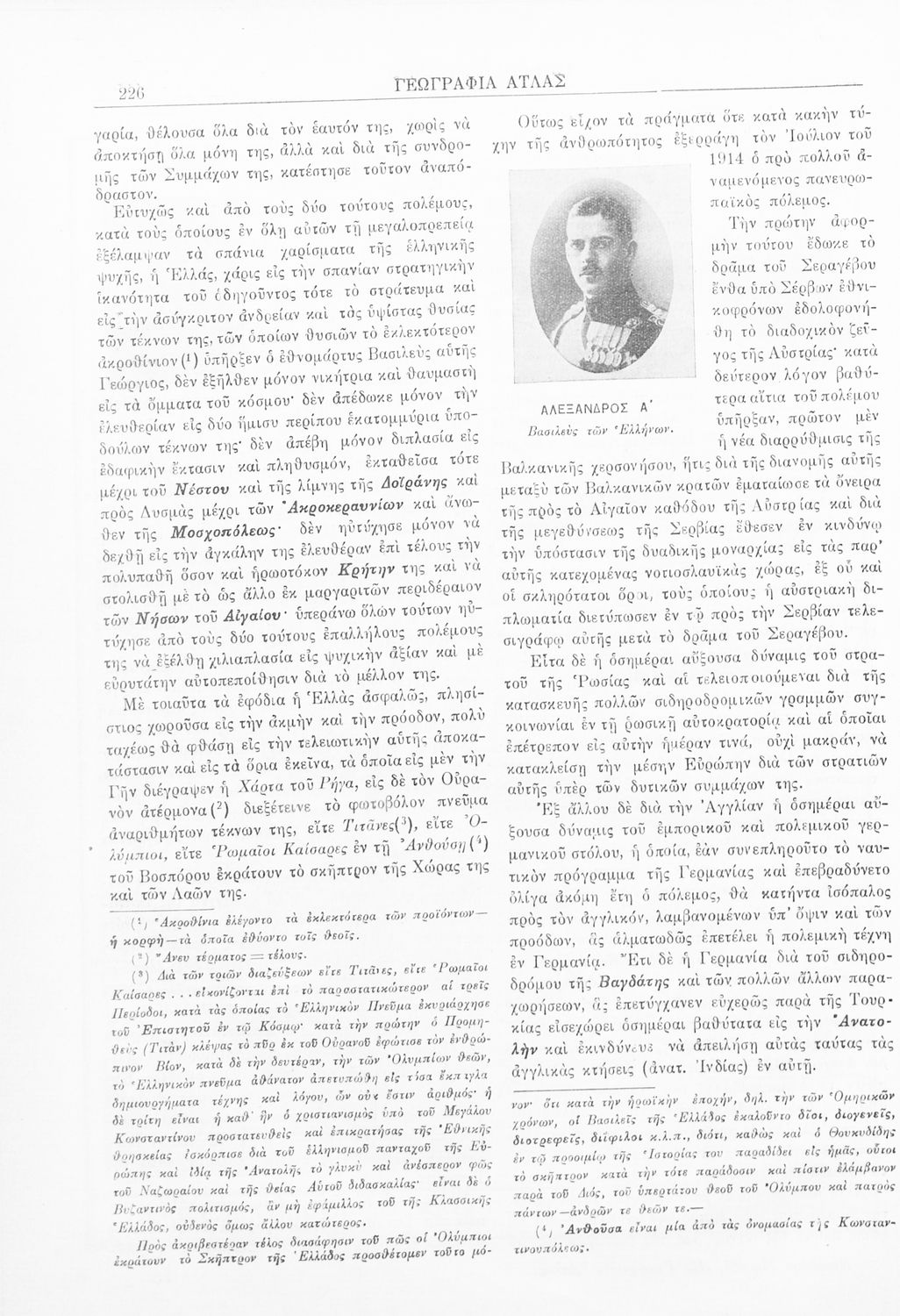 Σχολικό εγχειρίδιο Γεωγραφίας για τα Ελληνικά Σχολεία, τα Γυμνάσια, τα Διδασκαλεία, τα Παρθεναγωγεία και τις Εμπορικές-Στρατιωτικές-Ναυτικές Σχολές που περιέχει εισαγωγή στην κοσμογραφία, τη μαθηματική, πολιτική, οικονομική και φυσική γεωγραφία, τη γεωλογία, τη ζωολογία και φυτολογία και την ανθρωπογεωγραφία και εξετάζει την Ελλάδα και ενδεικτικές χώρες από τις πέντε ηπείρους από γεωφυσική, πολιτική και οικονομική άποψη. Περιέχει και αναφορά στις "λοιπές ελληνικές χώρες" στις οποίες περιλαμβάνει τα Δωδεκάνησα, την Κύπρο και την Τουρκική Θράκη.