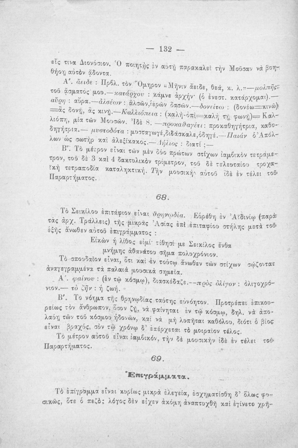 Σχολικό εγχειρίδιο Αρχαίων Ελληνικών Γ΄ Γυμνασίου που περιλαμβάνει αποσπάσματα έργων αρχαίων Ελλήνων λυρικών, πολιτικές και γνωμικές ελεγείες, ιάμβους και επιγράμματα. Περιέχει και υπόμνημα με ερμηνευτικά, πραγματολογικά, γλωσσικά και γραμματικά σχόλια.