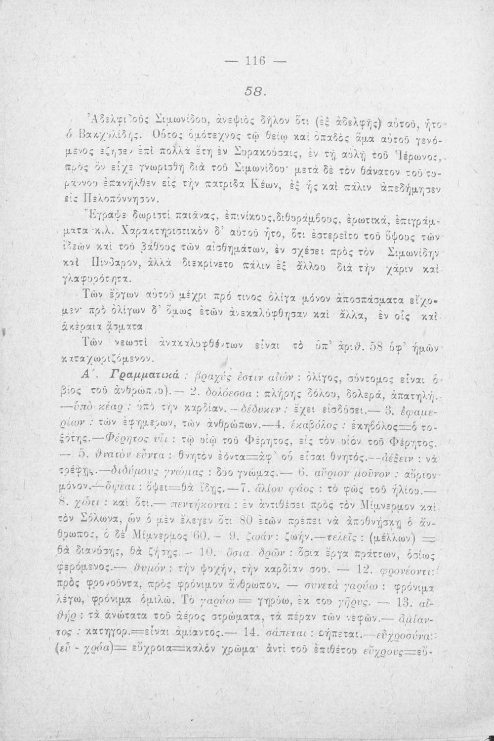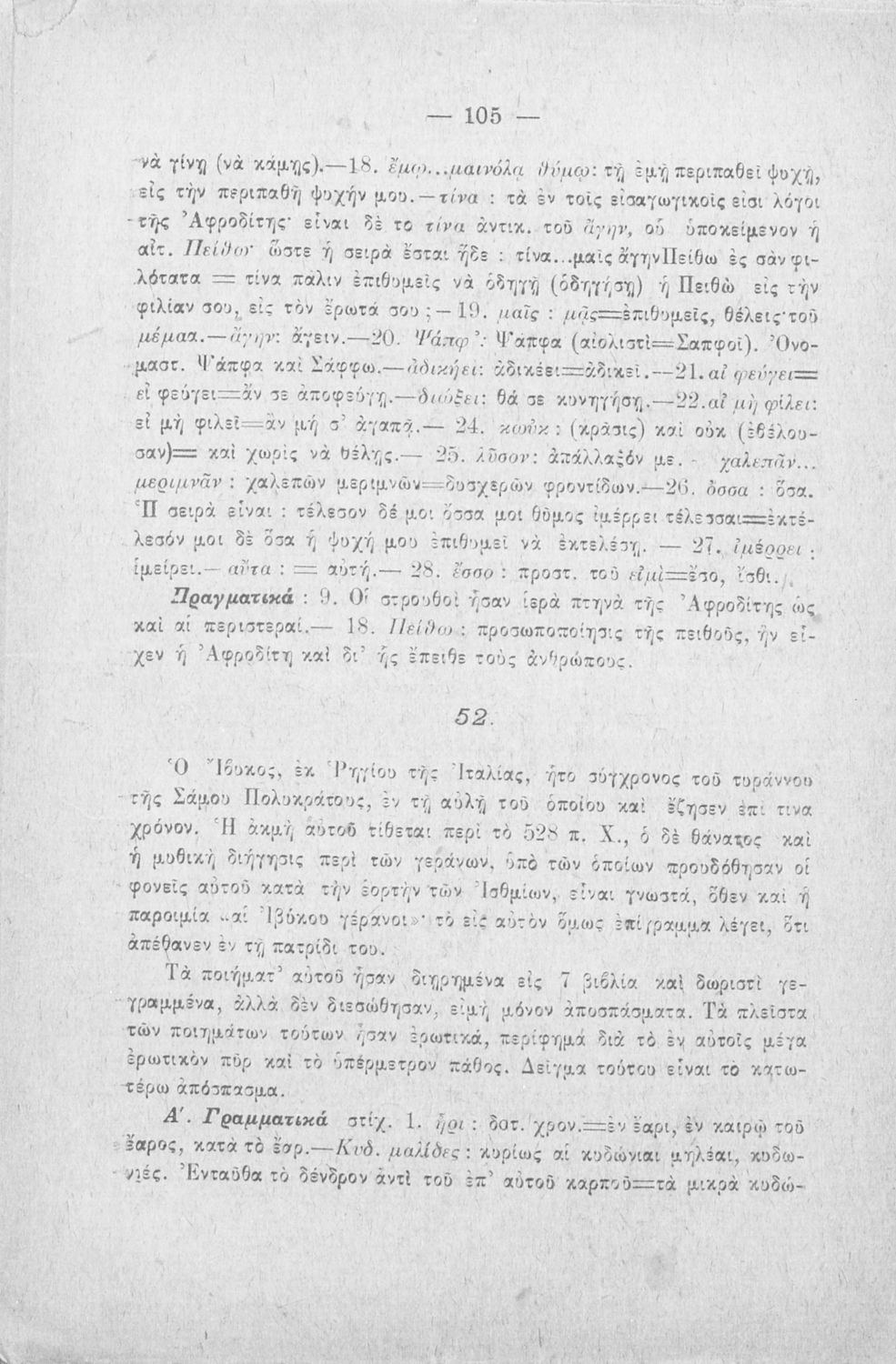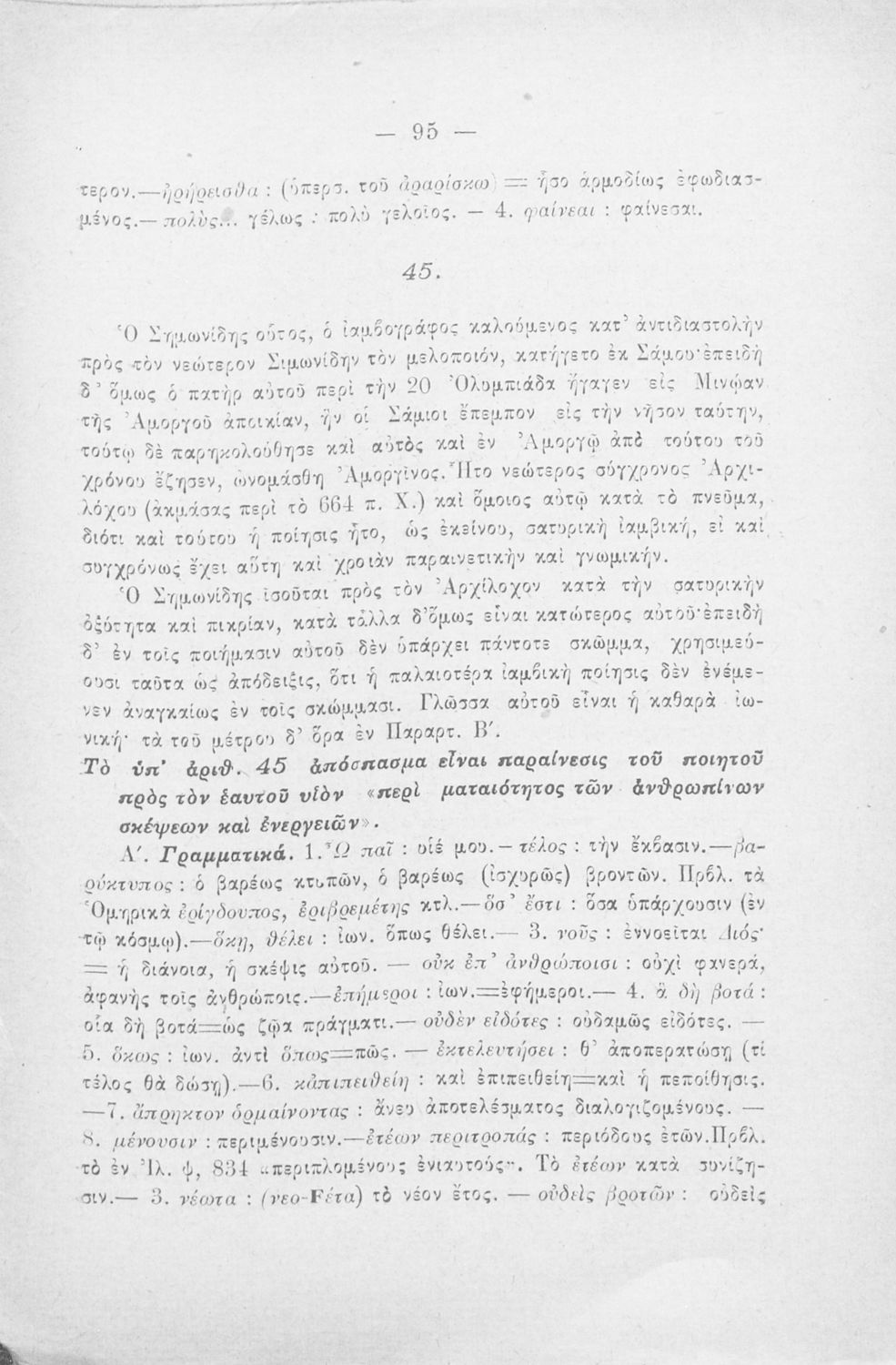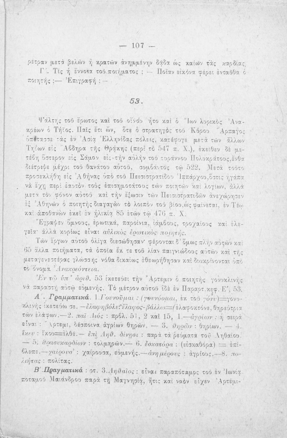 Σχολικό εγχειρίδιο Αρχαίων Ελληνικών Γ΄ Γυμνασίου που περιλαμβάνει αποσπάσματα έργων αρχαίων Ελλήνων λυρικών, πολιτικές και γνωμικές ελεγείες, ιάμβους και επιγράμματα. Περιέχει και υπόμνημα με ερμηνευτικά, πραγματολογικά, γλωσσικά και γραμματικά σχόλια.