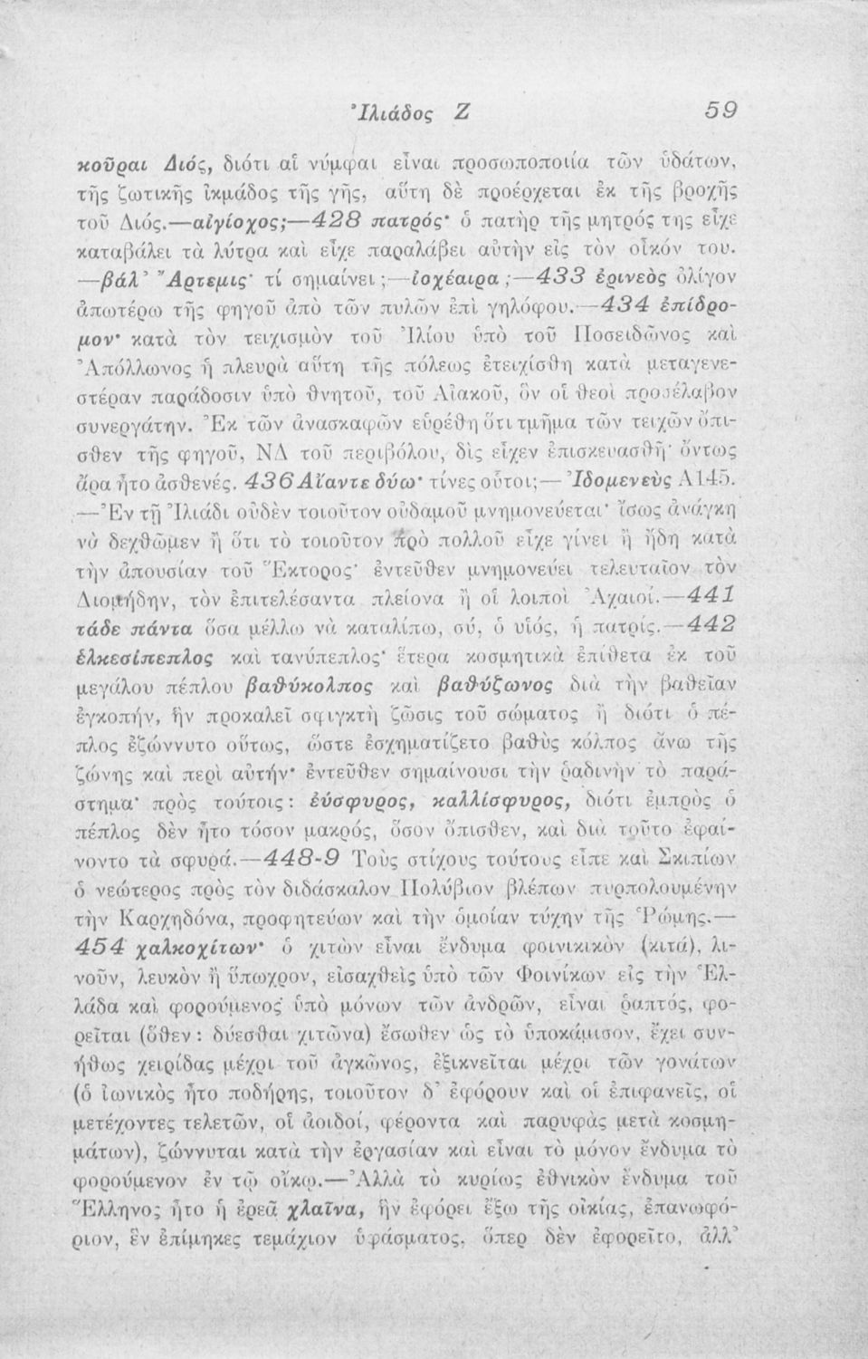 Μαθητικό βοήθημα Αρχαίων Ελληνικών που περιλαμβάνει τη ραψωδία Ζ΄ της Ιλιάδας λεξιλόγιο και αισθητικές σημειώσεις.
