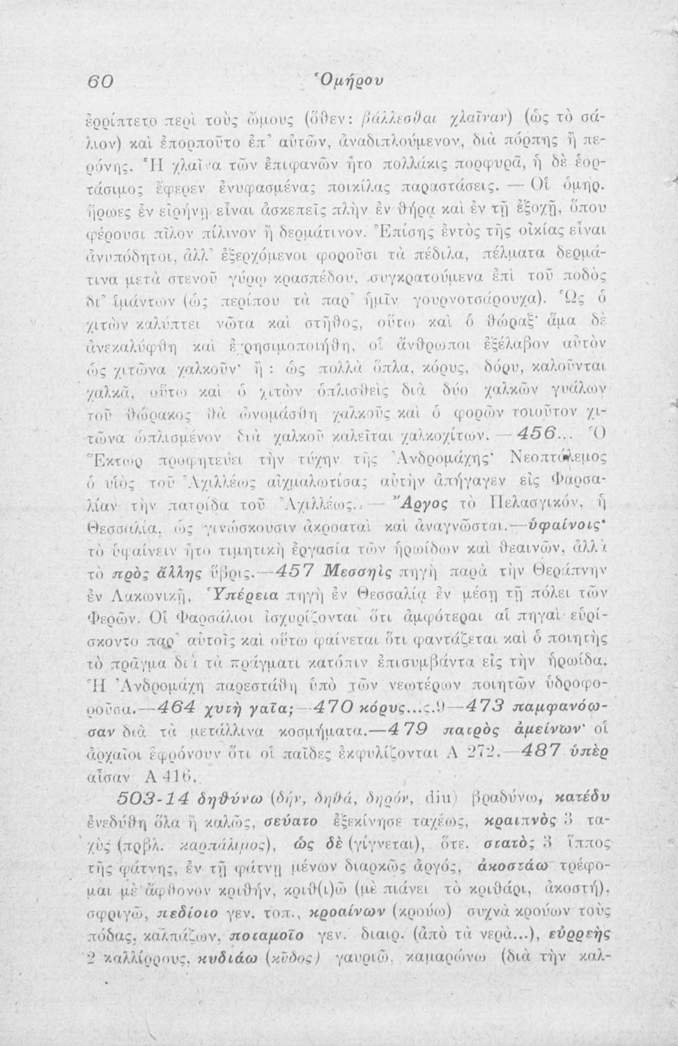 Μαθητικό βοήθημα του Ελληνικού Σχολείου, των Παρθεναγωγείων και του Γυμνασίου για το μάθημα των Αρχαίων Ελληνικών. Περιέχει τις ραψωδίες Ο, Π, Ρ, Σ, Τ, Χ, ψ, Ω από το πρωτότυπο με σχόλια και ερμηνευτικές ...