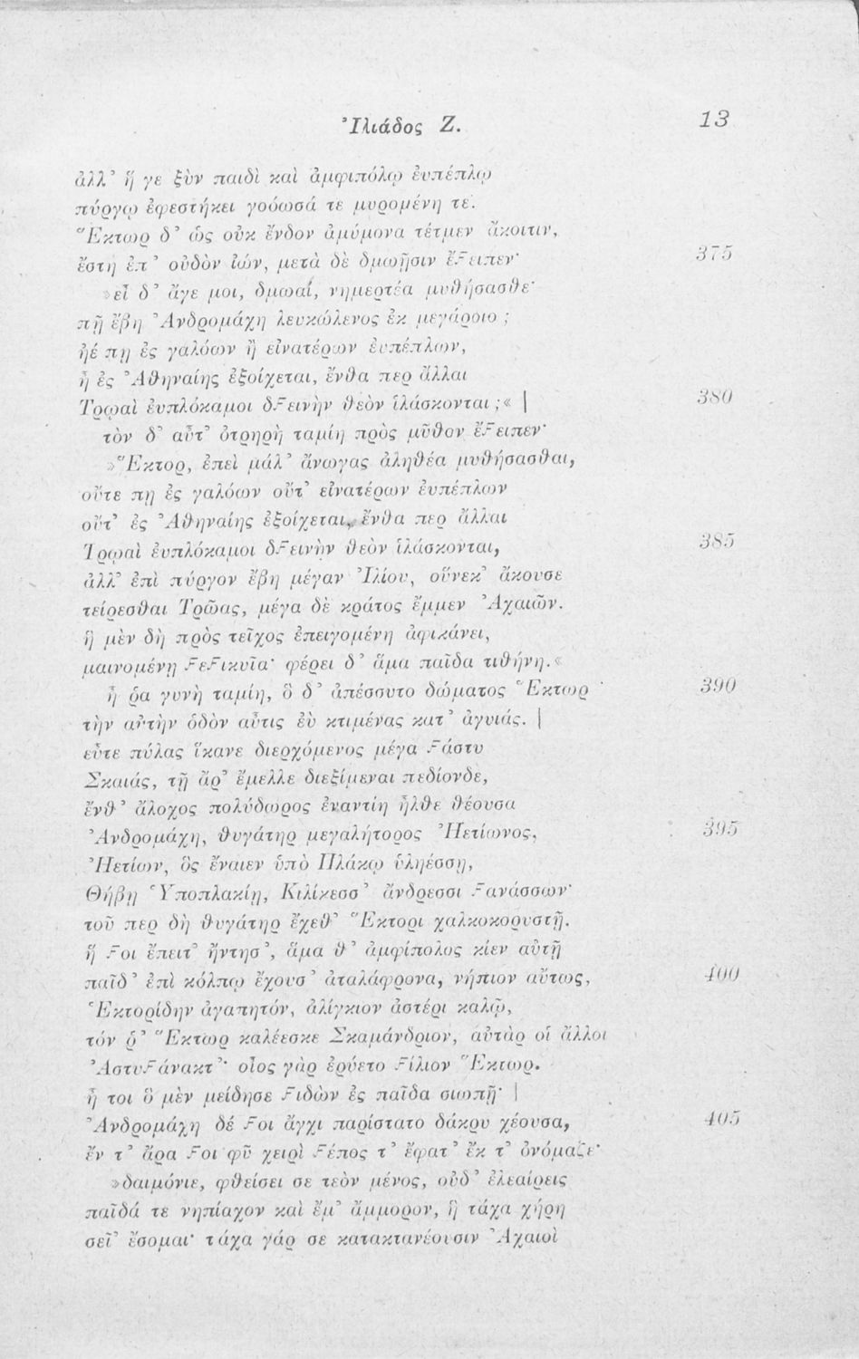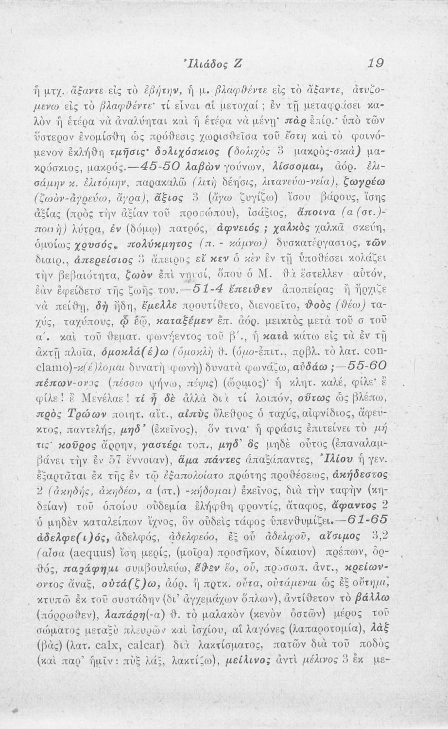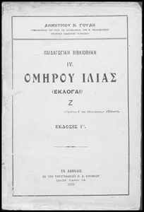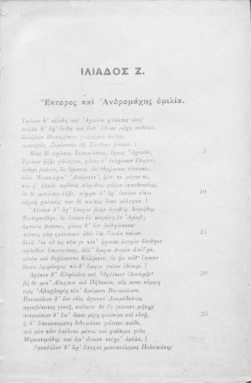 Μαθητικό βοήθημα Αρχαίων Ελληνικών που περιλαμβάνει τη ραψωδία Ζ΄ της Ιλιάδας λεξιλόγιο και αισθητικές σημειώσεις.