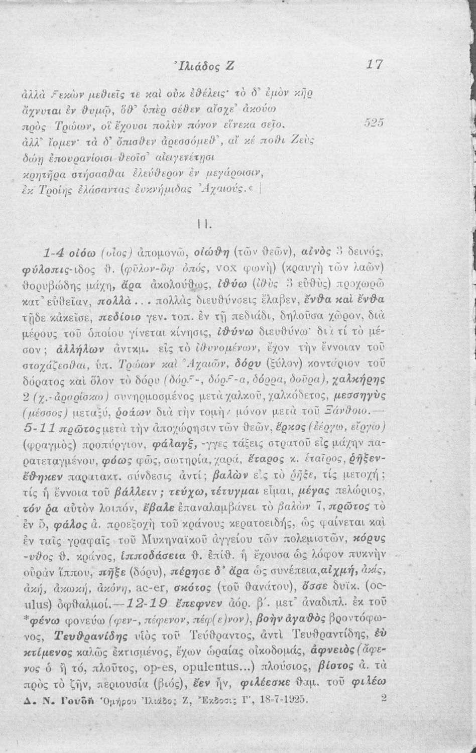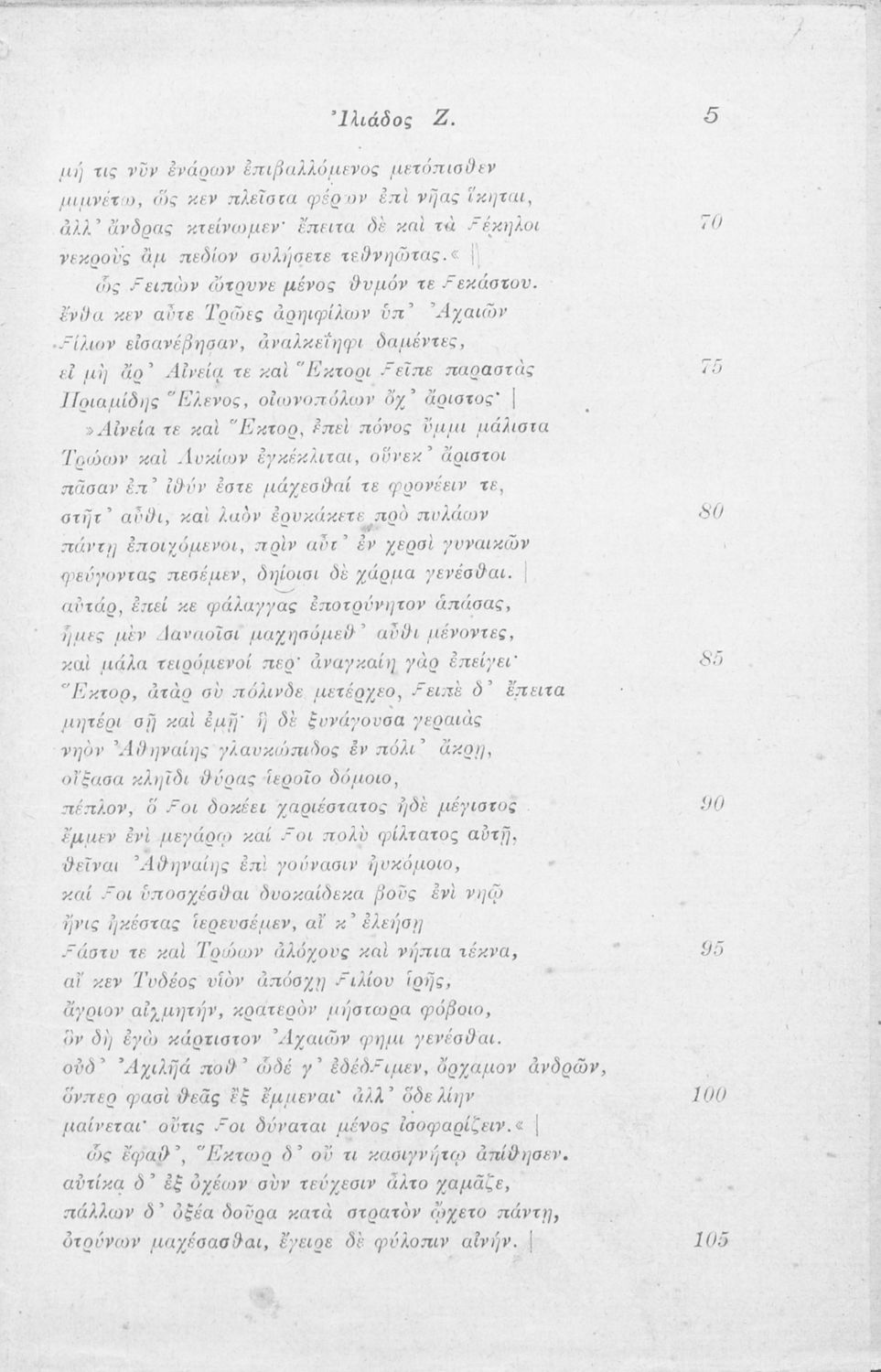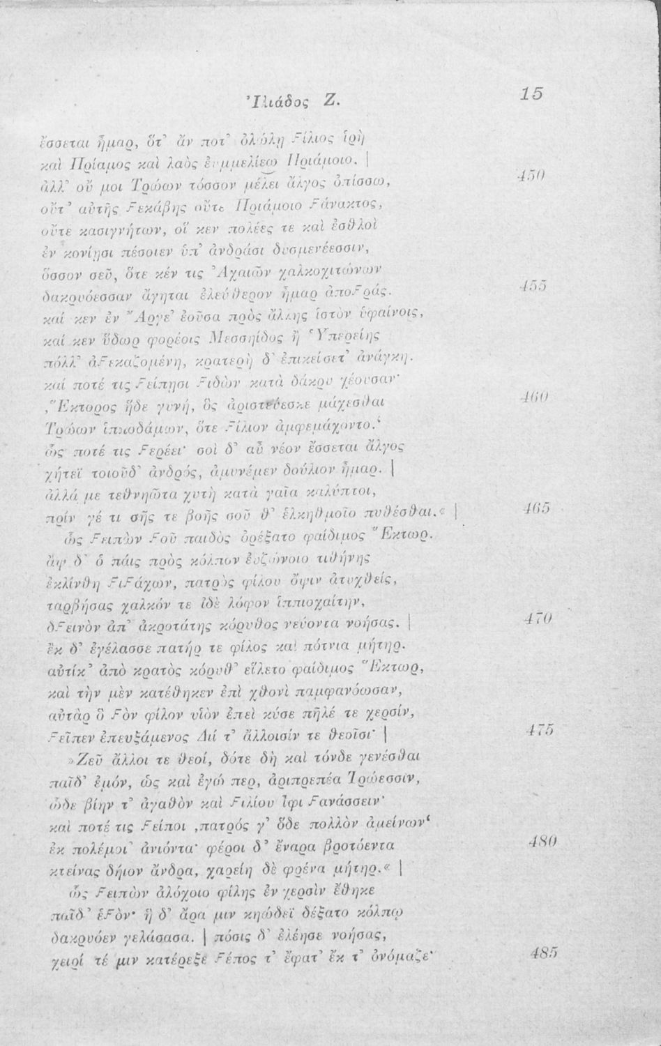 Μαθητικό βοήθημα Αρχαίων Ελληνικών που περιλαμβάνει τη ραψωδία Ζ΄ της Ιλιάδας λεξιλόγιο και αισθητικές σημειώσεις.