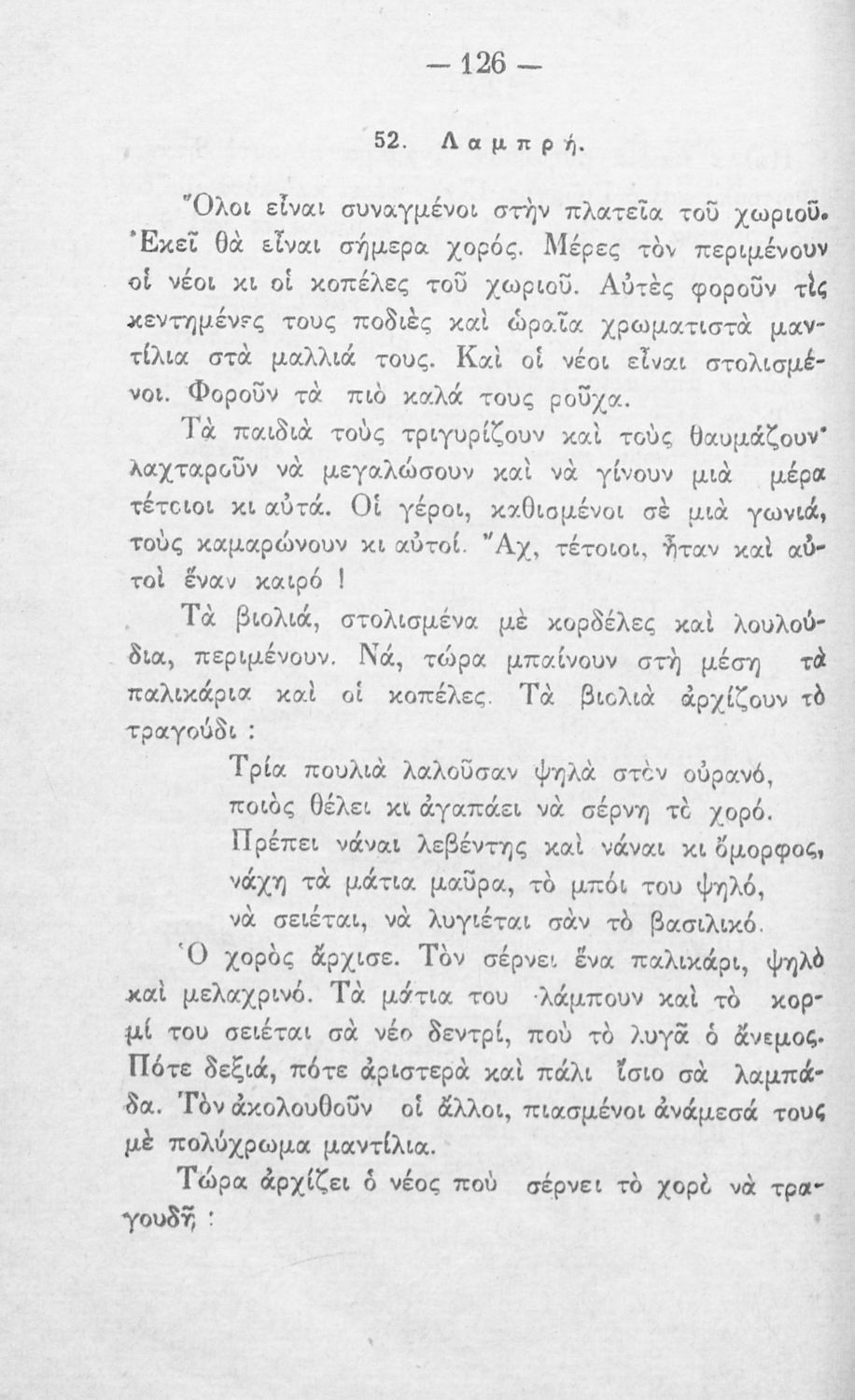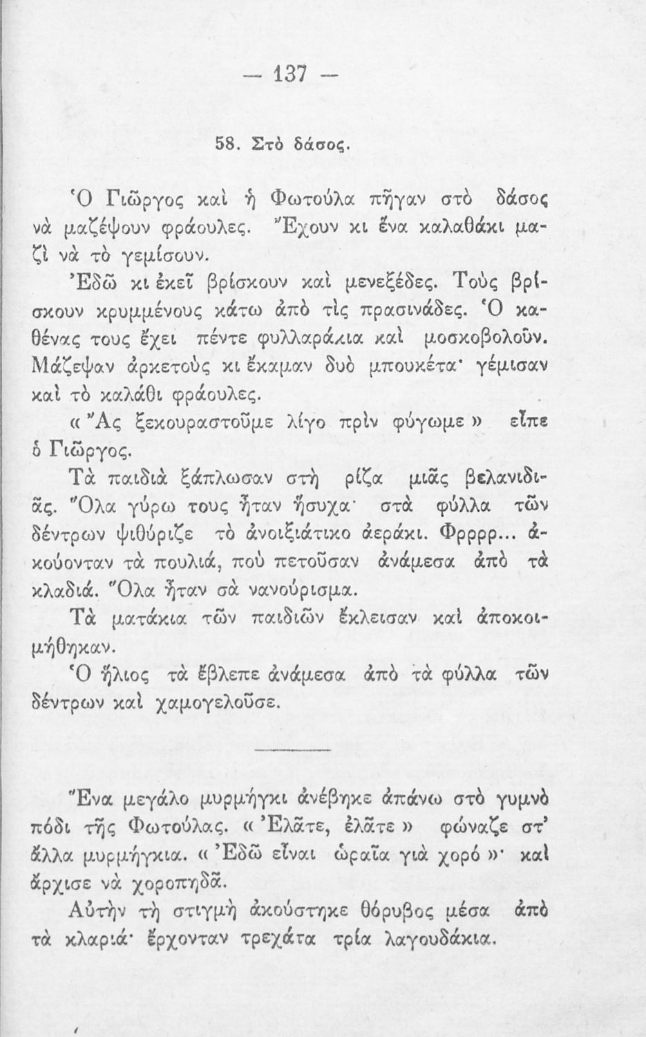 Αναγνωστικό Β' Δημοτικού που περιλαμβάνει μικρά διηγήματα και ποιήματα με περιεχόμενο από την οικογενειακή και κοινωνική ζωή, την ελληνική φύση, την ελληνική ιστορία και μυθολογία και την υγιεινή.