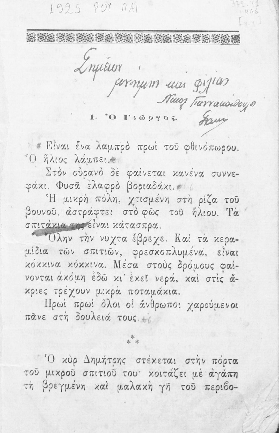 Εκδότης: Δημητράκος Έτος έκδοσης: 1925 Τόπος έκδοσης: Αθήνα |
