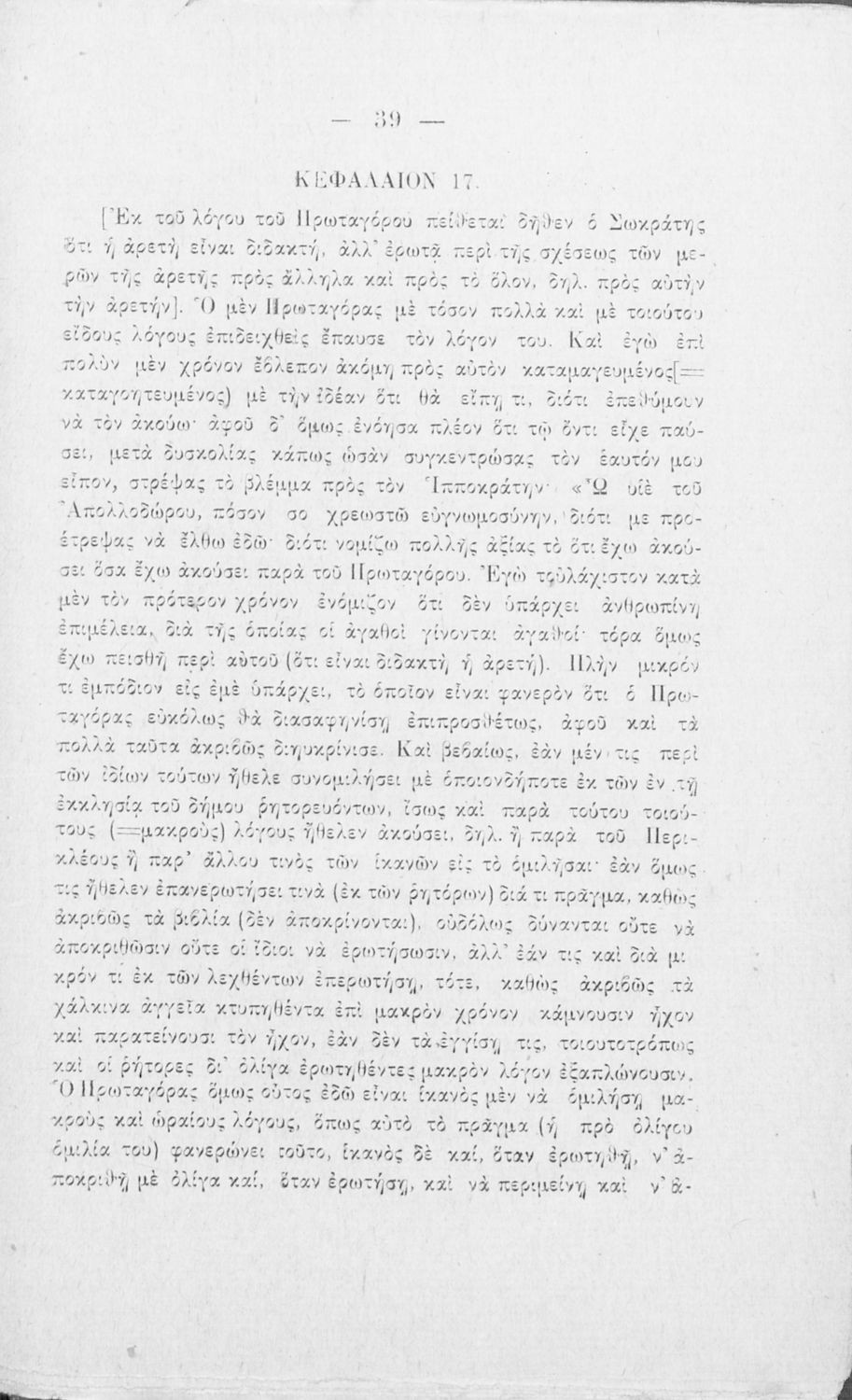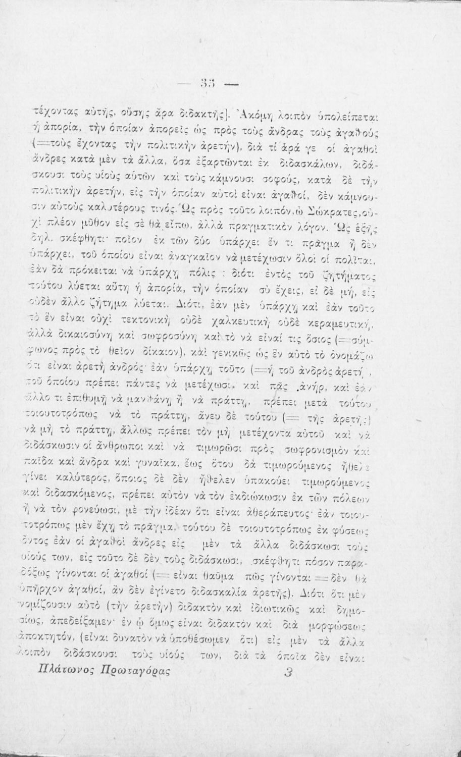 Πλάτωνος Πρωταγόρας μεταφρασθείς εις την νέαν ελληνικήν γλώσσσαν μετά εισαγωγής και περιλήψεων σχετικών προς χρήσιν των μαθητών, των φοιτητών και παντός λογίου