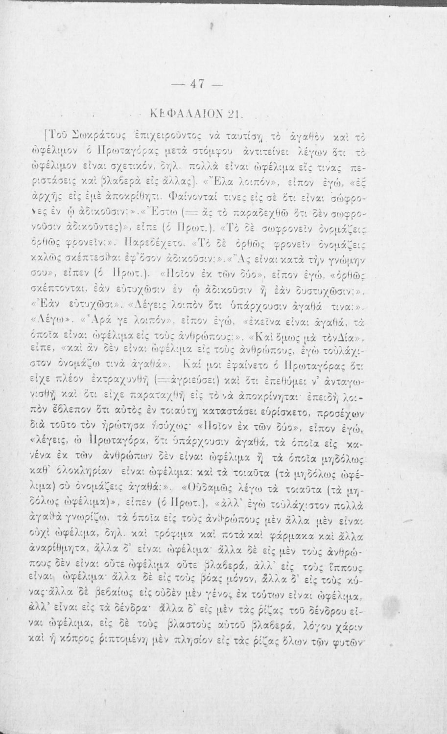 Πλάτωνος Πρωταγόρας μεταφρασθείς εις την νέαν ελληνικήν γλώσσσαν μετά εισαγωγής και περιλήψεων σχετικών προς χρήσιν των μαθητών, των φοιτητών και παντός λογίου