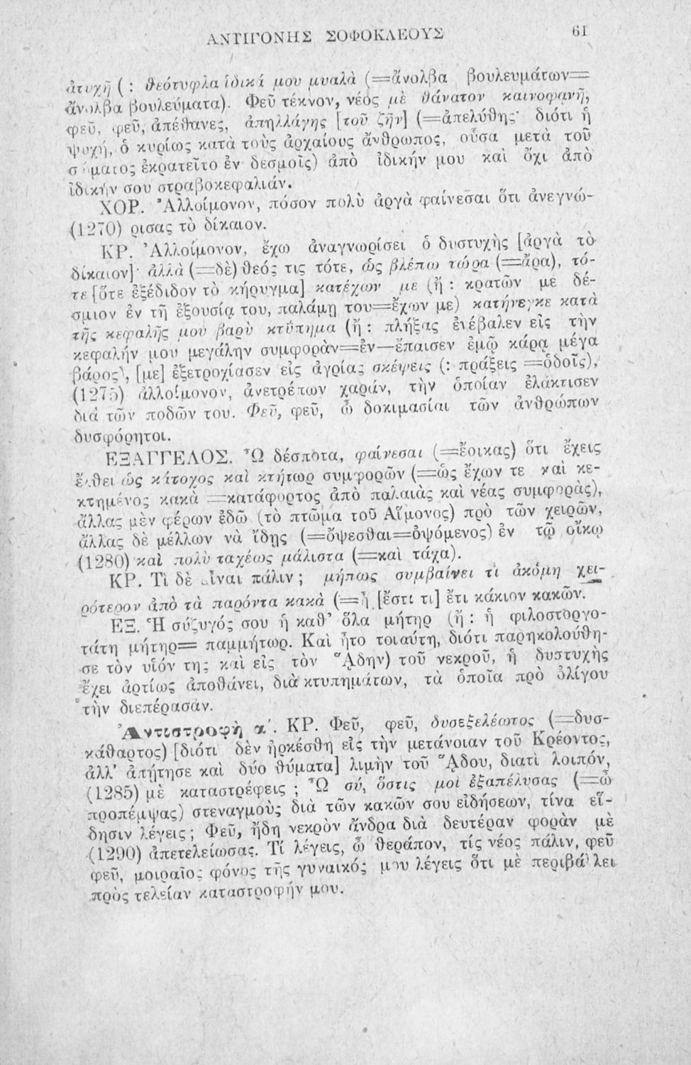 Μαθητικό βοήθημα Αρχαίων Ελληνικών Δ΄ Γυμνασίου που περιλαμβάνει μετάφραση της Αντιγόνης του Σοφοκλή.