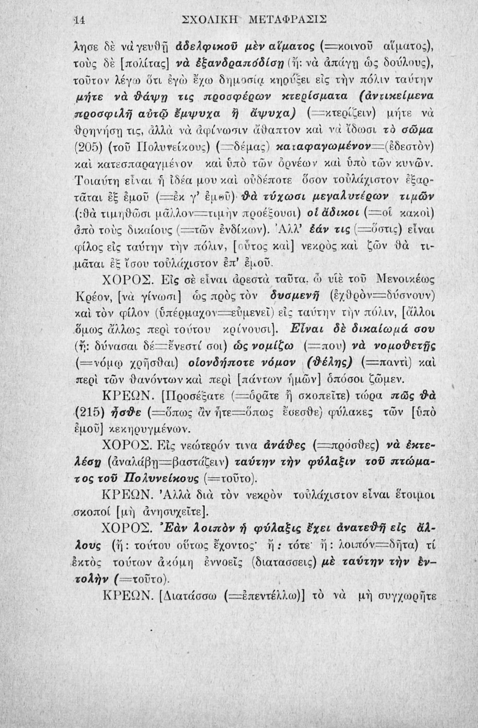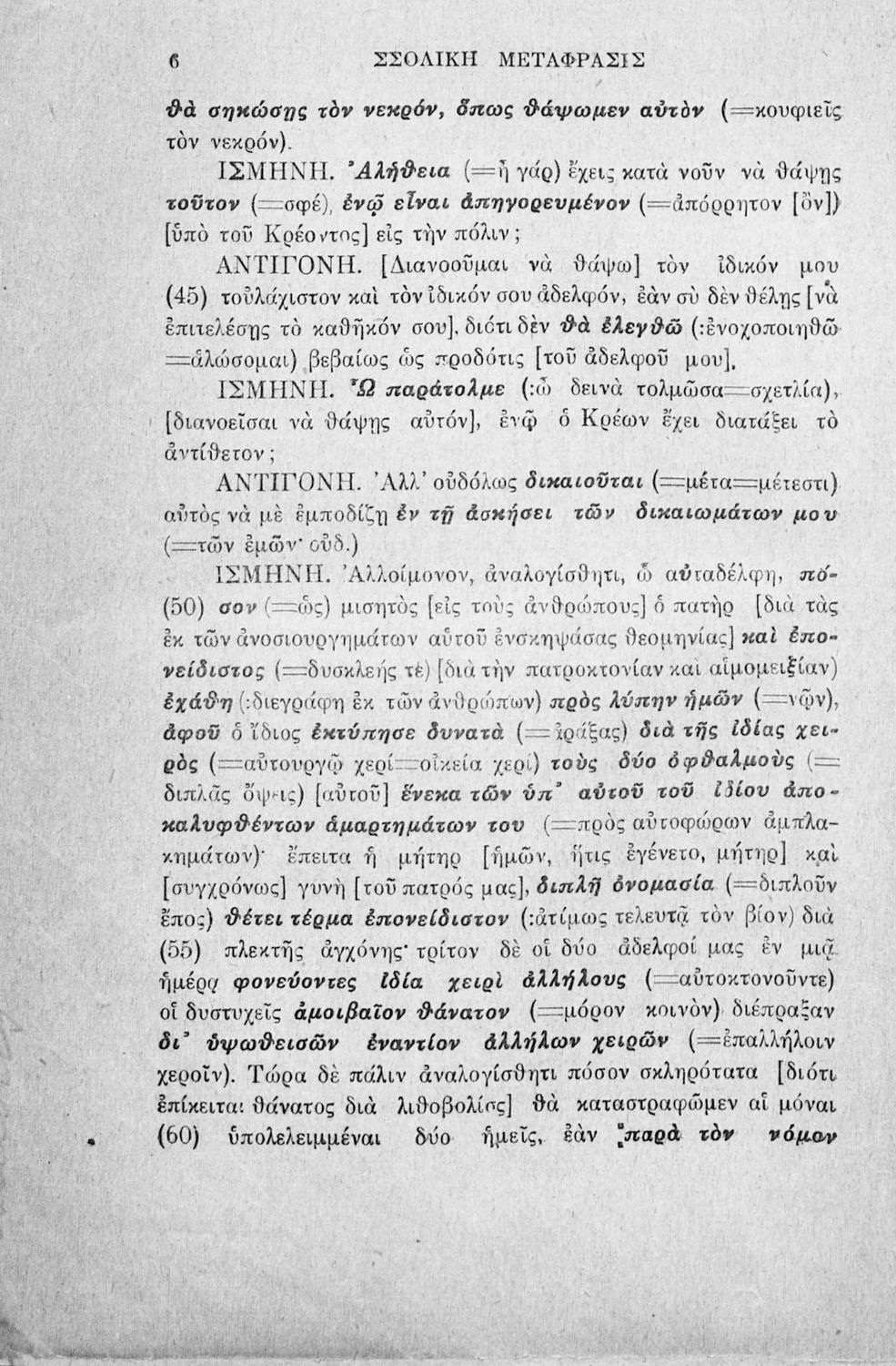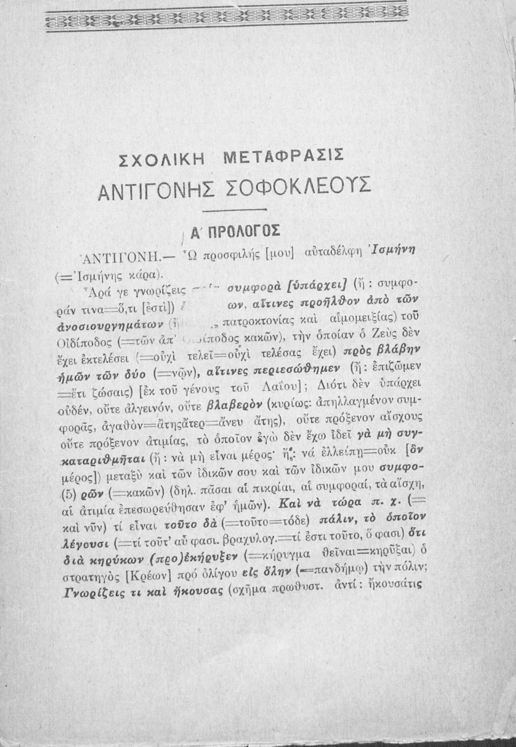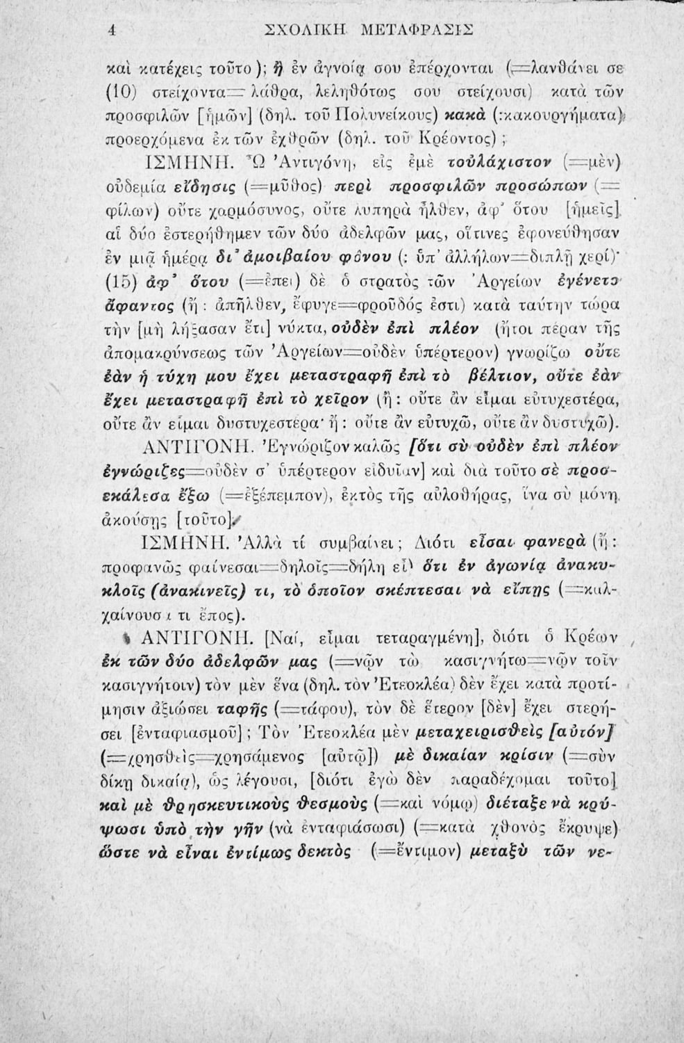 Μαθητικό βοήθημα Αρχαίων Ελληνικών Δ΄ Γυμνασίου που περιλαμβάνει μετάφραση της Αντιγόνης του Σοφοκλή.