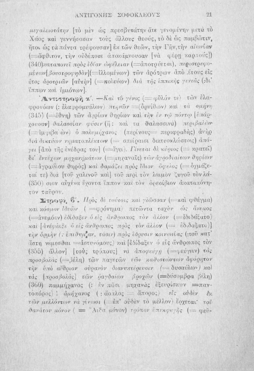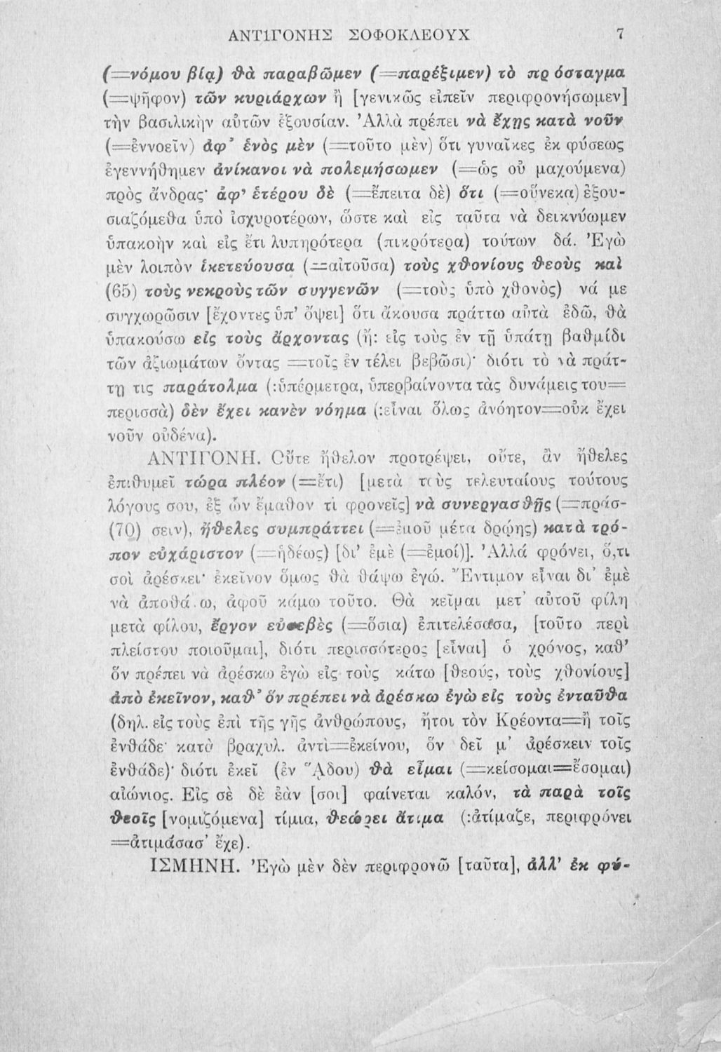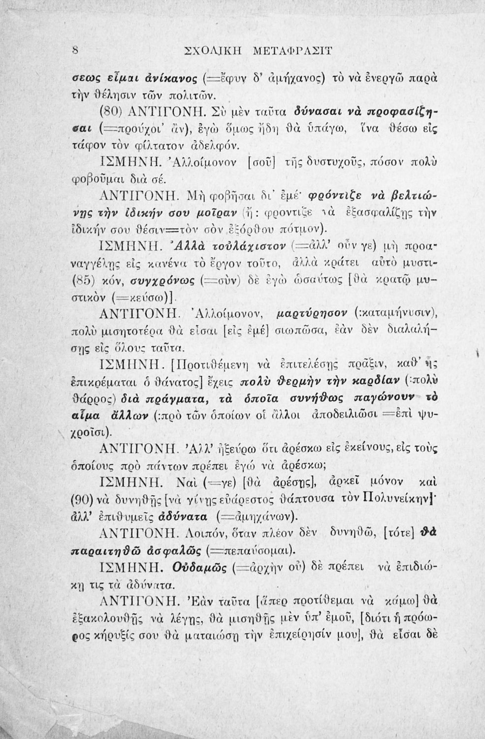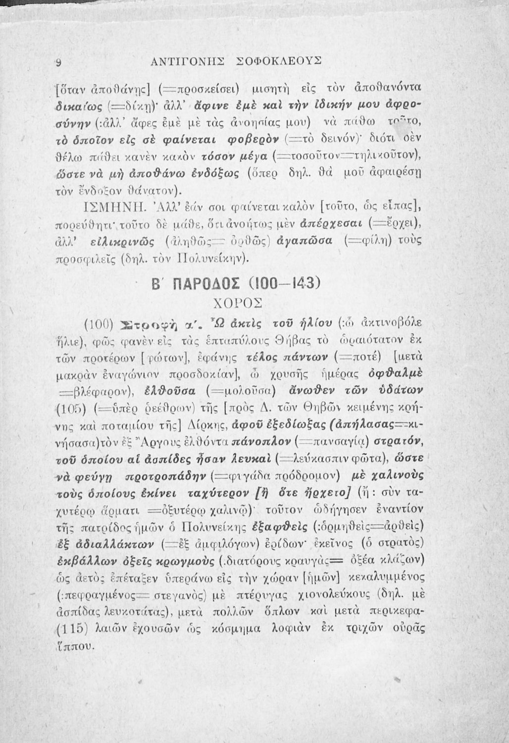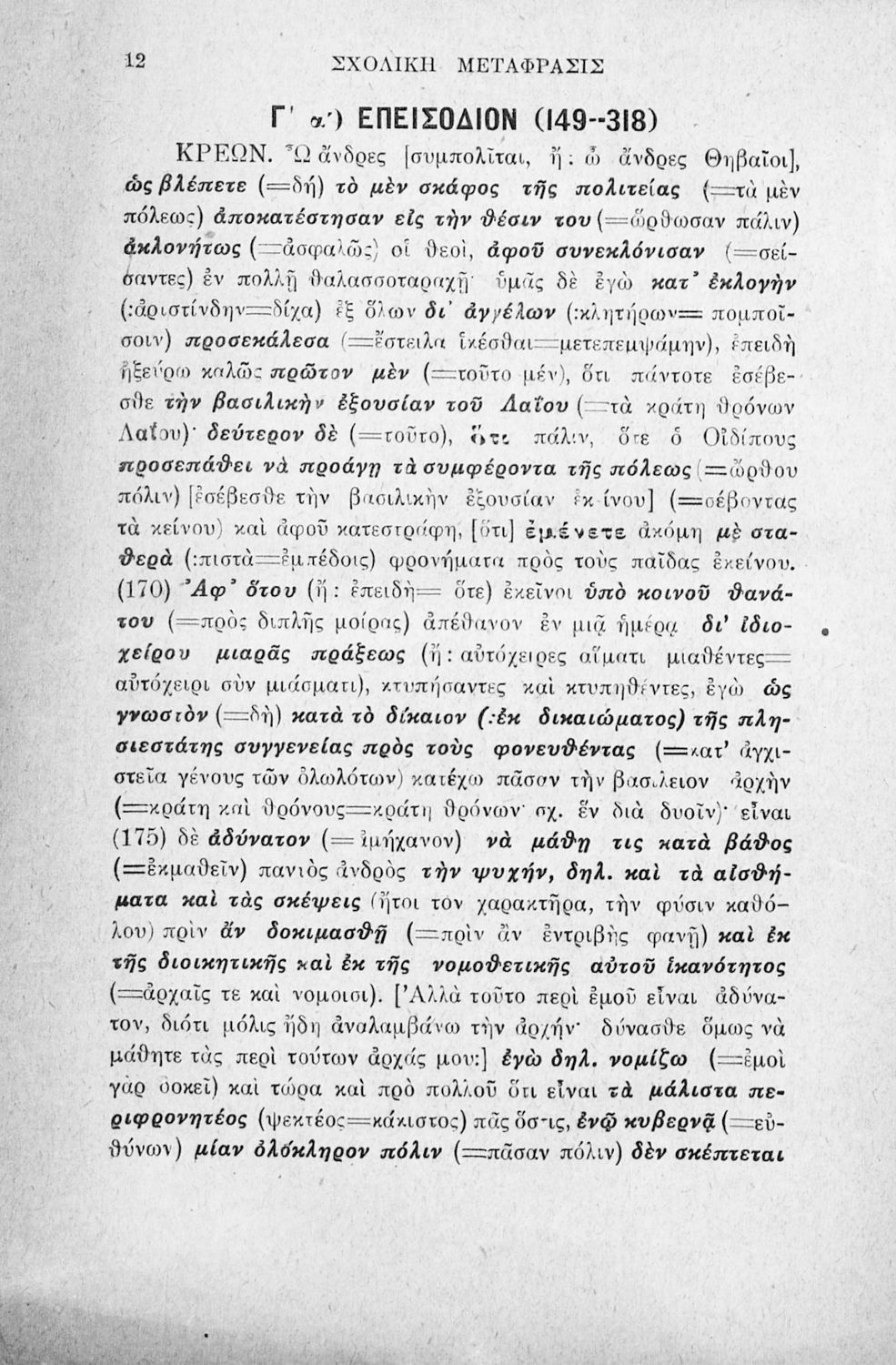 Μαθητικό βοήθημα Αρχαίων Ελληνικών Δ΄ Γυμνασίου που περιλαμβάνει μετάφραση της Αντιγόνης του Σοφοκλή.