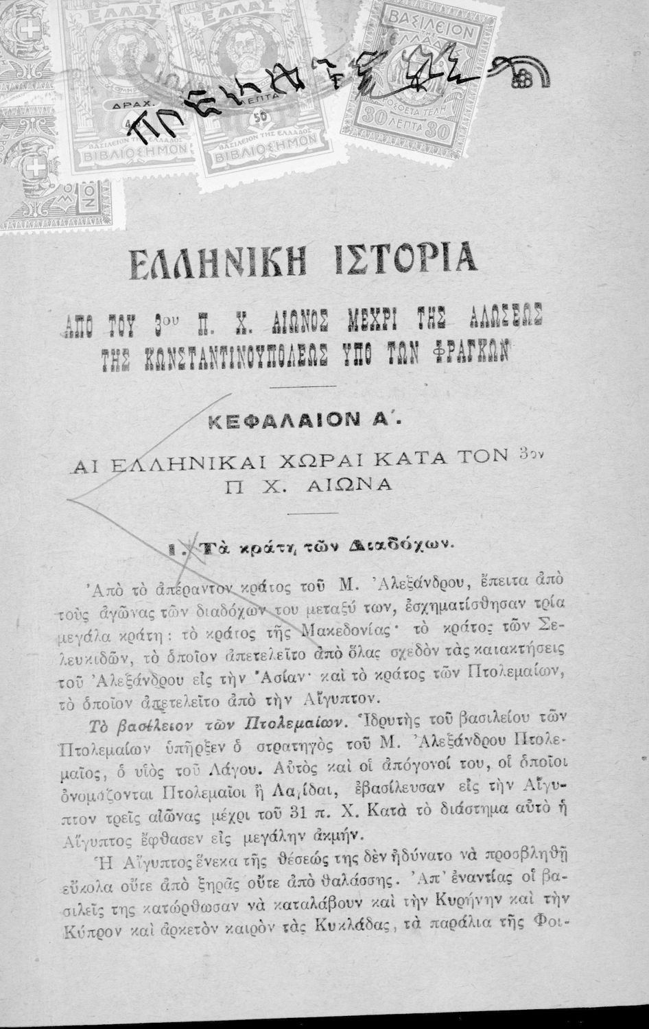 Τίτλος: Ελληνική Ιστορία από του 3ου π. Χ αιώνος μέχρι της αλώσεως της Κωνσταντινουπόλεως από τους Φράγκους. Β΄ Ελληνικών Σχολείων