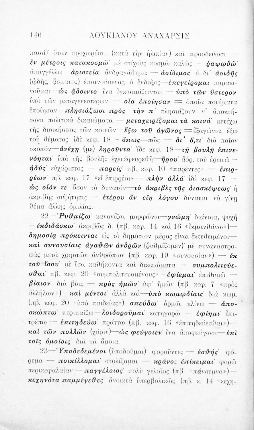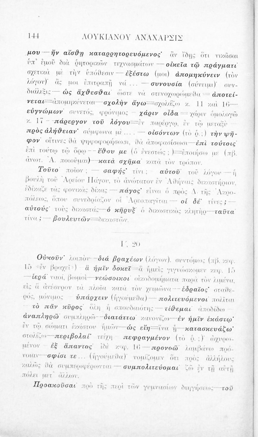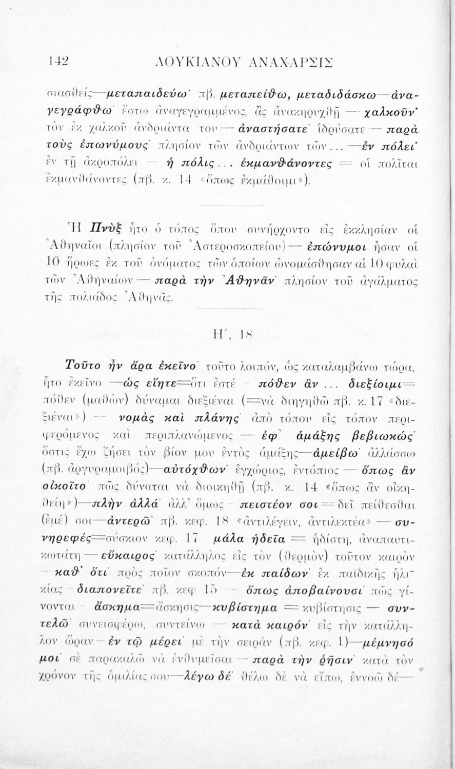 Σχολικό εγχειρίδιο Αρχαίων Ελληνικών που περιλαμβάνει αποσπάσματα από το έργο του Ξενοφώντα Ελληνικά και τα έργα του Λουκιανού Ενύπνιον και Ανάχαρσις, βιογραφικά σημειώματα των συγγραφέων, ερμηνευτικές και πραγματολογικές σημειώσεις.