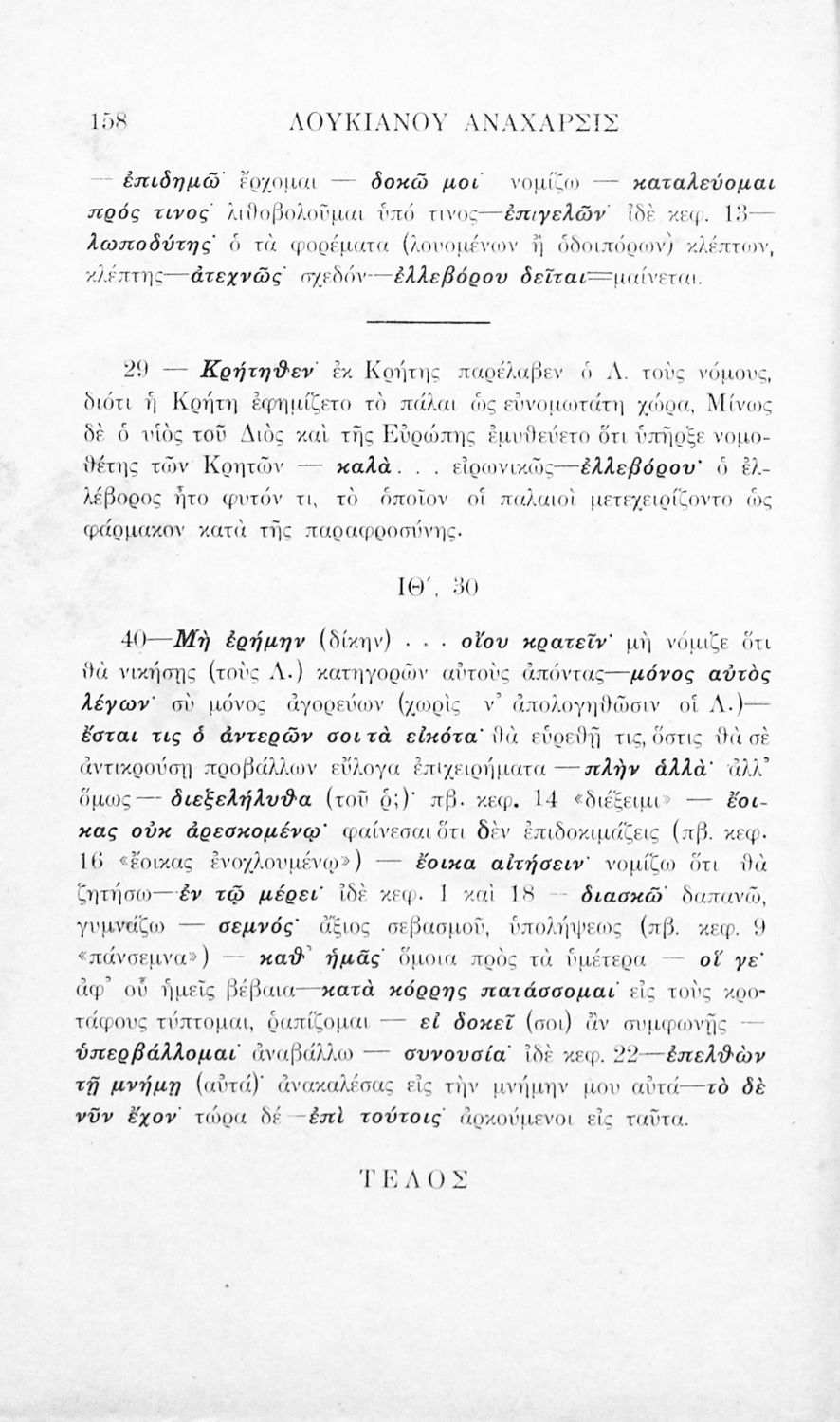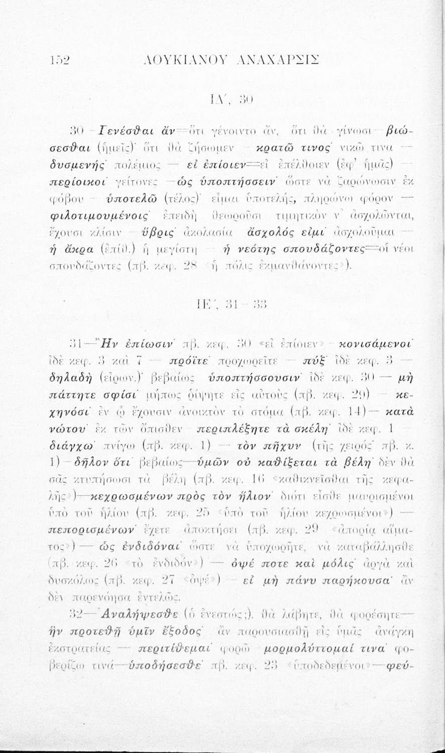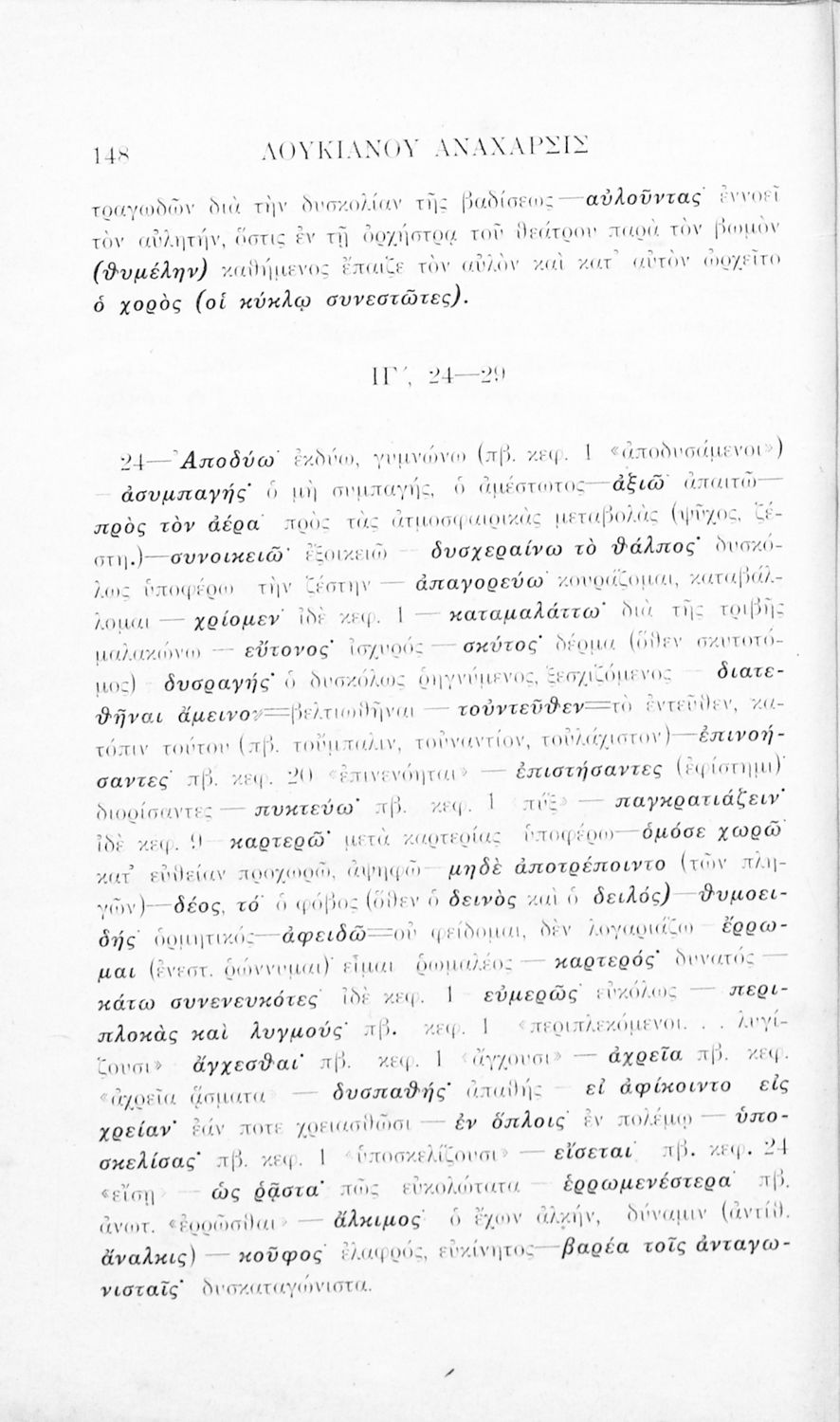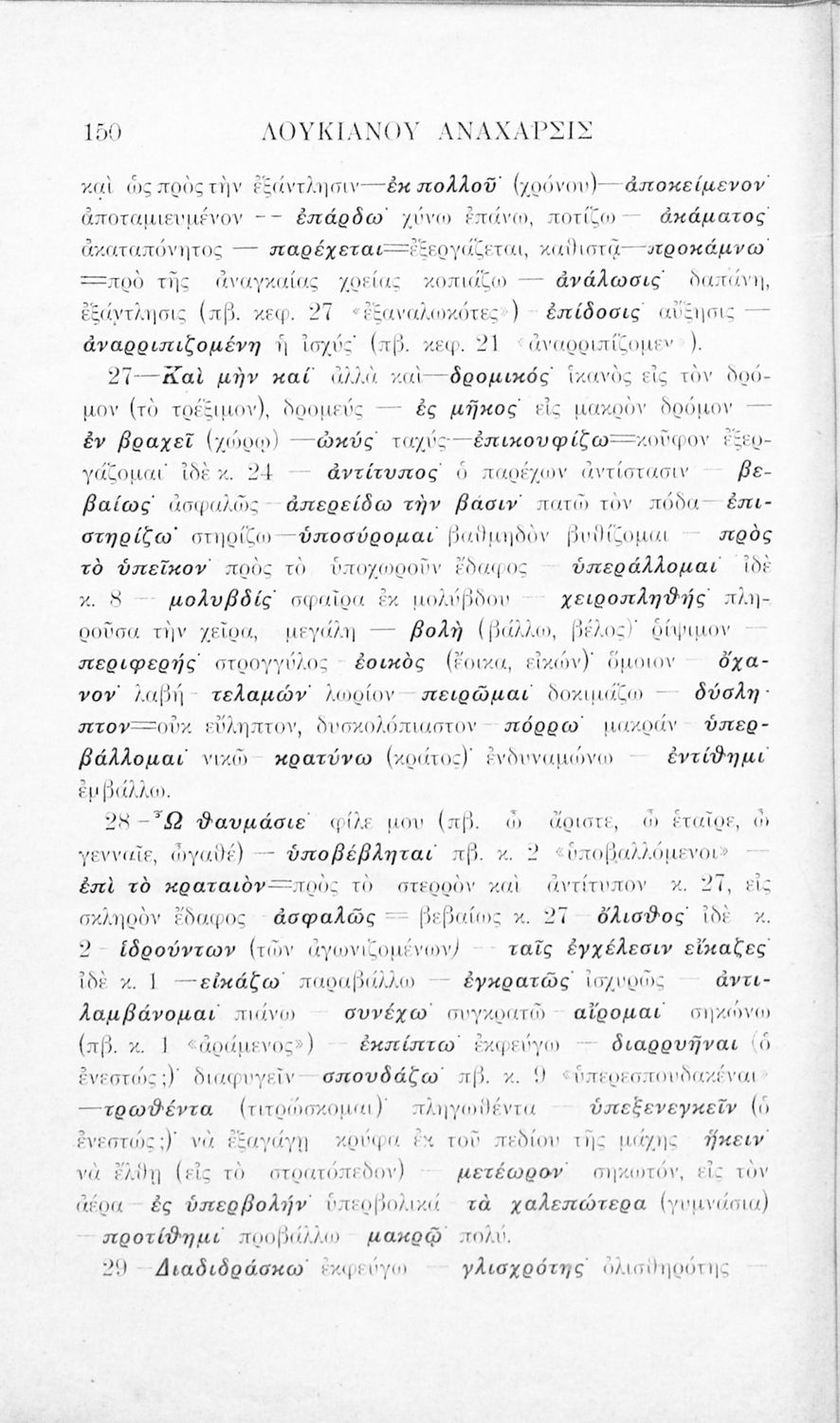 Σχολικό εγχειρίδιο Αρχαίων Ελληνικών που περιλαμβάνει αποσπάσματα από το έργο του Ξενοφώντα Ελληνικά και τα έργα του Λουκιανού Ενύπνιον και Ανάχαρσις, βιογραφικά σημειώματα των συγγραφέων, ερμηνευτικές και πραγματολογικές σημειώσεις.