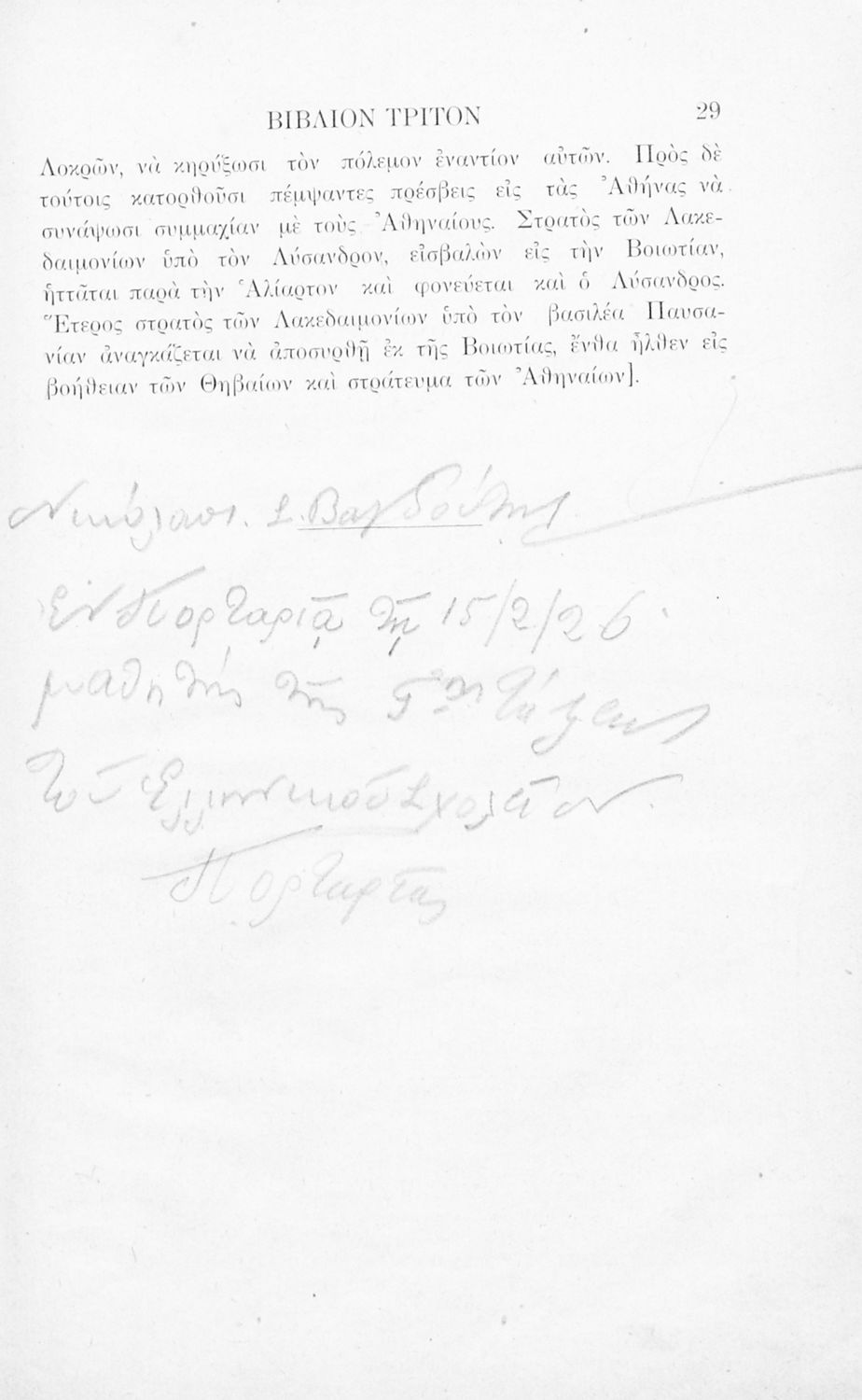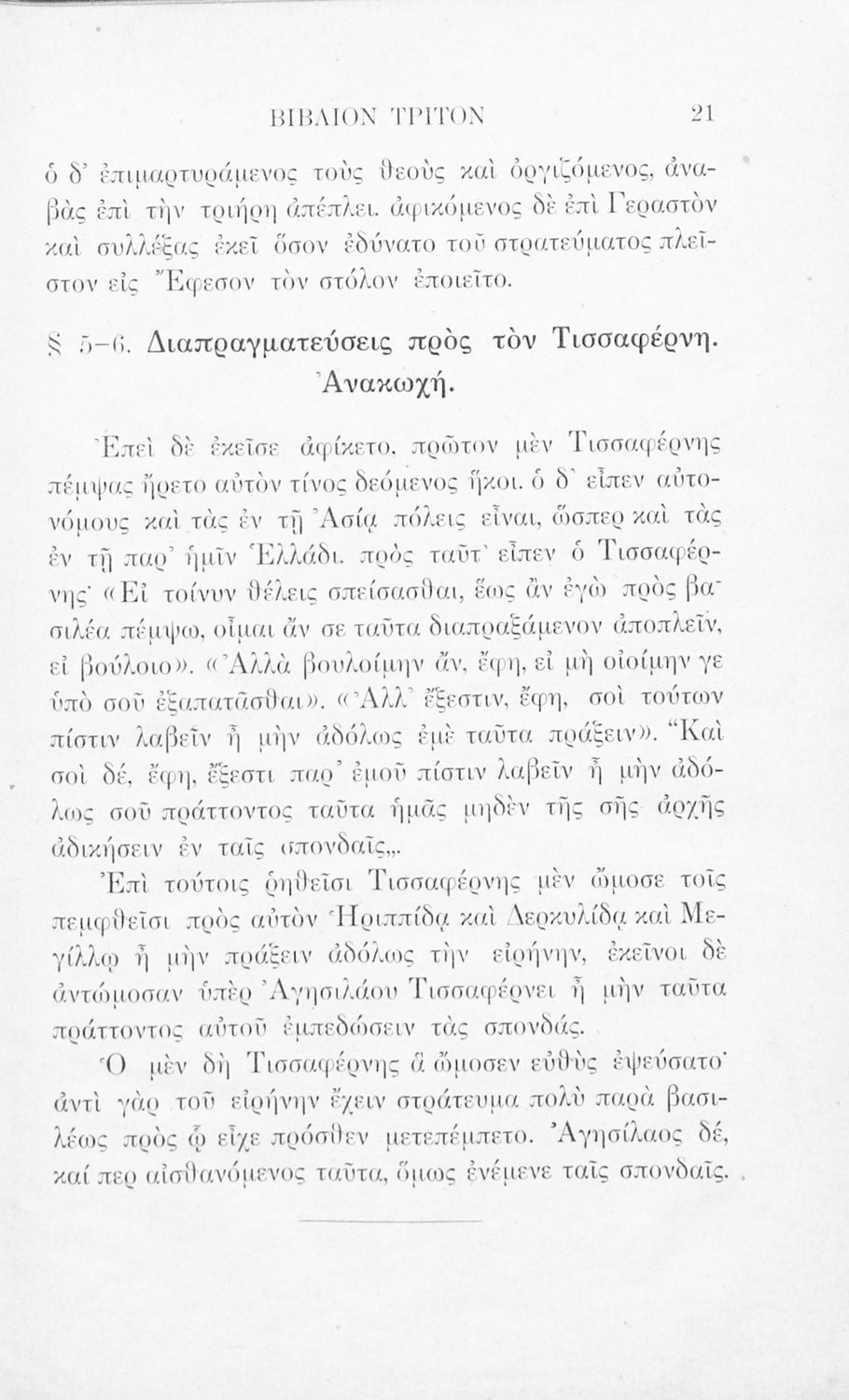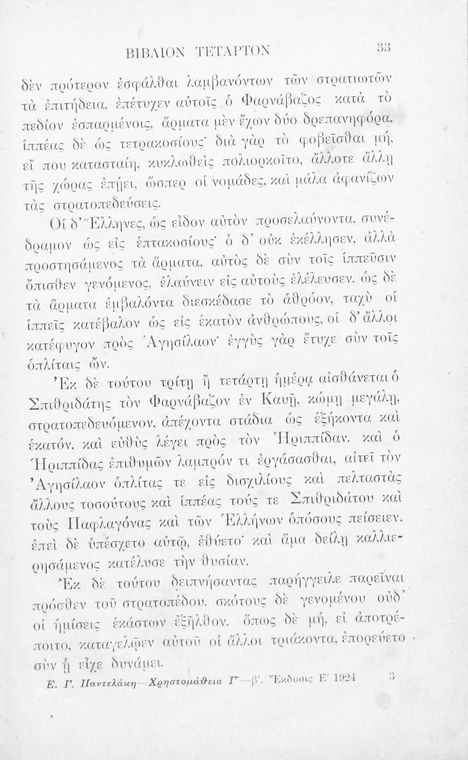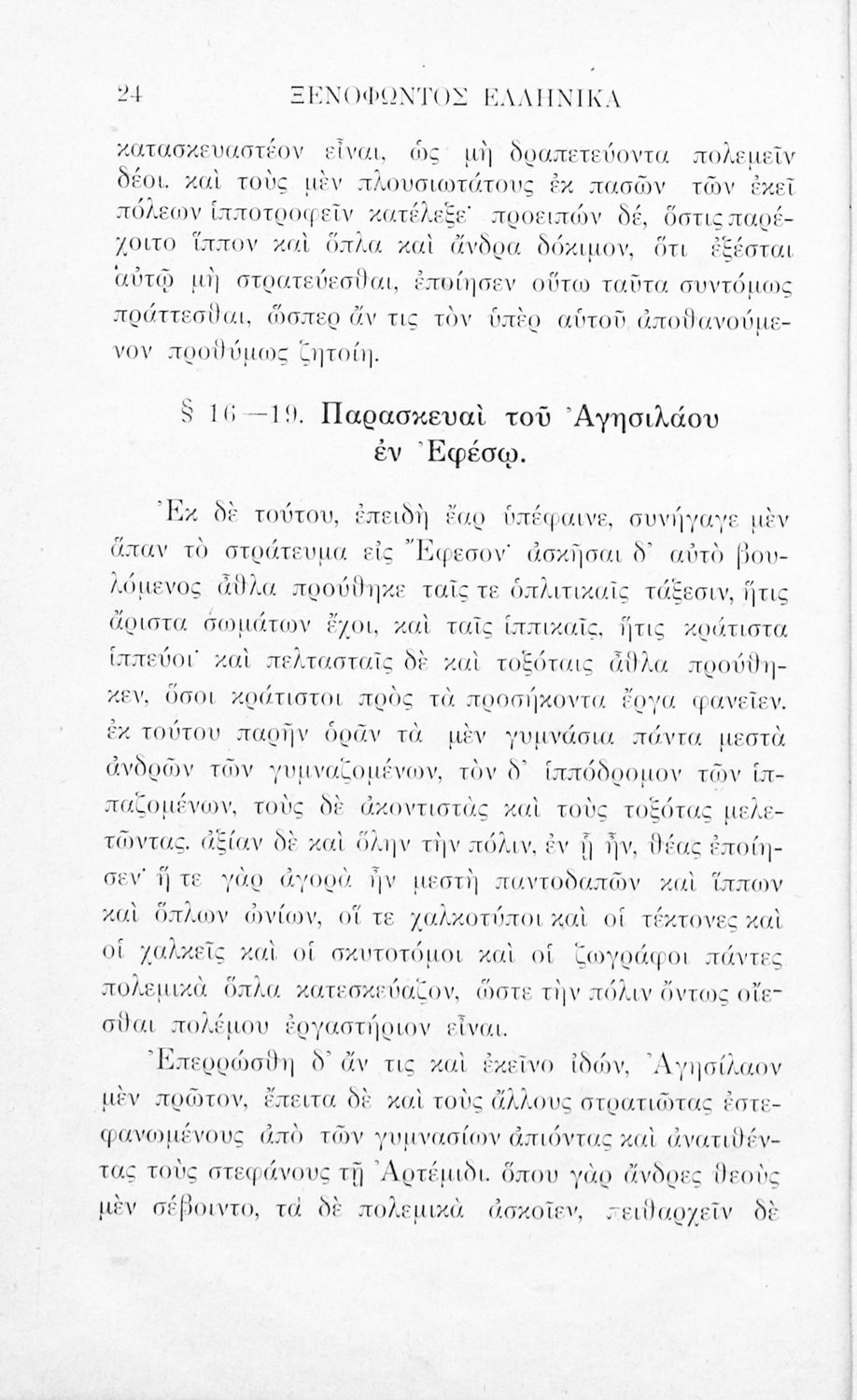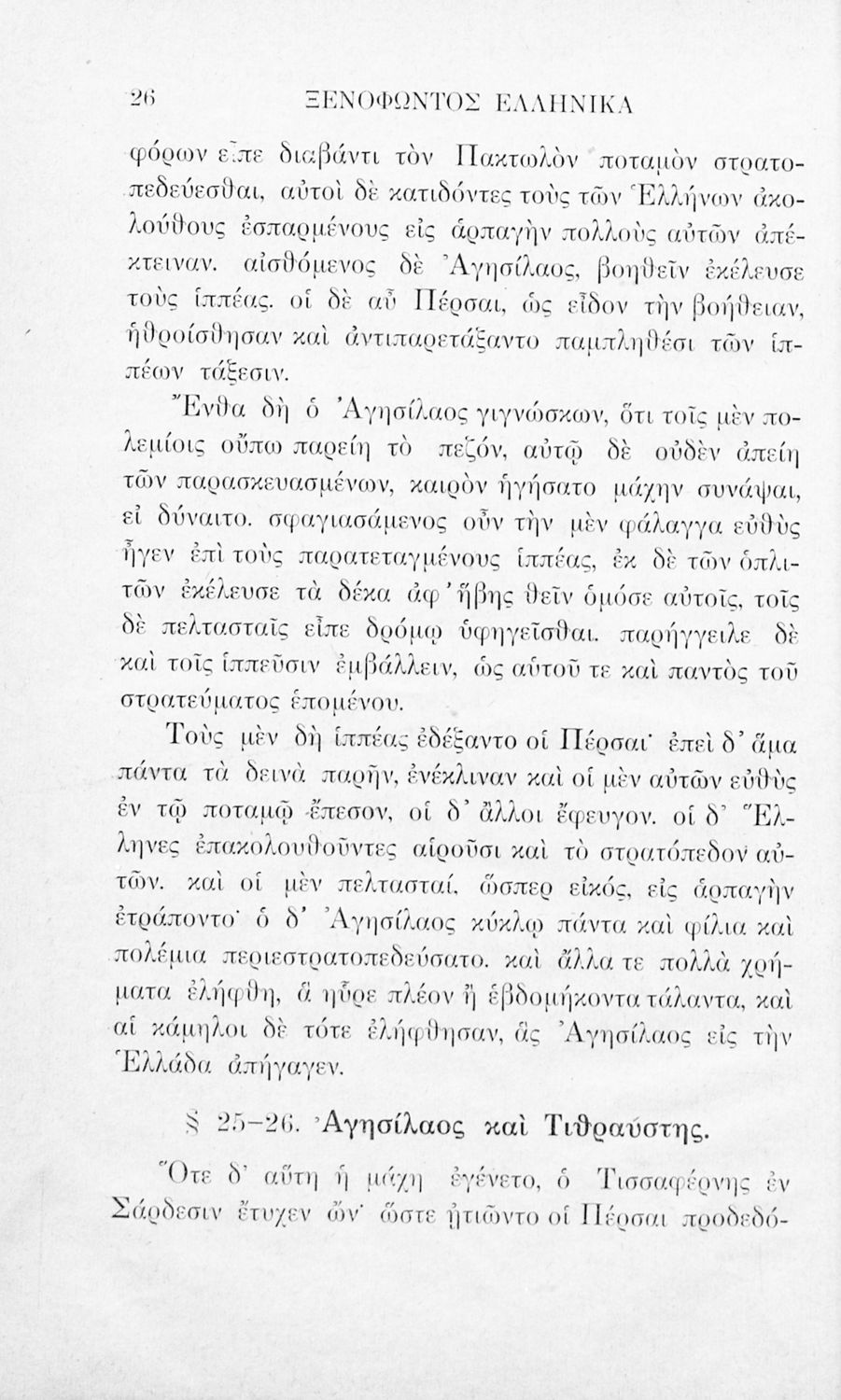 Σχολικό εγχειρίδιο Αρχαίων Ελληνικών που περιλαμβάνει αποσπάσματα από το έργο του Ξενοφώντα Ελληνικά και τα έργα του Λουκιανού Ενύπνιον και Ανάχαρσις, βιογραφικά σημειώματα των συγγραφέων, ερμηνευτικές και πραγματολογικές σημειώσεις.