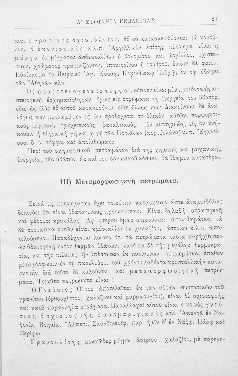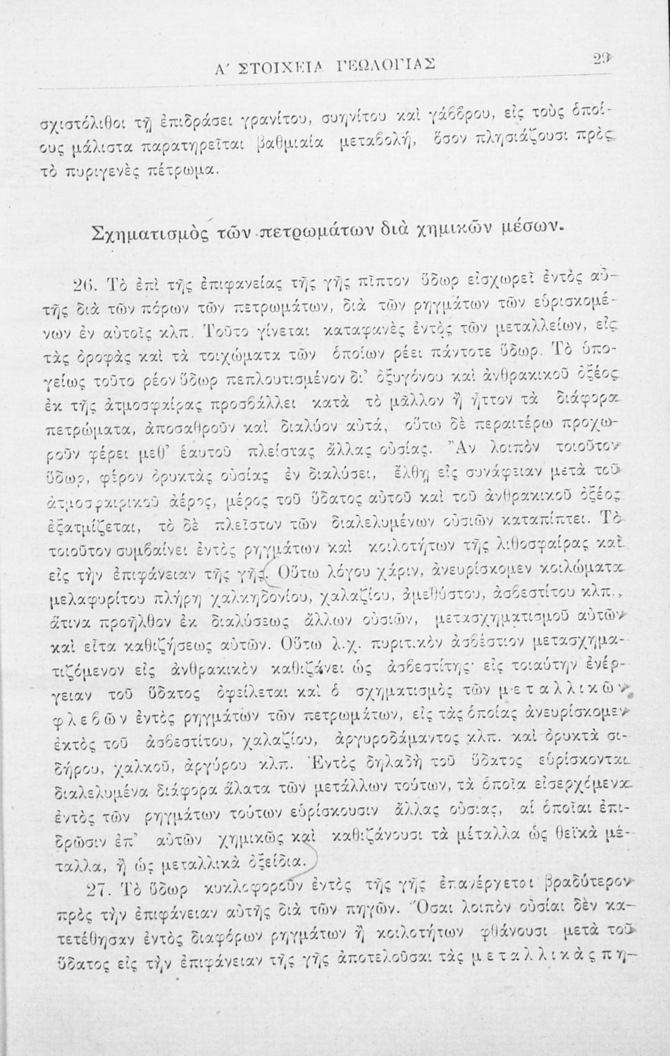 Στοιχεία Γεωλογίας – Ορυκτολογίας, προς χρήσιν της Β΄ τάξεως των Γυμνασίων κλπ.