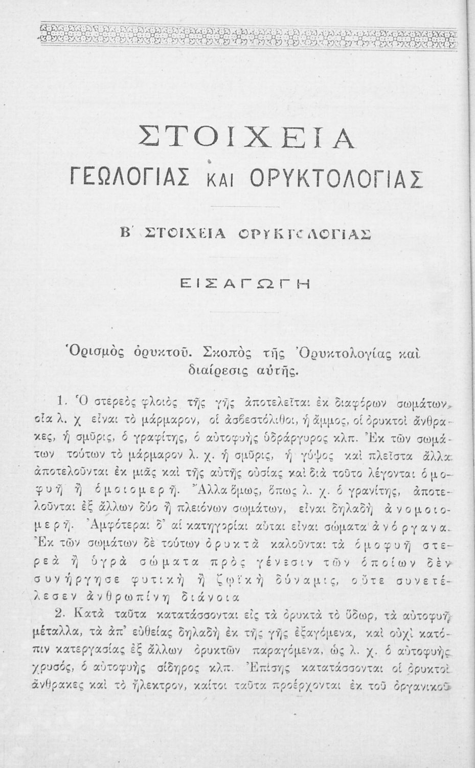 245 0# _aΣτοιχεία Γεωλογίας – Ορυκτολογίας, προς χρήσιν της Β΄ τάξεως των Γυμνασίων κλπ.