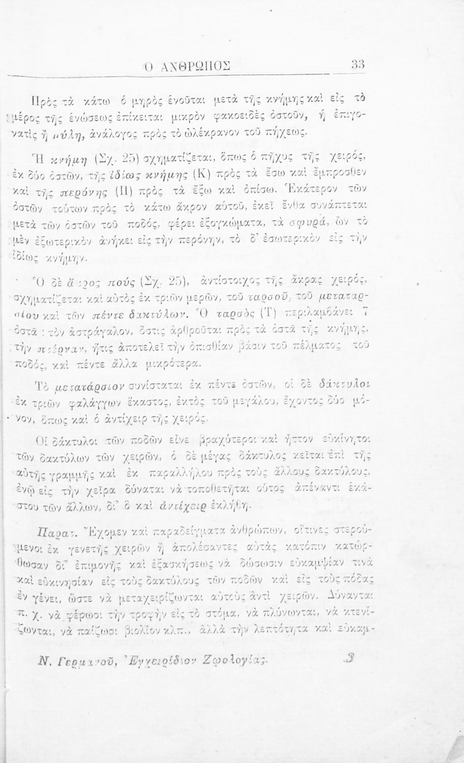 520 ## _aΣχολικό εγχειρίδιο Ζωολογίας για τα Γυμνάσια, τα Διδασκαλεία και τα Παρθεναγωγεία που εστιάζει στην ανθρώπινη φυσιολογία και ανατομία και παρουσιάζει τα διάφορα ζώα ανάλογα με την συνομοταξία στην οποία ανήκουν.