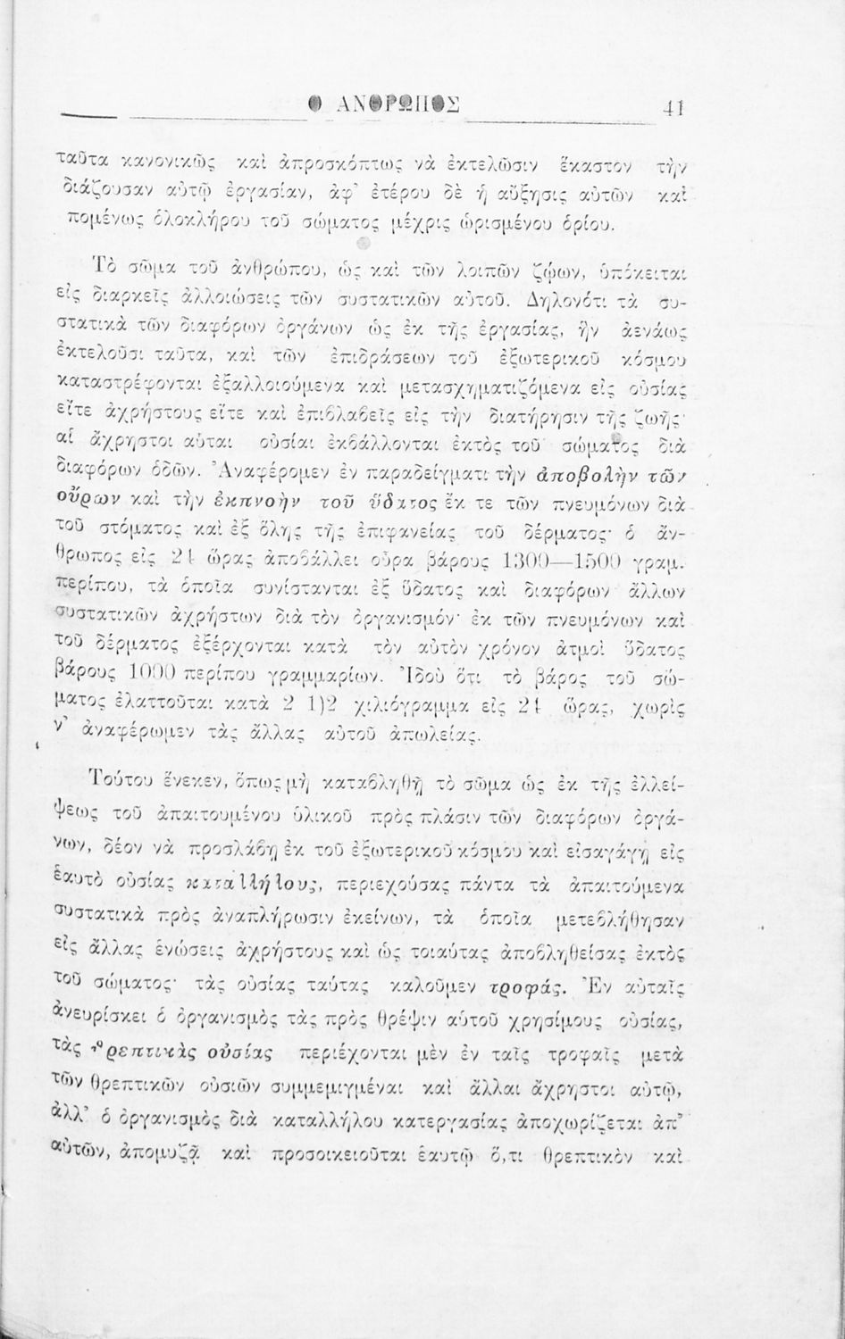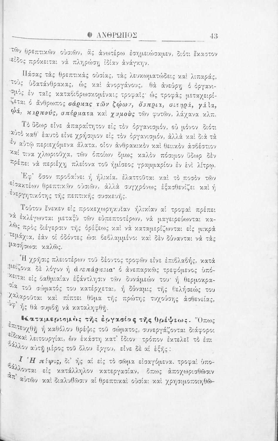 Σχολικό εγχειρίδιο Ζωολογίας για τα Γυμνάσια, τα Παρθεναγωγεία και τα Διδασκαλεία που εστιάζει στην ανθρώπινη φυσιολογία και παρουσιάζει τα διάφορα ζώα ανάλογα με την συνομοταξία στην οποία ανήκουν.