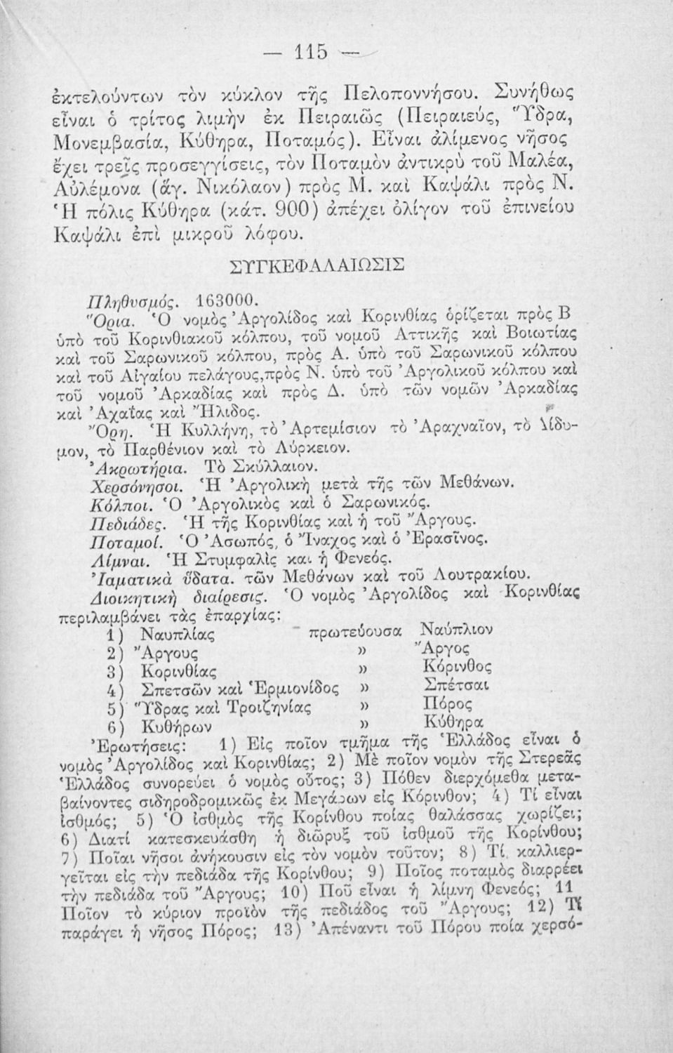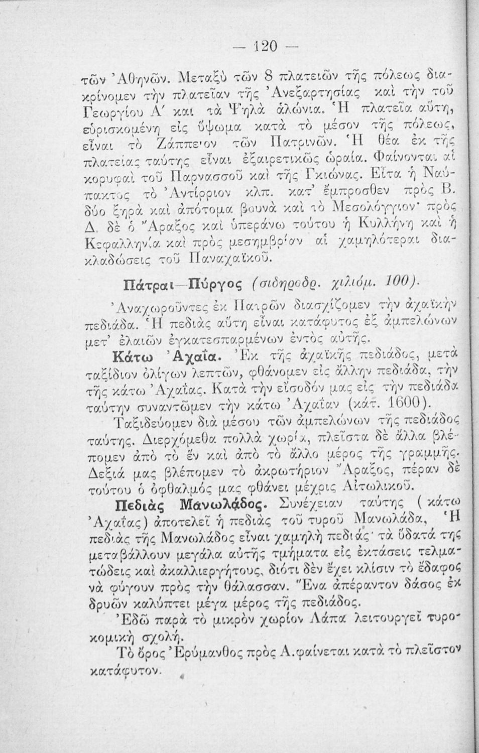 Σχολικό εγχειρίδιο Γεωγραφίας για την Γ' Δημοτικού. Είναι σύμφωνο με το αναλυτικό πρόγραμμα του 1913. Περιλαμβάνει στοιχεία πατριδογνωσίας, γεωγραφικούς ορισμούς και στοιχεία της Αττικής και των επαρχιών της.
