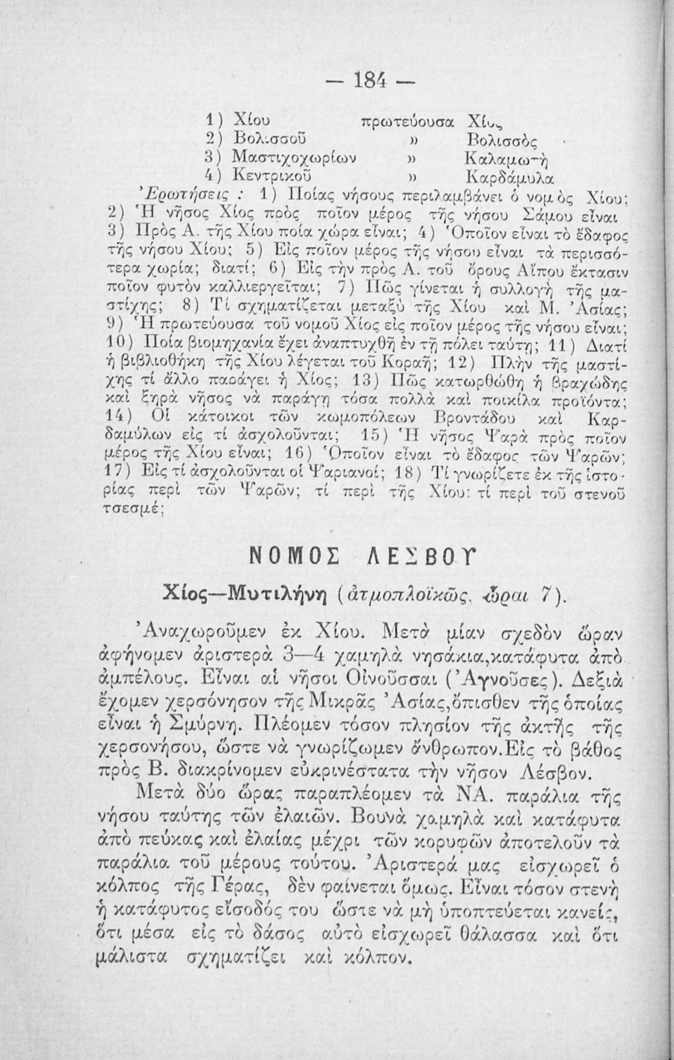 Σχολικό εγχειρίδιο Γεωγραφίας για την Γ' Δημοτικού. Είναι σύμφωνο με το αναλυτικό πρόγραμμα του 1913. Περιλαμβάνει στοιχεία πατριδογνωσίας, γεωγραφικούς ορισμούς και στοιχεία της Αττικής και των επαρχιών της.