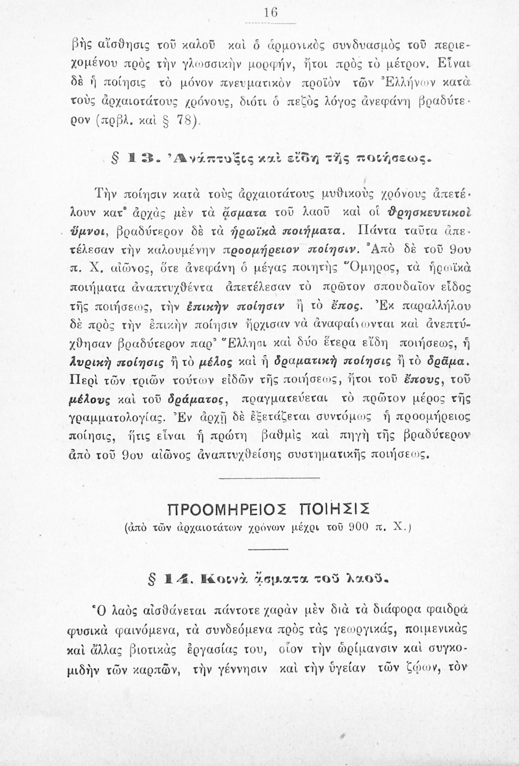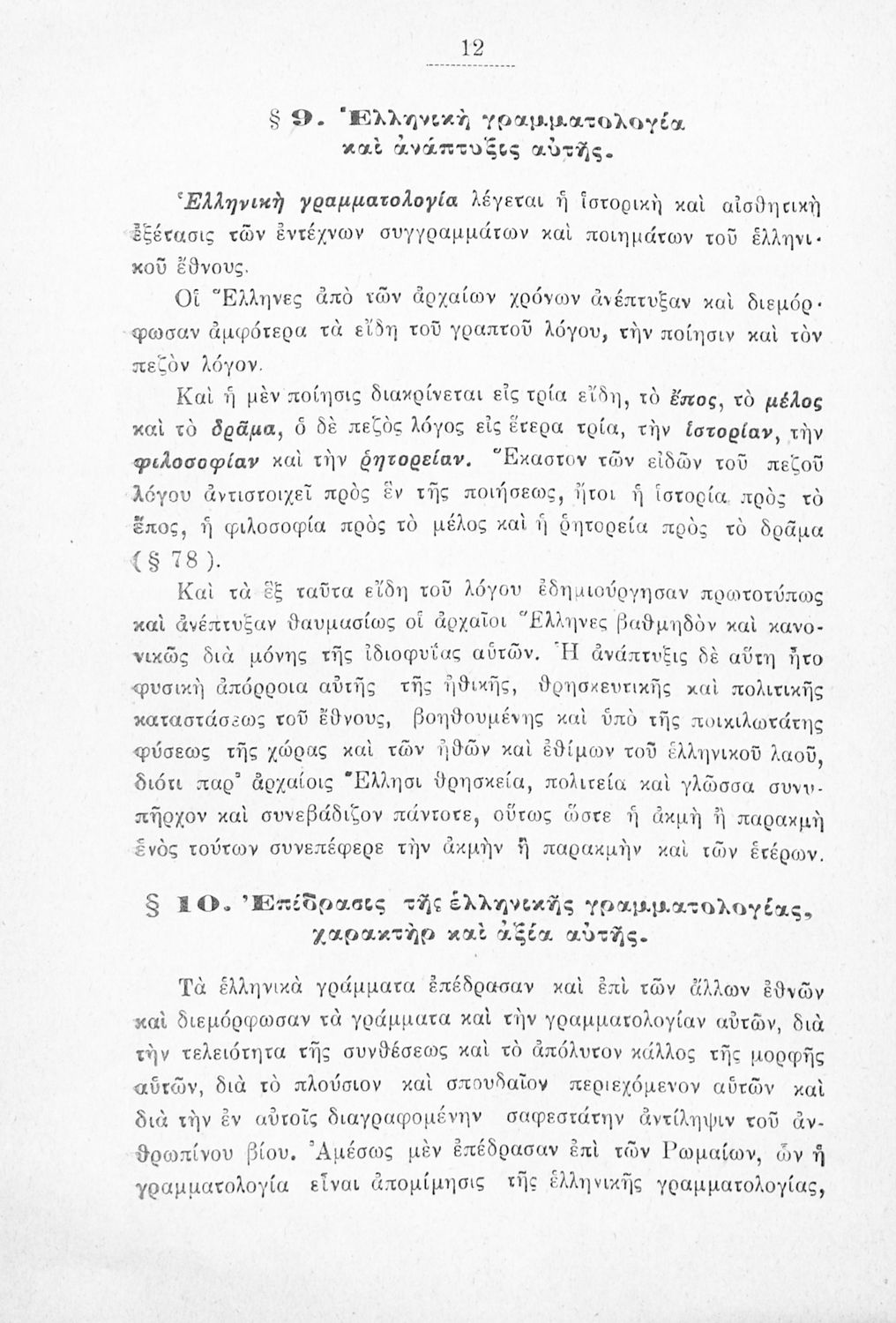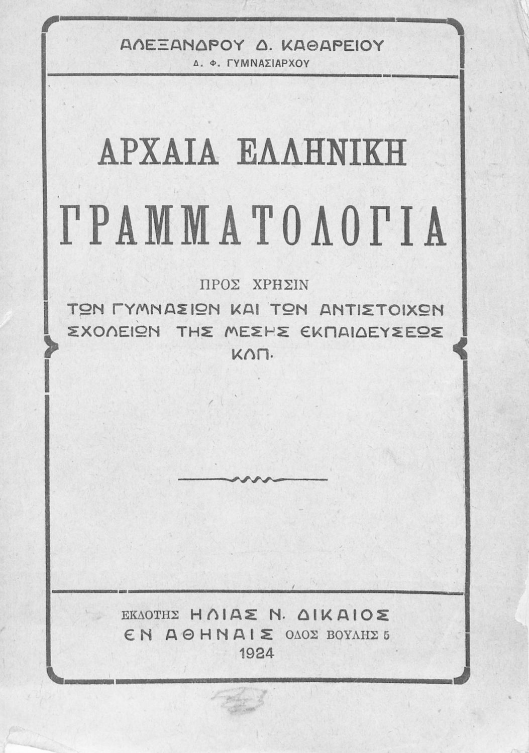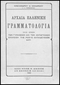 Βαθμίδα εκπαίδευσης: Δευτεροβάθμια Τάξη: Γυμνάσιο Μάθημα: Αρχαία Ελληνικά Γλώσσα: Καθαρεύουσα Παρουσίαση περιεχομένου: Σχολικό εγχειρίδιο για τους μαθητές Γυμνασίου που πραγματεύεται την εξέλιξη της ελληνικής γραμματείας από την αρχαιότητα ως τους βυζαντινούς χρόνους. |
