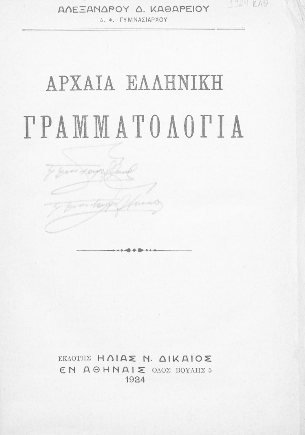 Εντοπισμός πρωτοτύπου: Ελληνικό Λογοτεχνικό και Ιστορικό Αρχείο Κωδικός βιβλιοθήκης: 1924 ΚΑΘ |