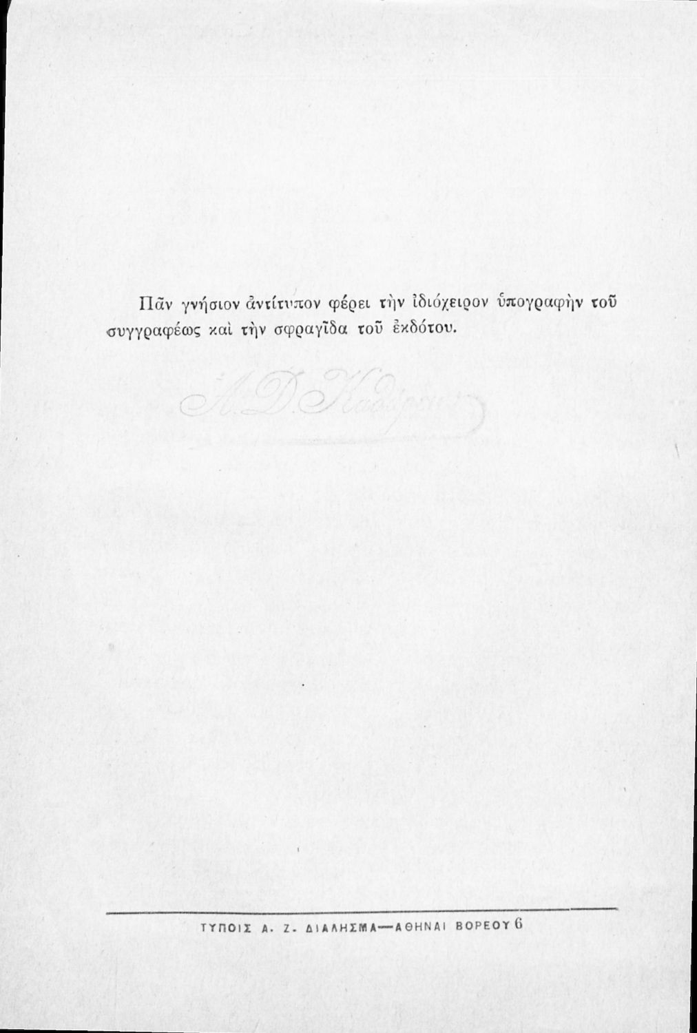 Εκδότης: Ηλίας Ν. Δικαίος Έτος έκδοσης: 1924 Τόπος έκδοσης: Αθήνα |
