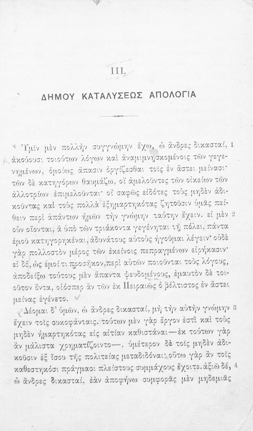 Λυσίου Λόγοι κατ' εκλογήν εκδοθέντες δια την Α΄ τάξιν των Γυμνασίων