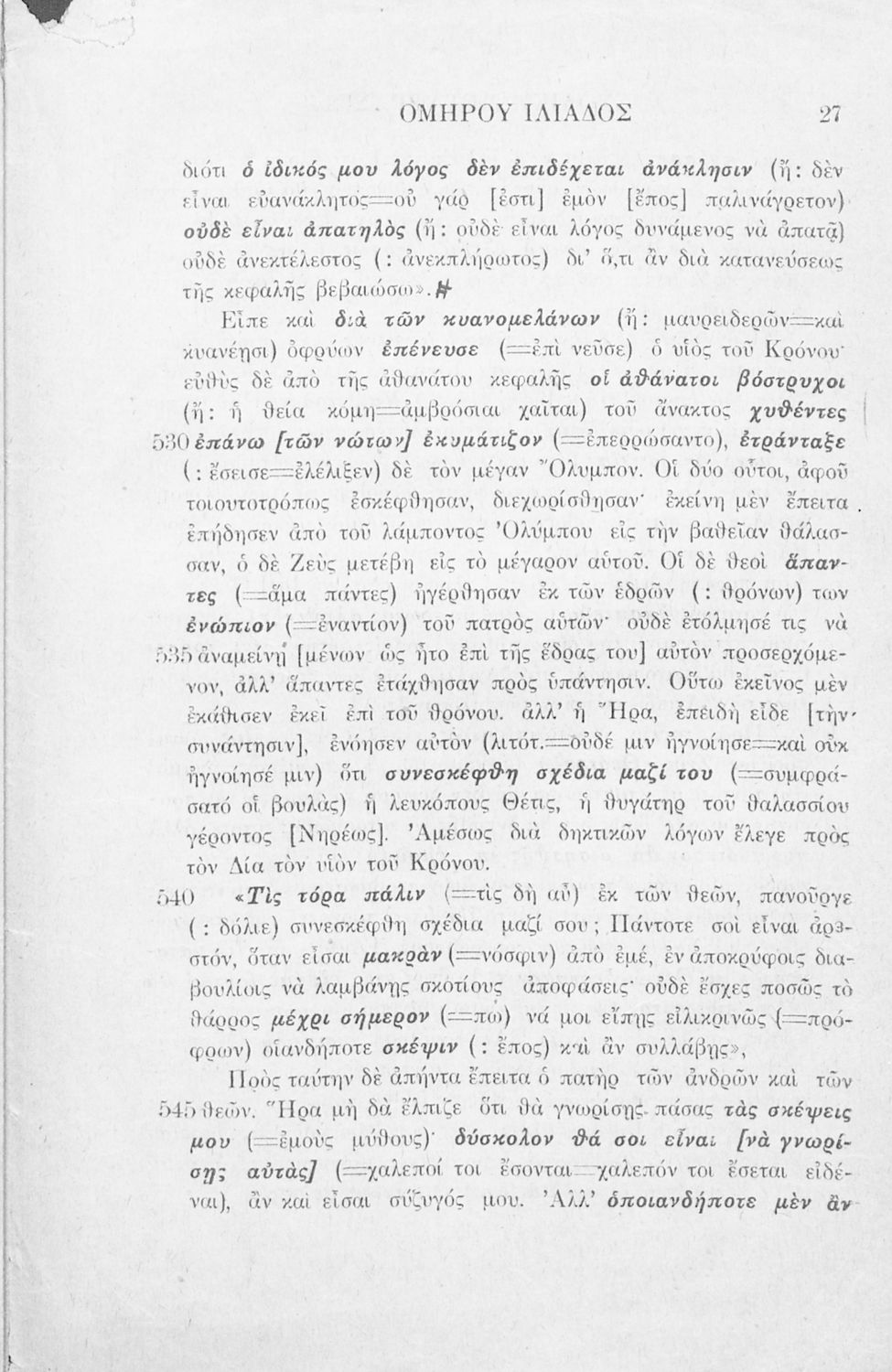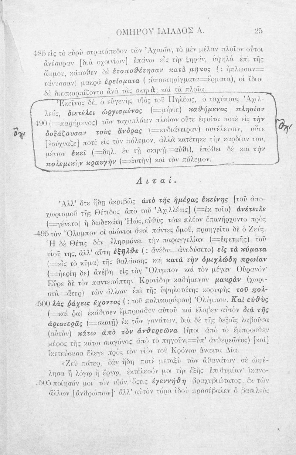 Μαθητικό βοήθημα Αρχαίων Ελληνικών που περιλαμβάνει μετάφραση της ραψωδία Α΄ της Ιλιάδας λεξιλόγιο και αισθητικές σημειώσεις.