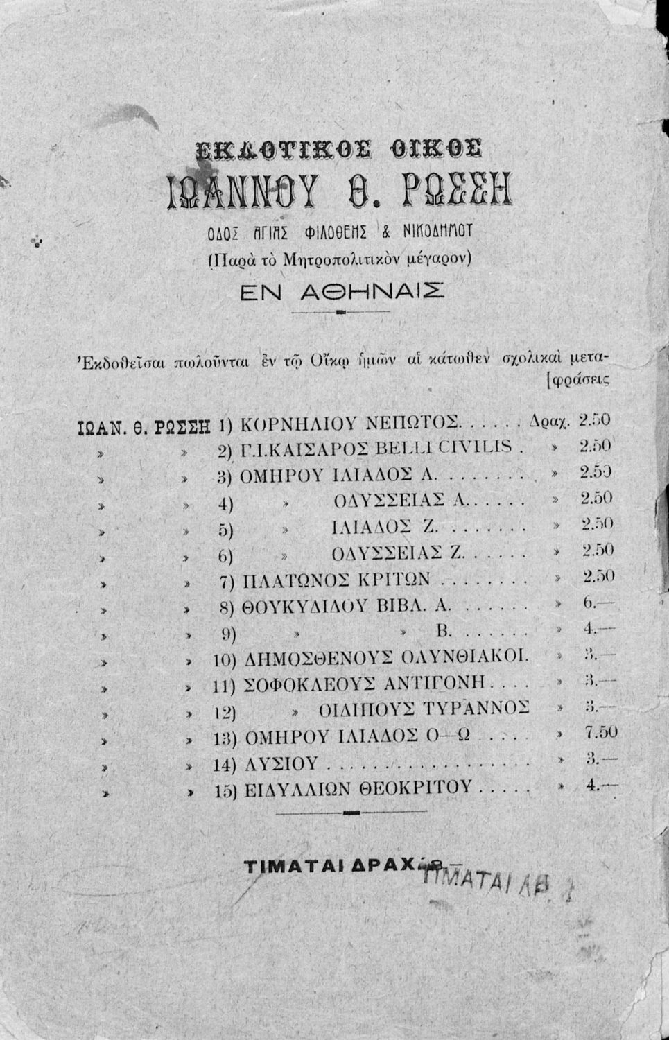 Εκδότης: Ιωάννης Θ. Ρώσσης Έτος έκδοσης: 1924 Τόπος έκδοσης: Αθήνα |