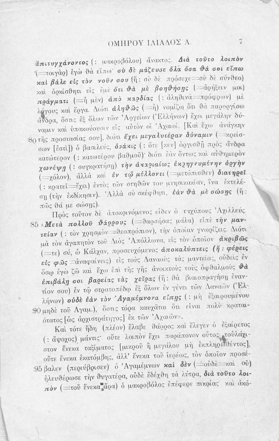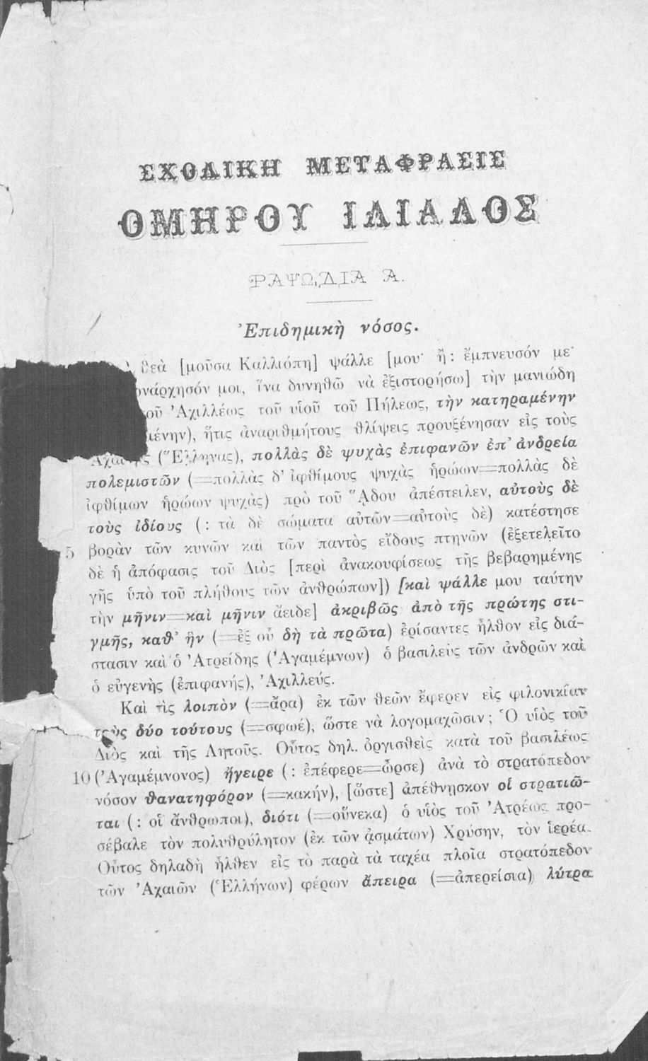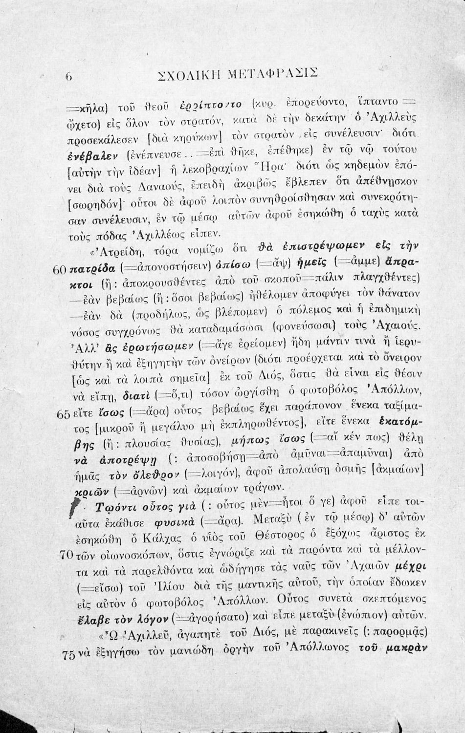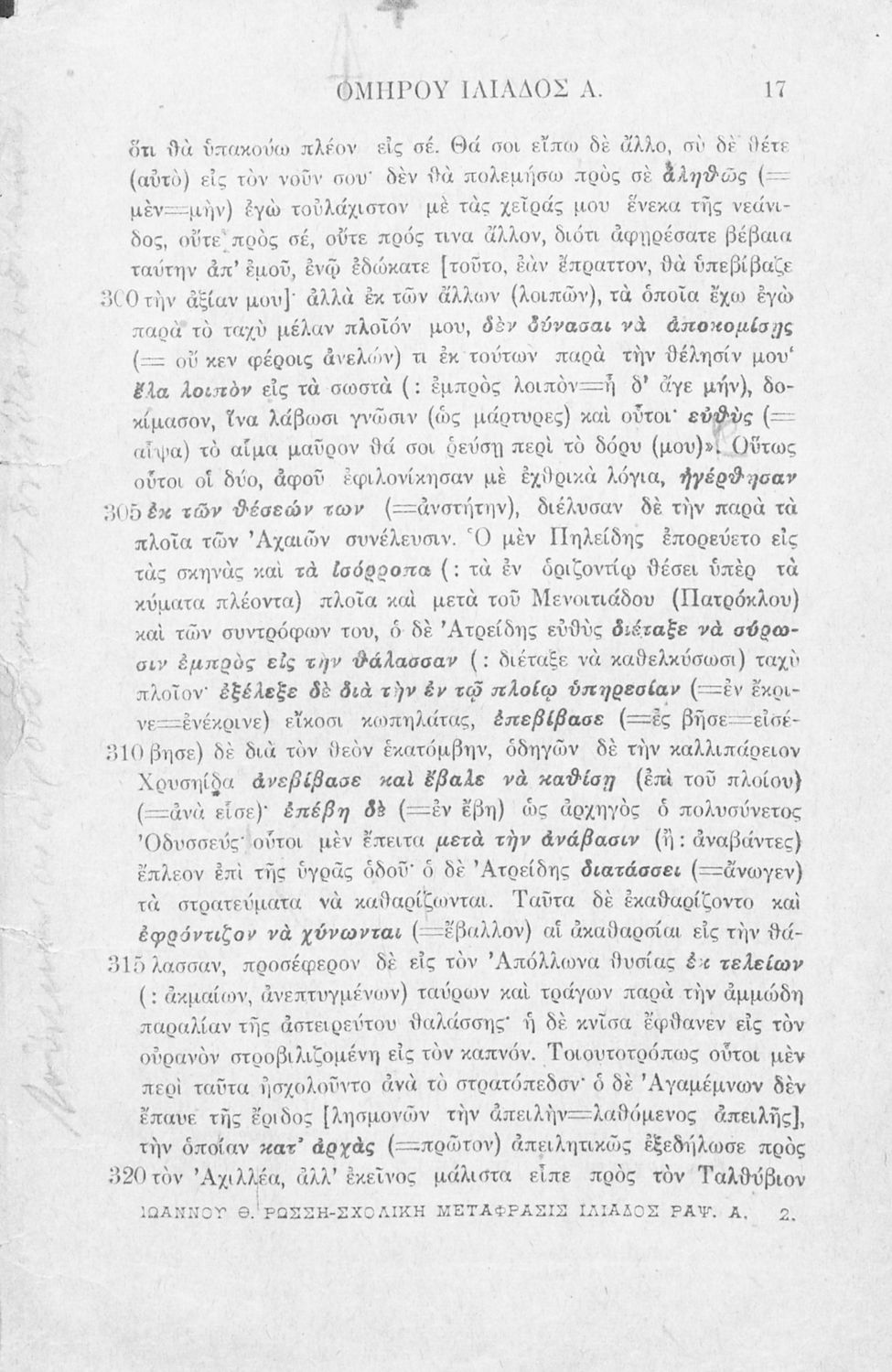 Μαθητικό βοήθημα Αρχαίων Ελληνικών που περιλαμβάνει μετάφραση της ραψωδία Α΄ της Ιλιάδας λεξιλόγιο και αισθητικές σημειώσεις.
