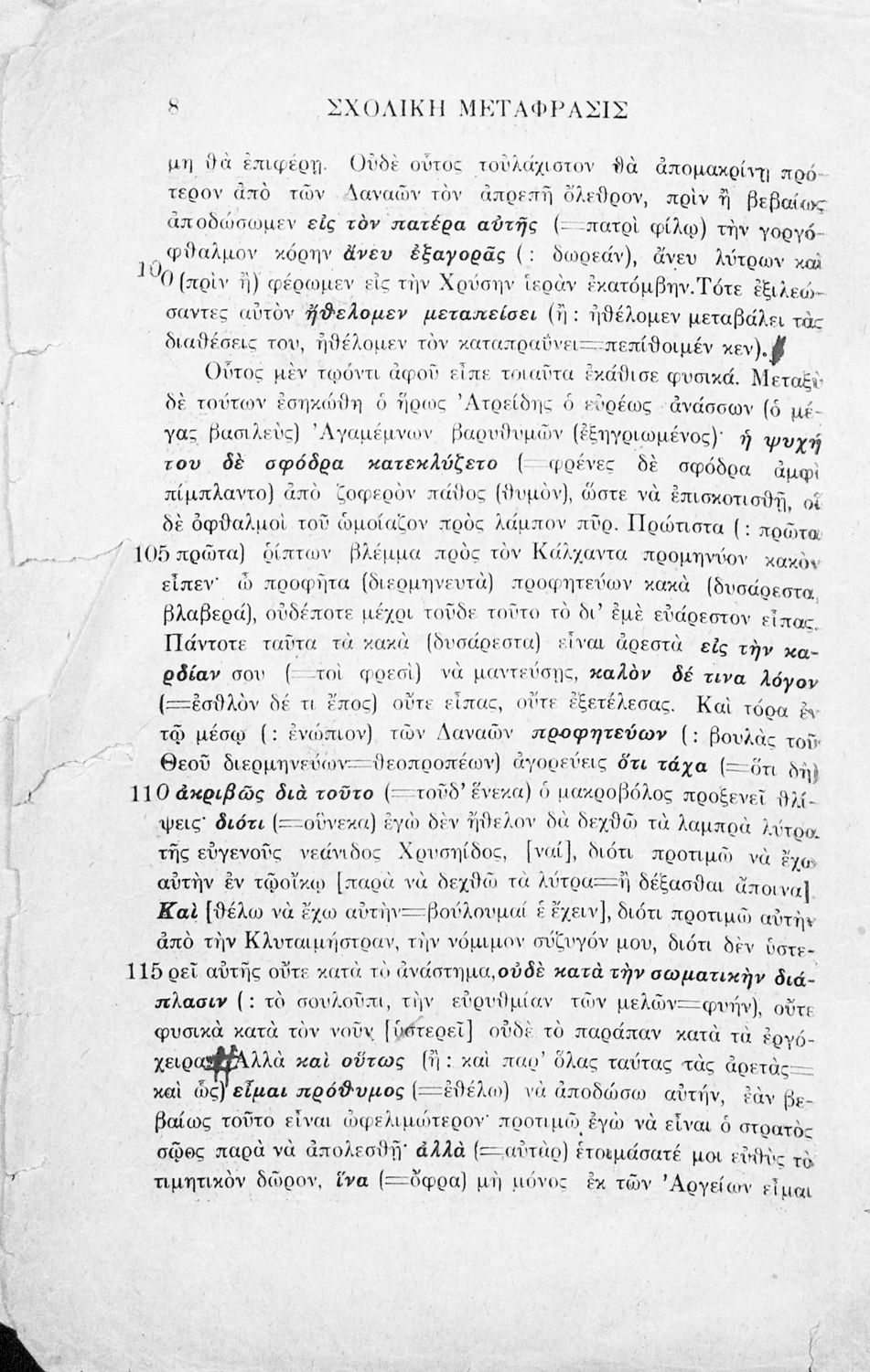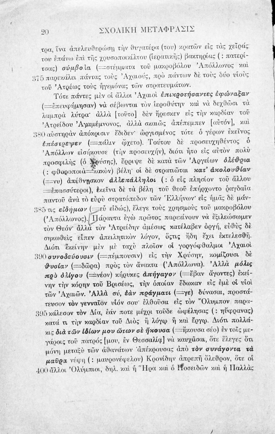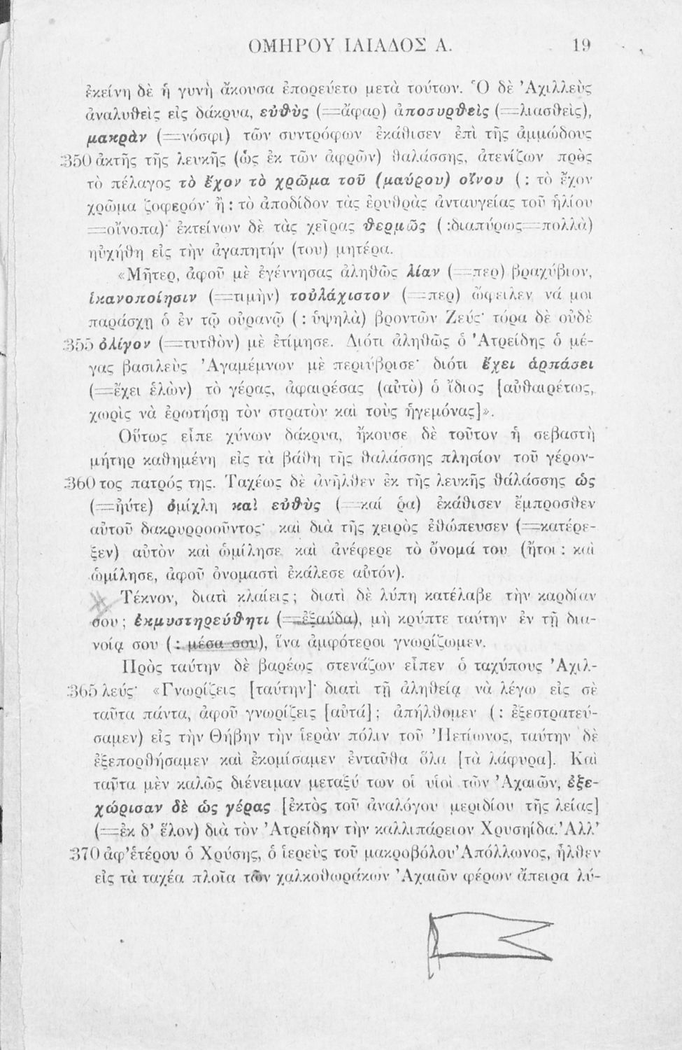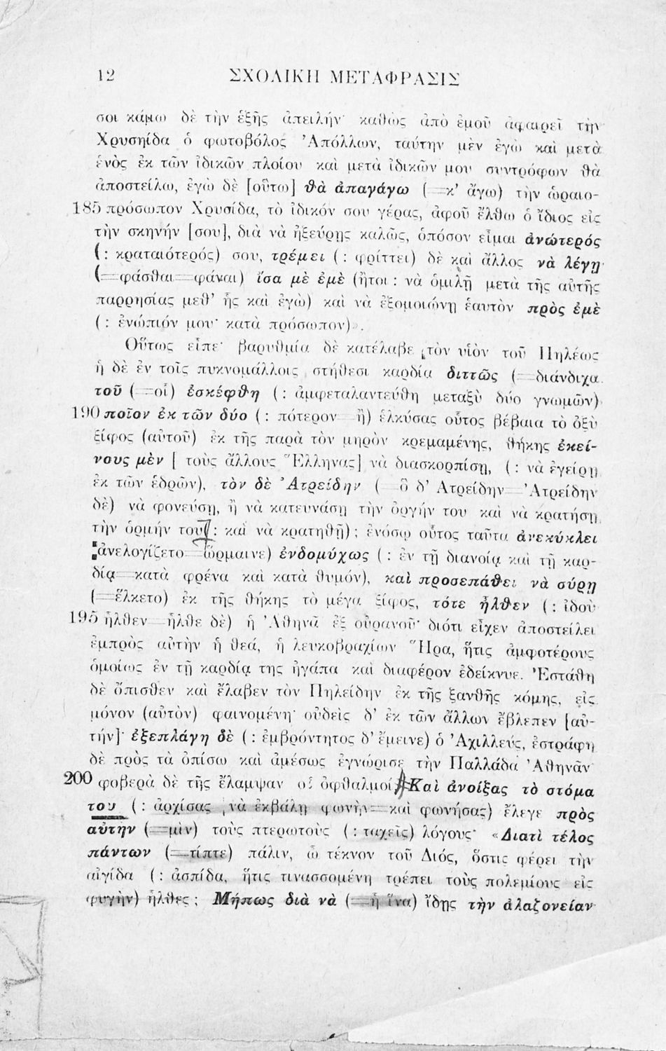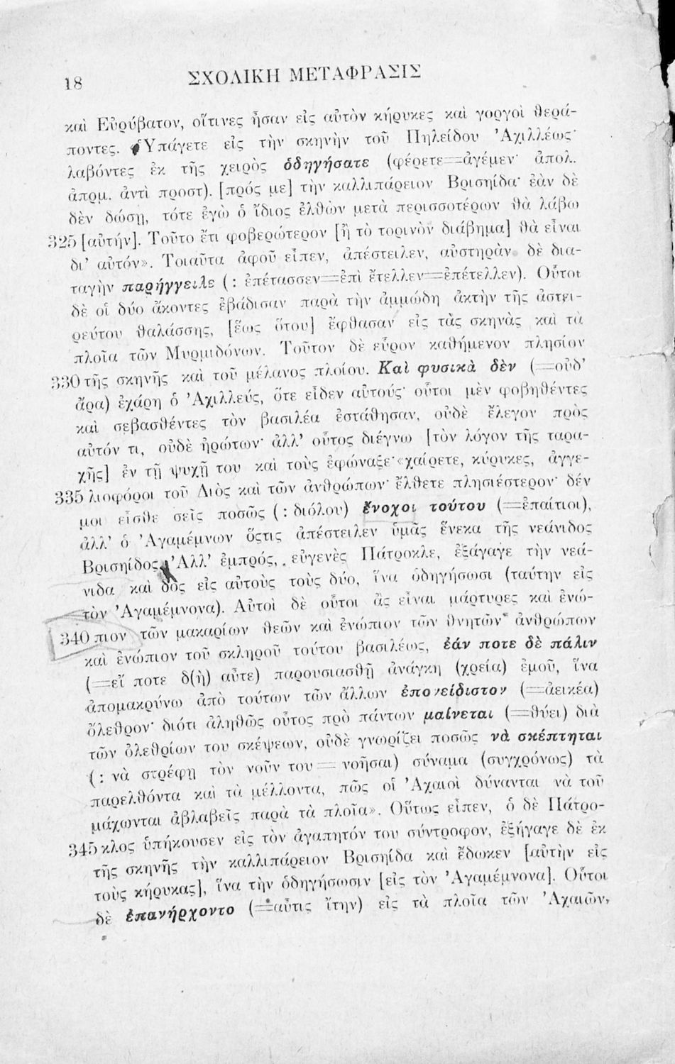 Μαθητικό βοήθημα Αρχαίων Ελληνικών που περιλαμβάνει μετάφραση της ραψωδία Α΄ της Ιλιάδας λεξιλόγιο και αισθητικές σημειώσεις.