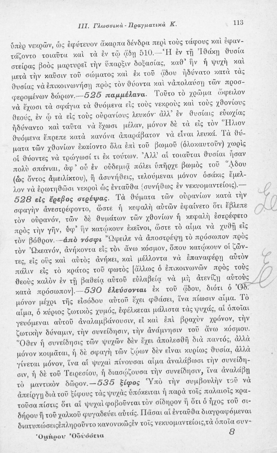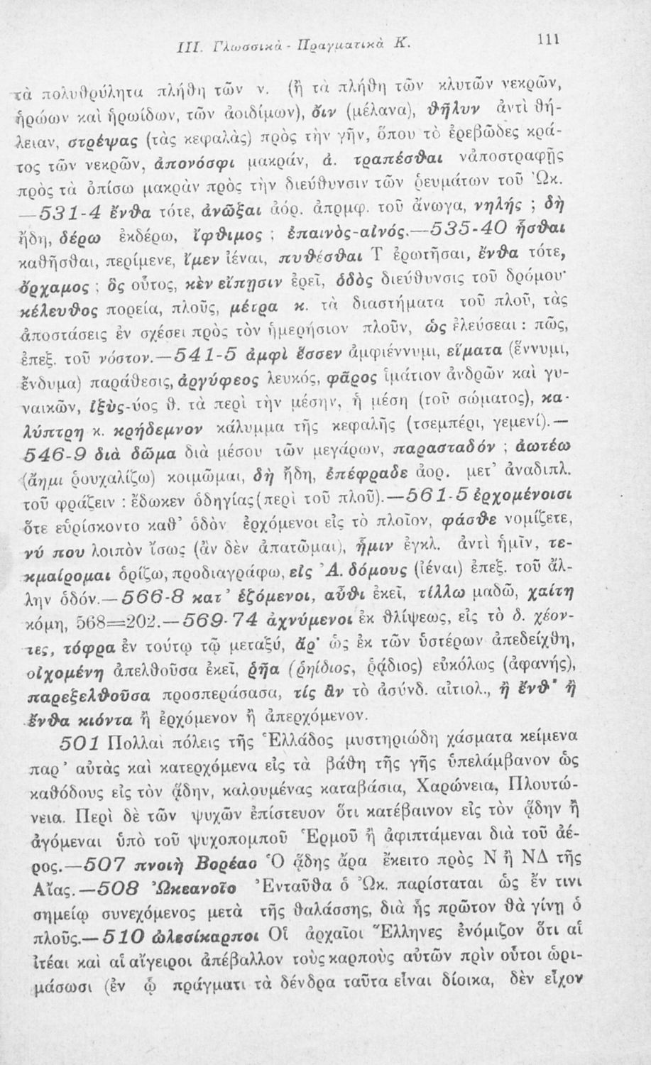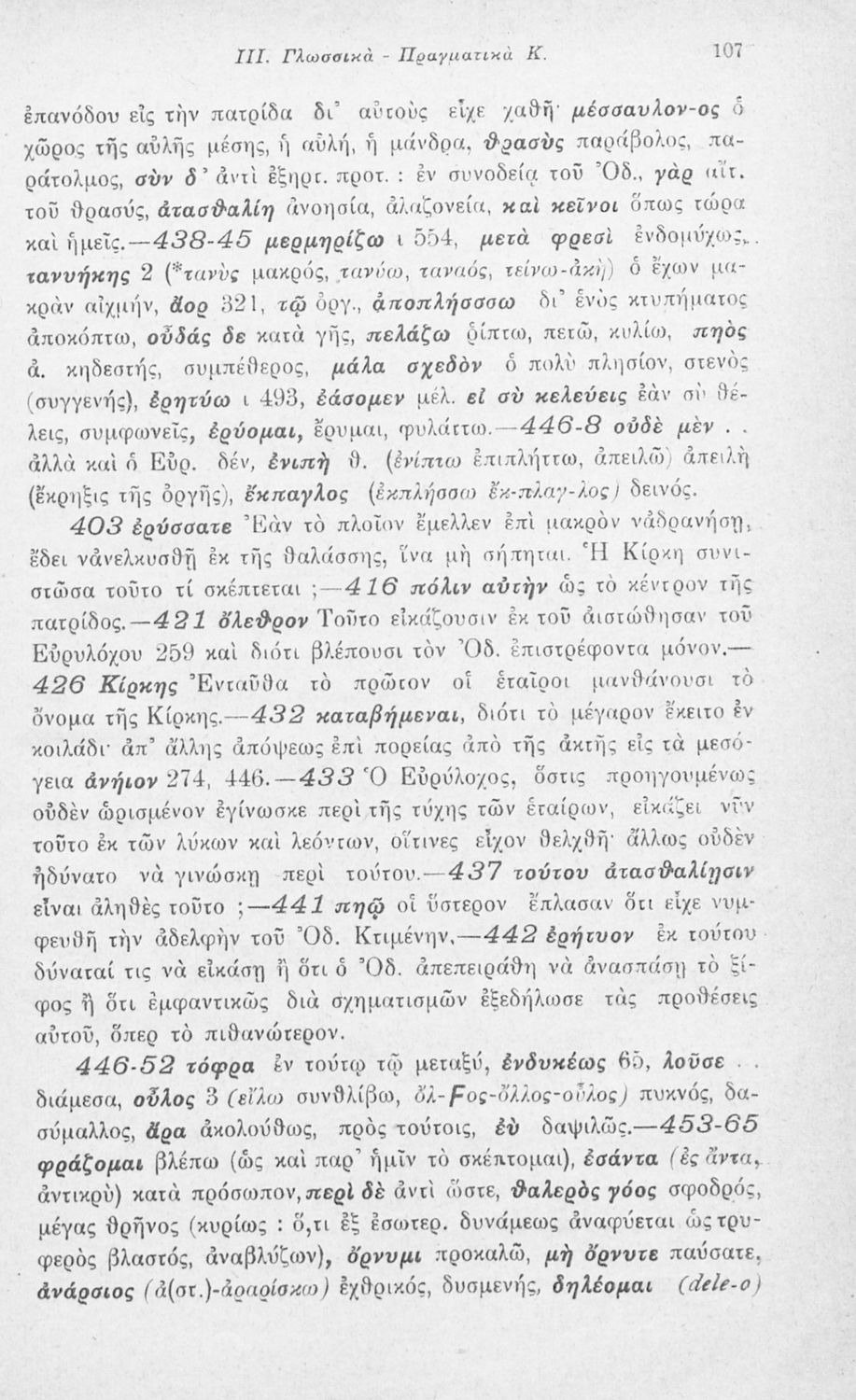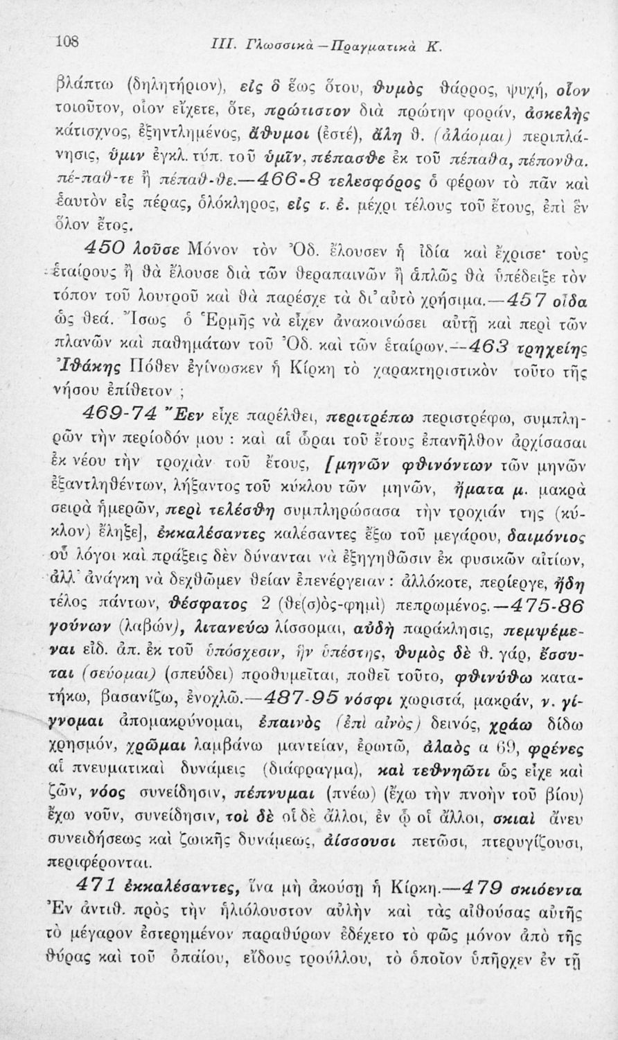 Μαθητικό βοήθημα Αρχαίων Ελληνικών που περιλαμβάνει αποσπάσματα των ραψωδιών Α, Ι, και Κ της Οδύσσειας και γλωσσικές και πραγματολογικές σημειώσεις.