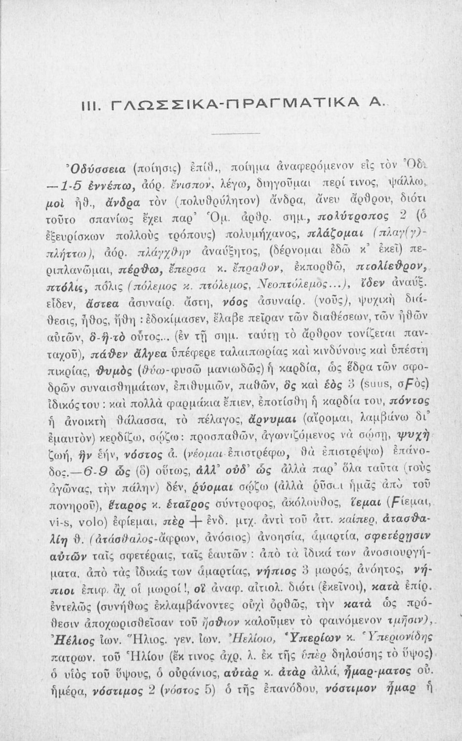 520 ## _aΜαθητικό βοήθημα Αρχαίων Ελληνικών που περιλαμβάνει αποσπάσματα των ραψωδιών Α, Ι, και Κ της Οδύσσειας και γλωσσικές και πραγματολογικές σημειώσεις.