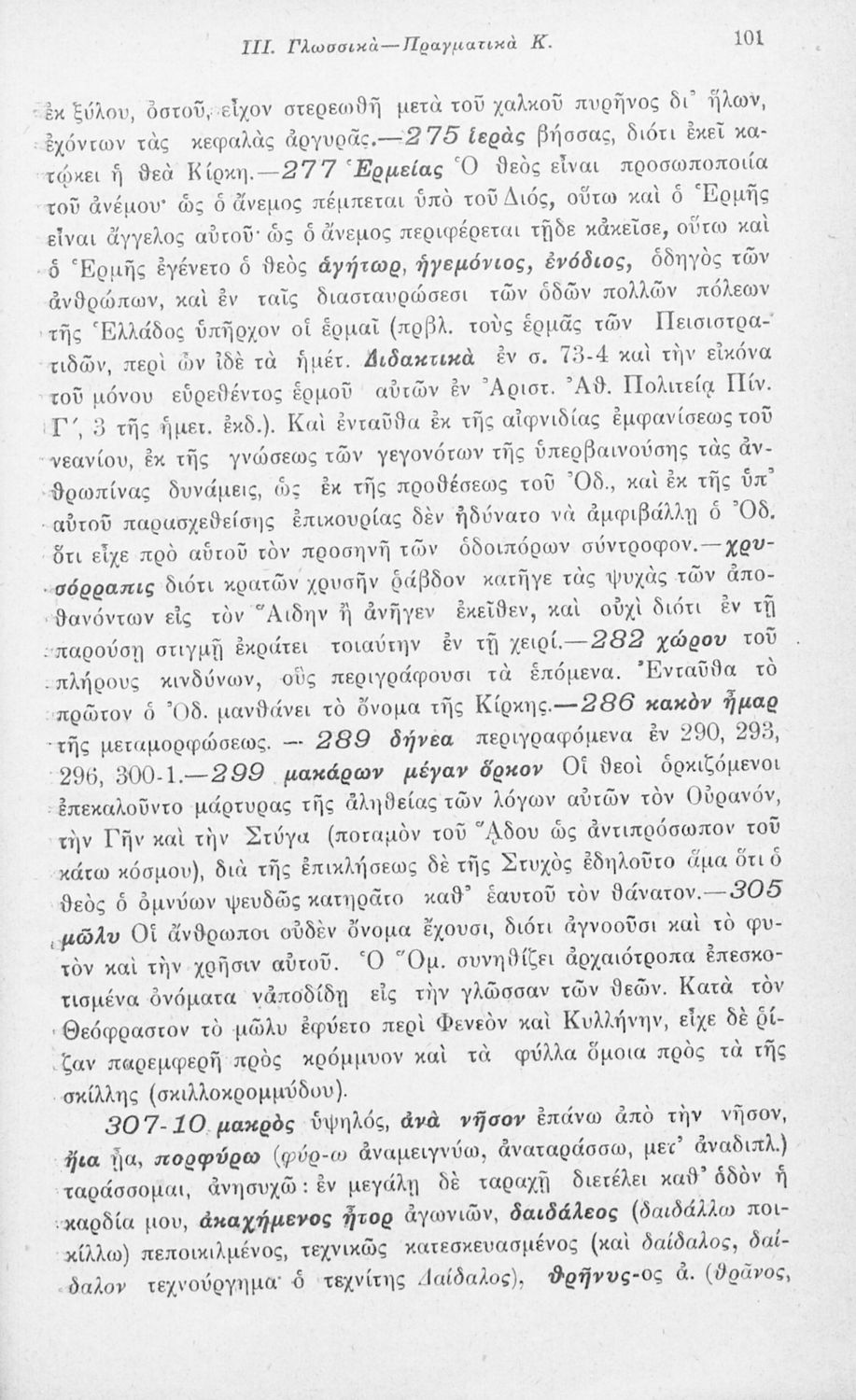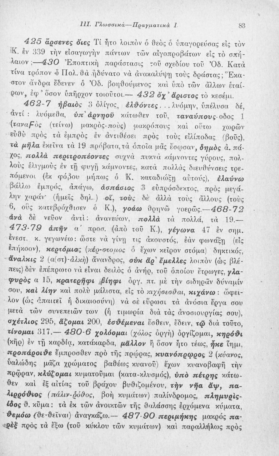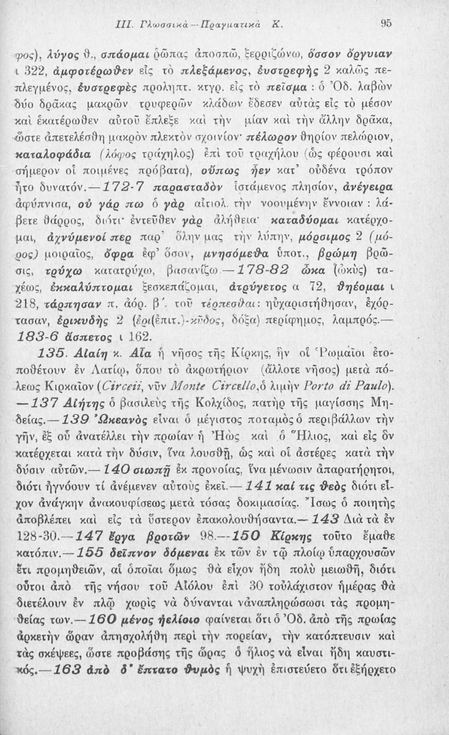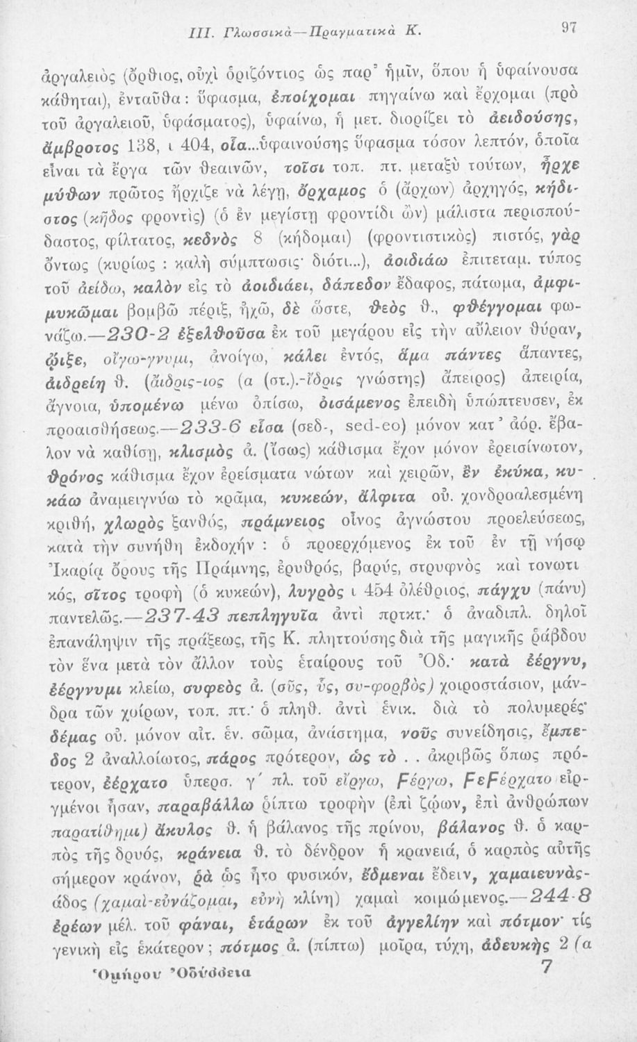 Μαθητικό βοήθημα Αρχαίων Ελληνικών που περιλαμβάνει αποσπάσματα των ραψωδιών Α, Ι, και Κ της Οδύσσειας και γλωσσικές και πραγματολογικές σημειώσεις.